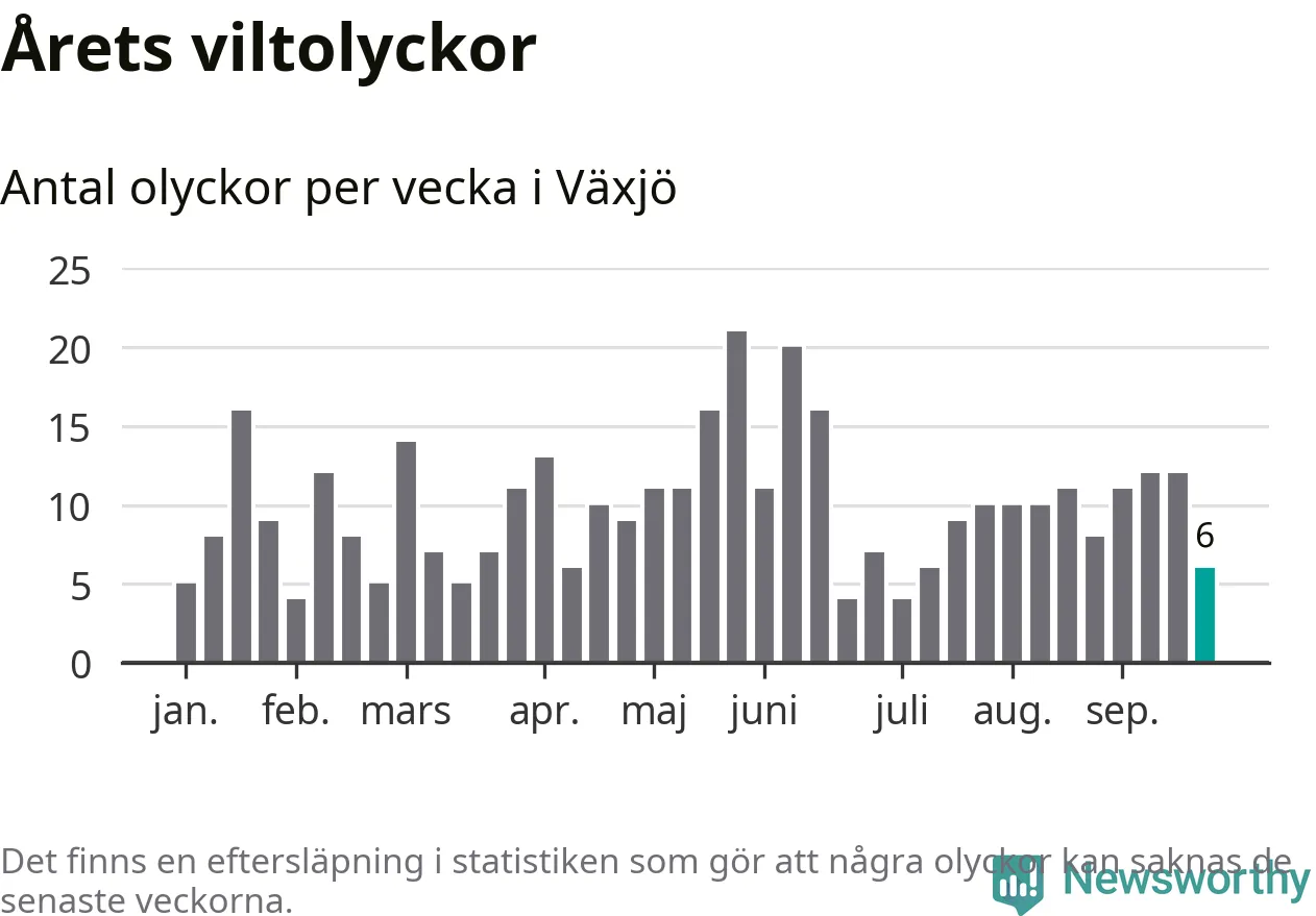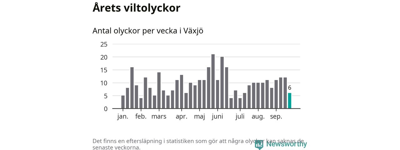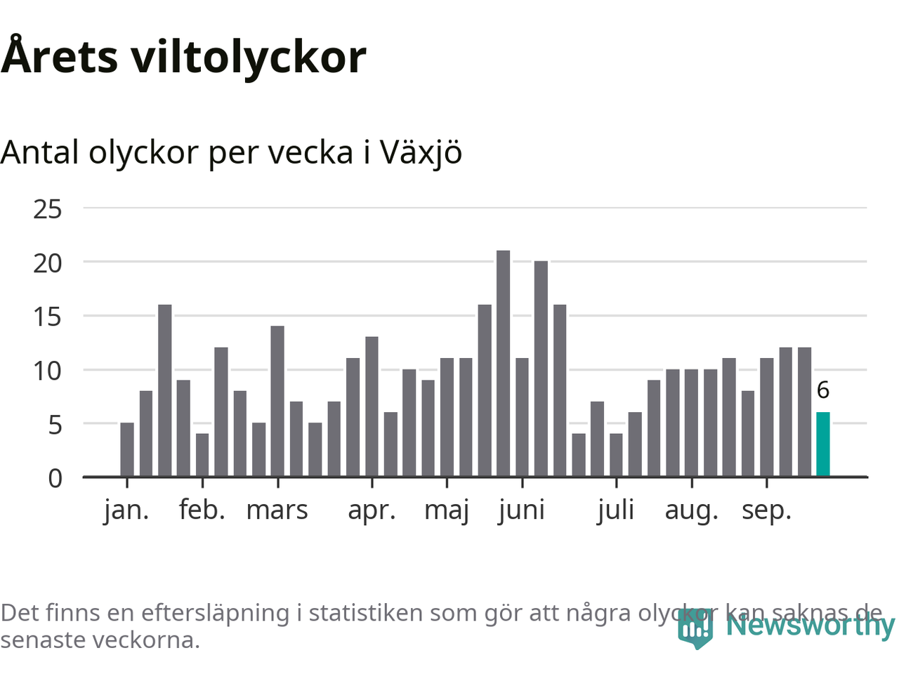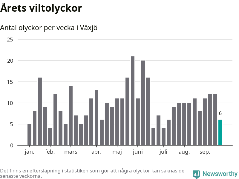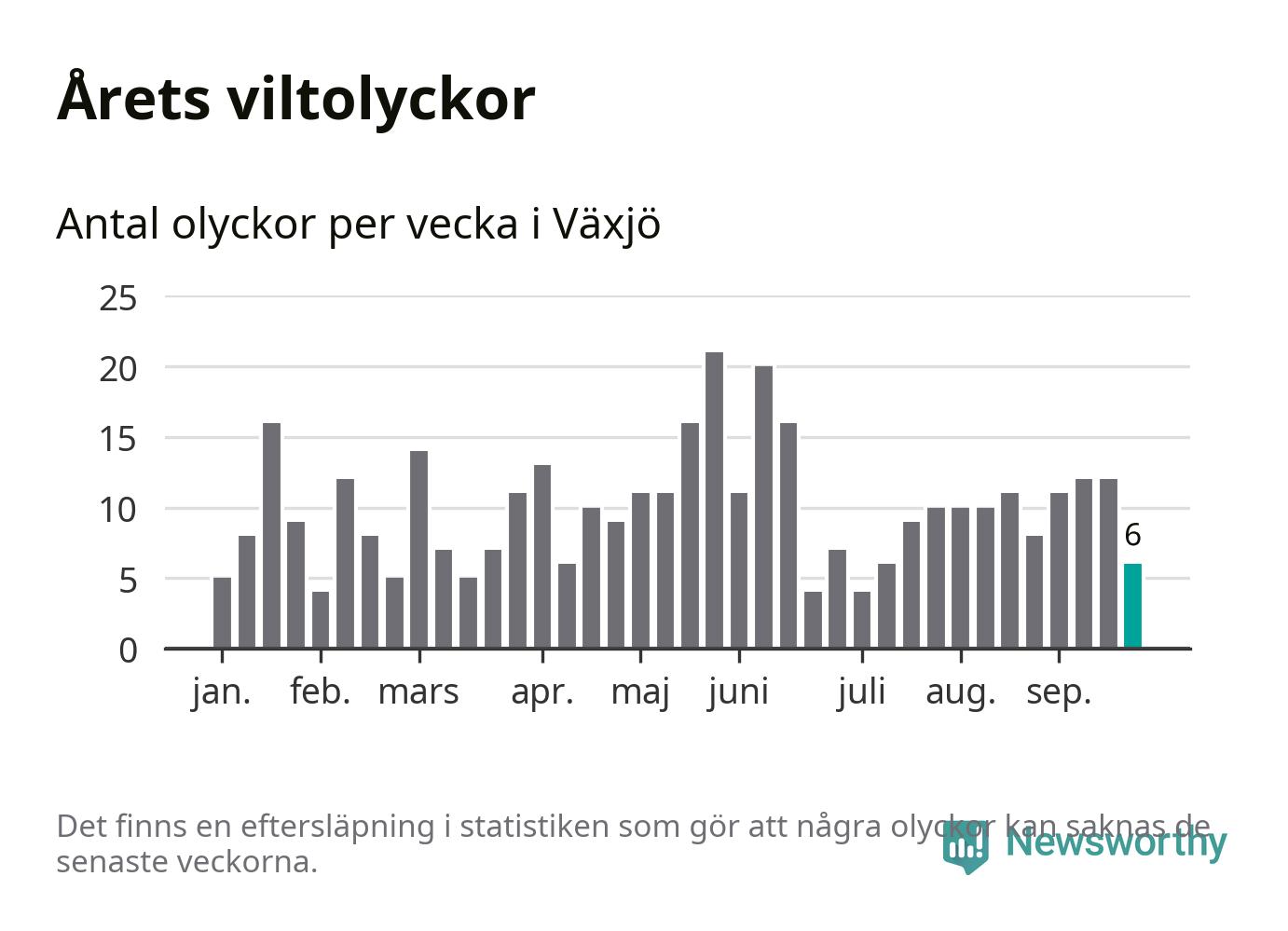 Hittills har sex viltolyckor rapporterats in i Växjö kommun från vecka 39. Se listan här.