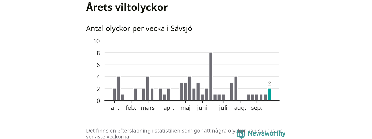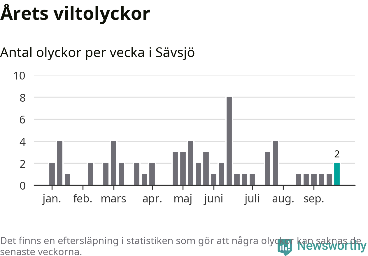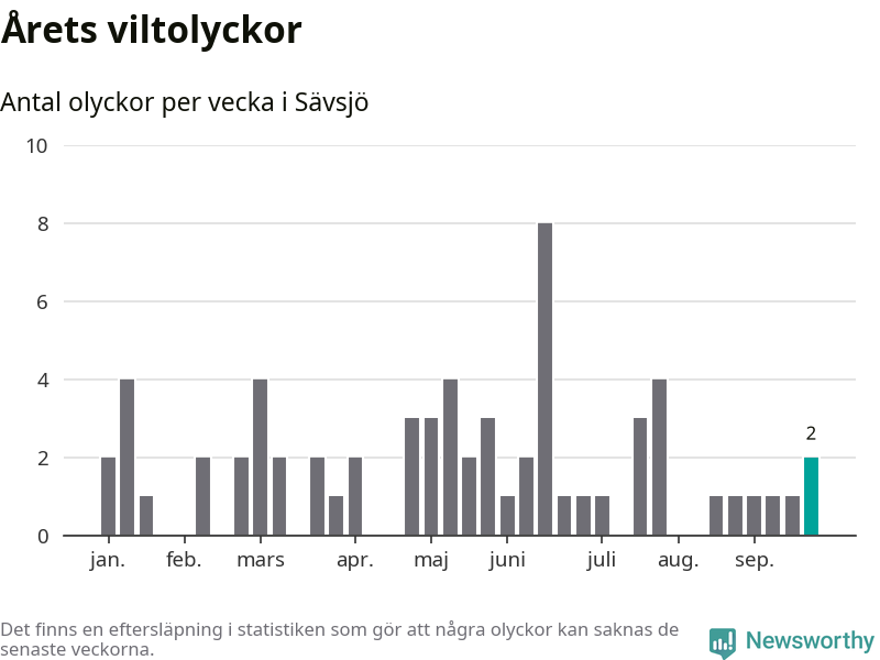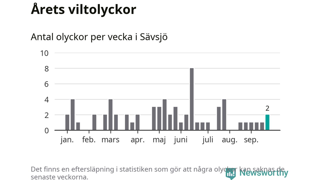 Hittills har två viltolyckor rapporterats in i Sävsjö kommun från vecka 39. Se listan här.
