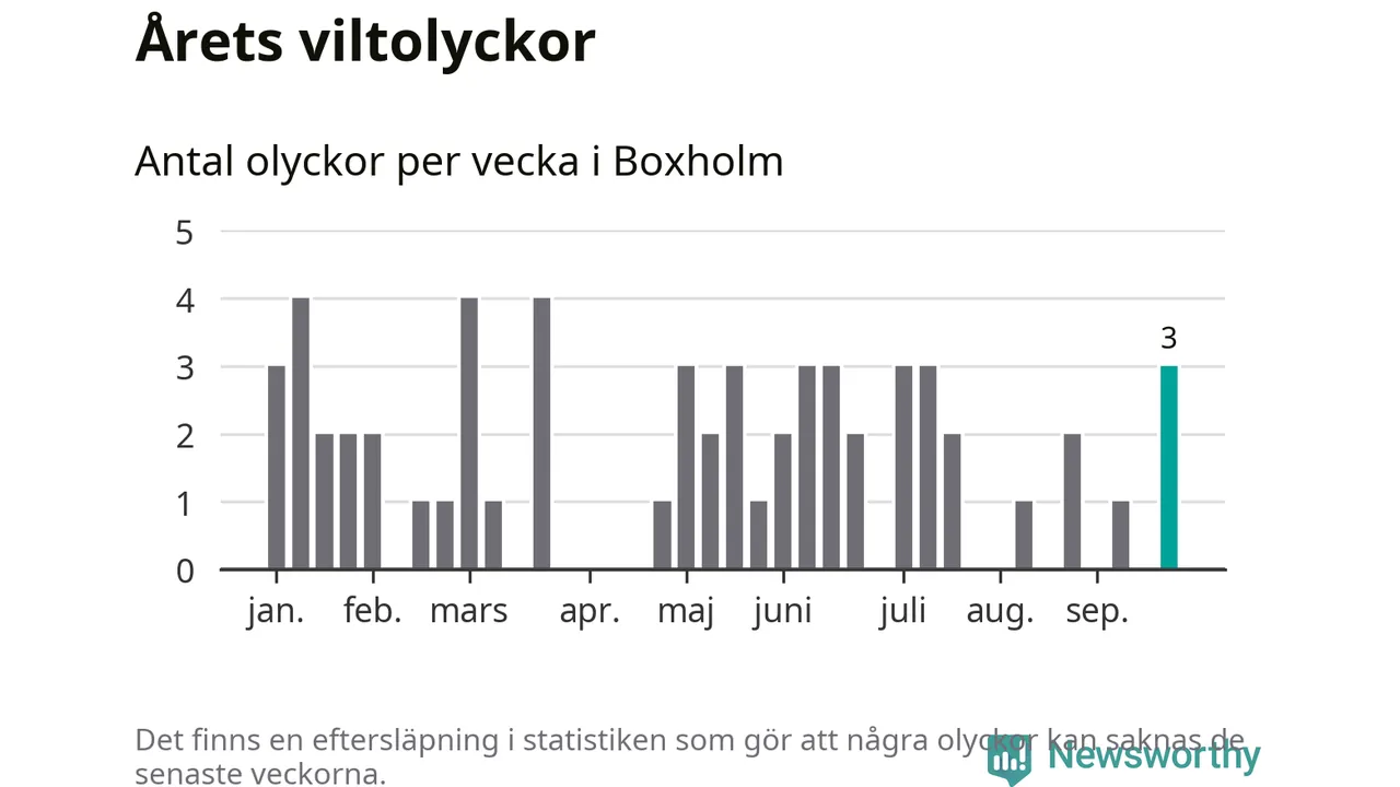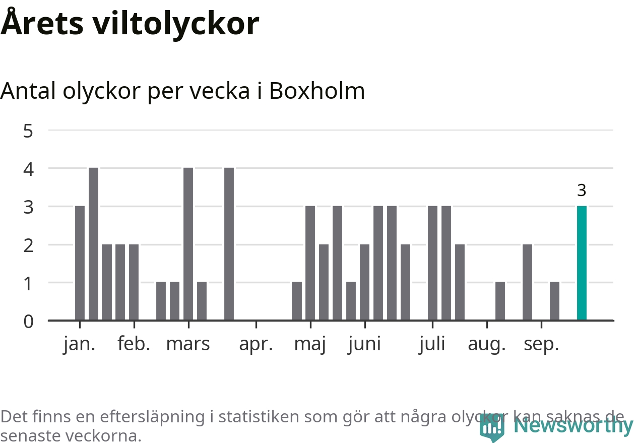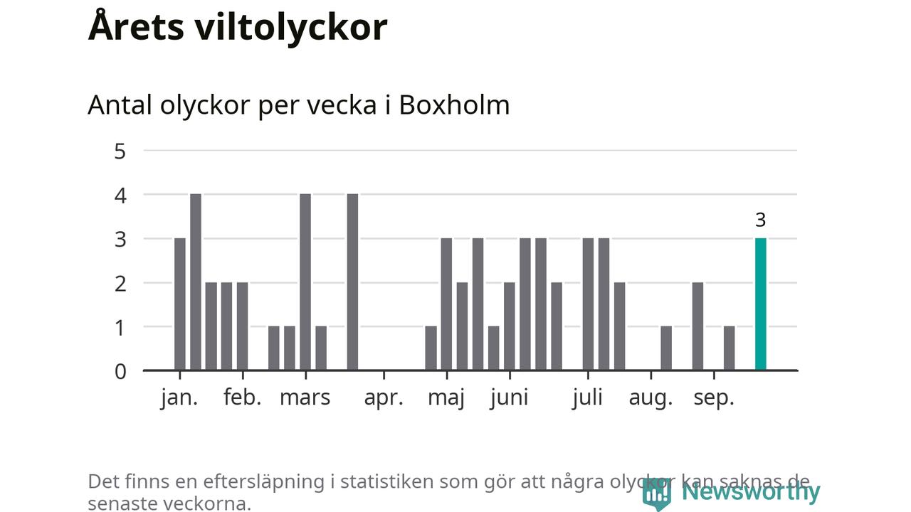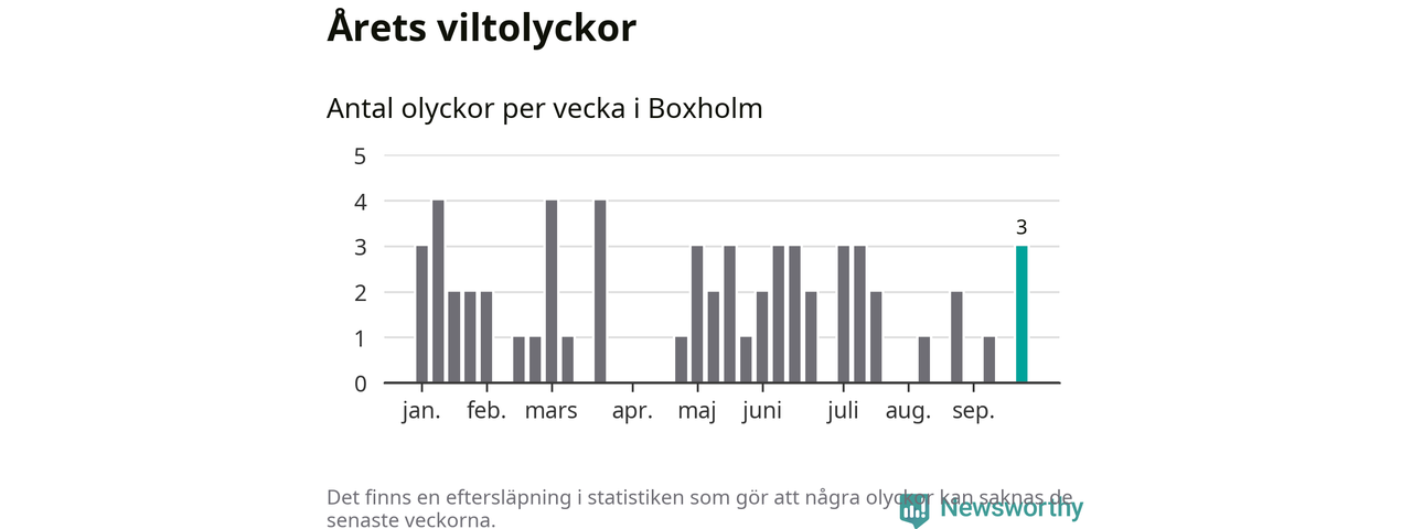 Hittills har tre viltolyckor rapporterats in i Boxholms kommun från vecka 39. Se listan här.
