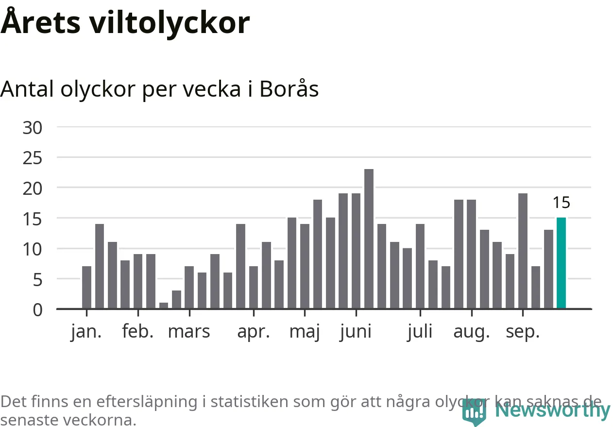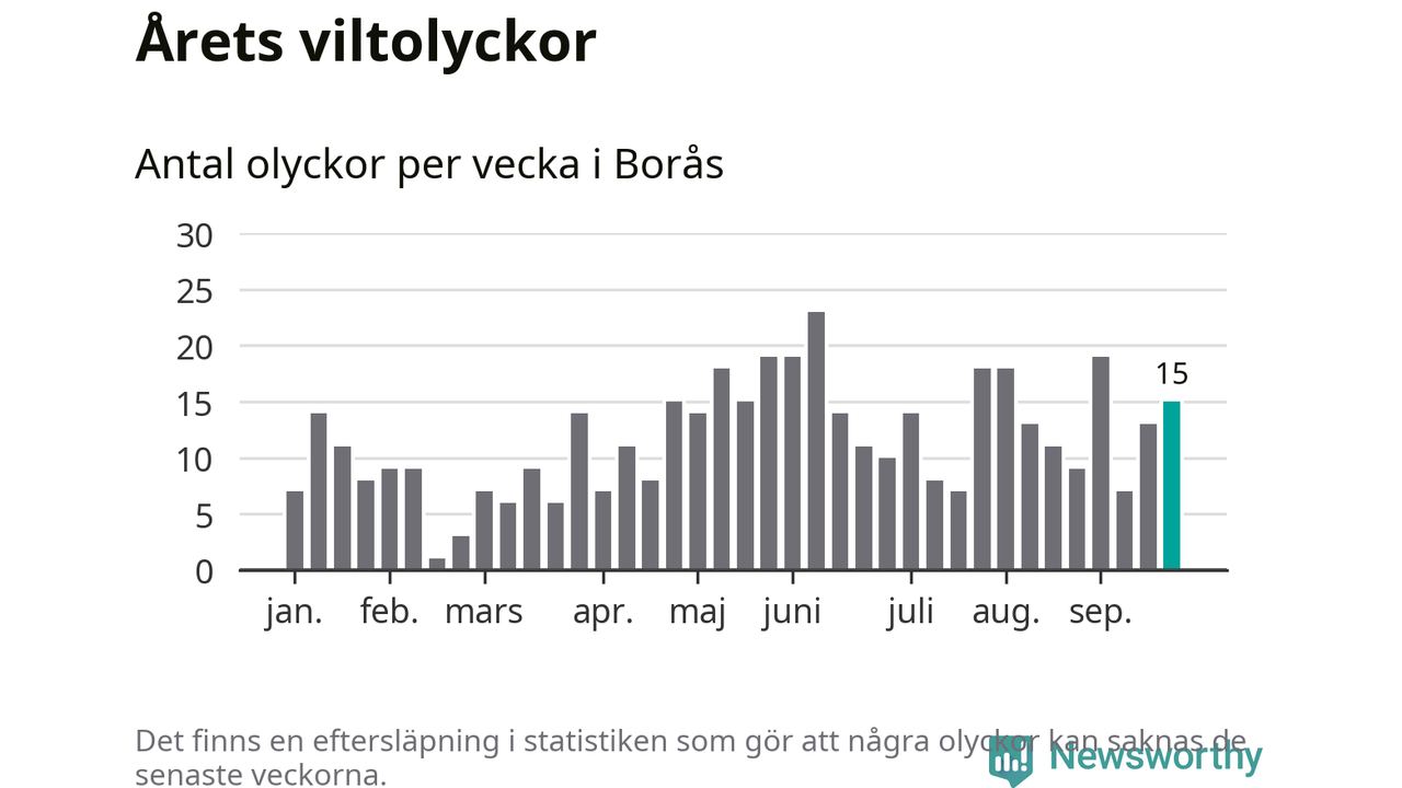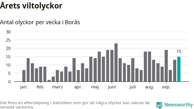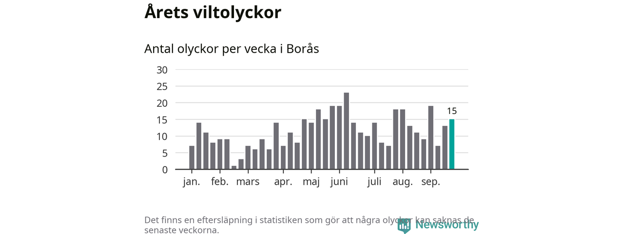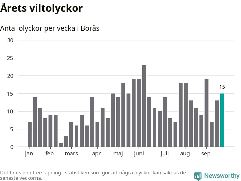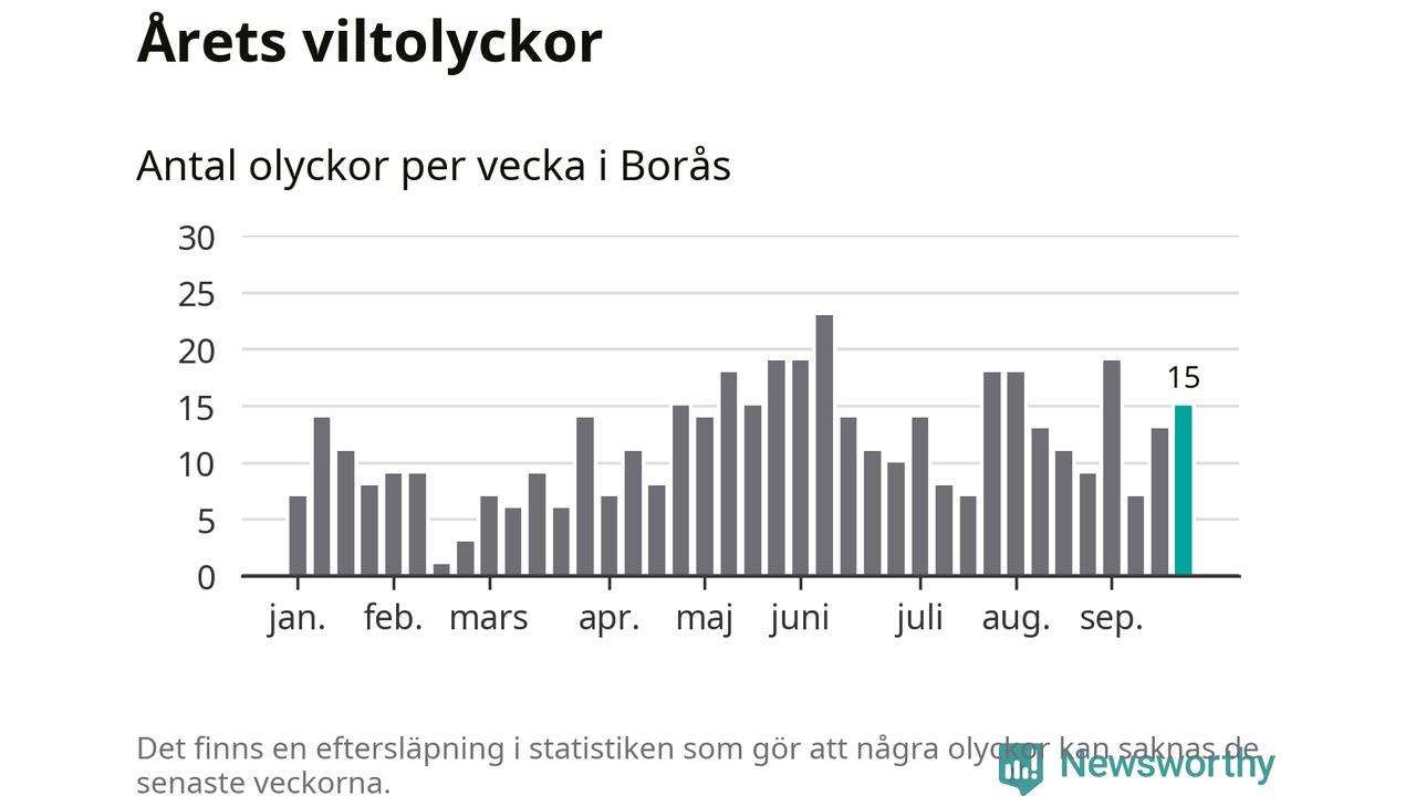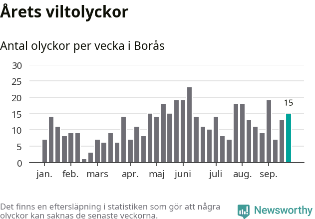 Hittills har 15 viltolyckor rapporterats in i Borås kommun från vecka 39. Se listan här.