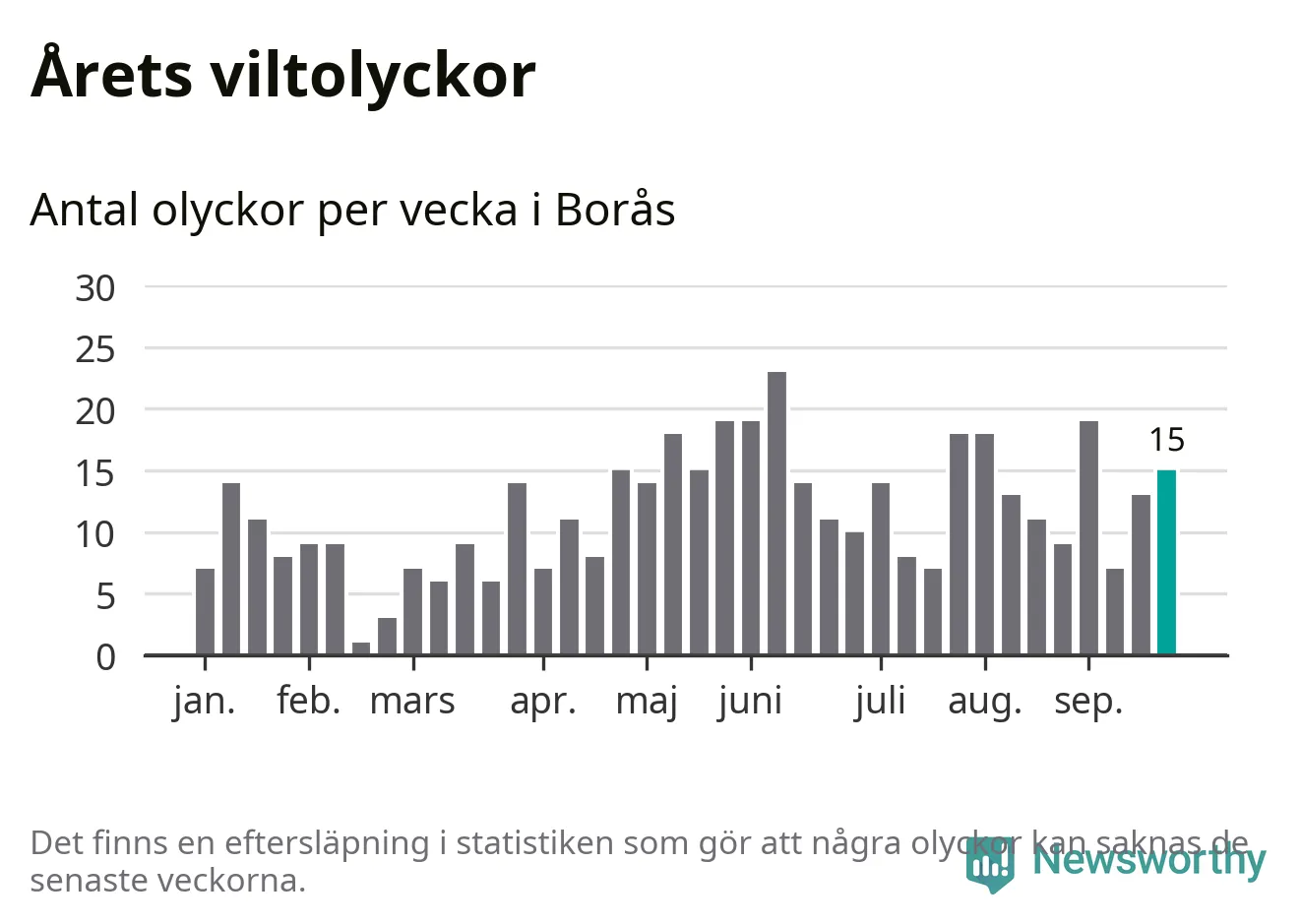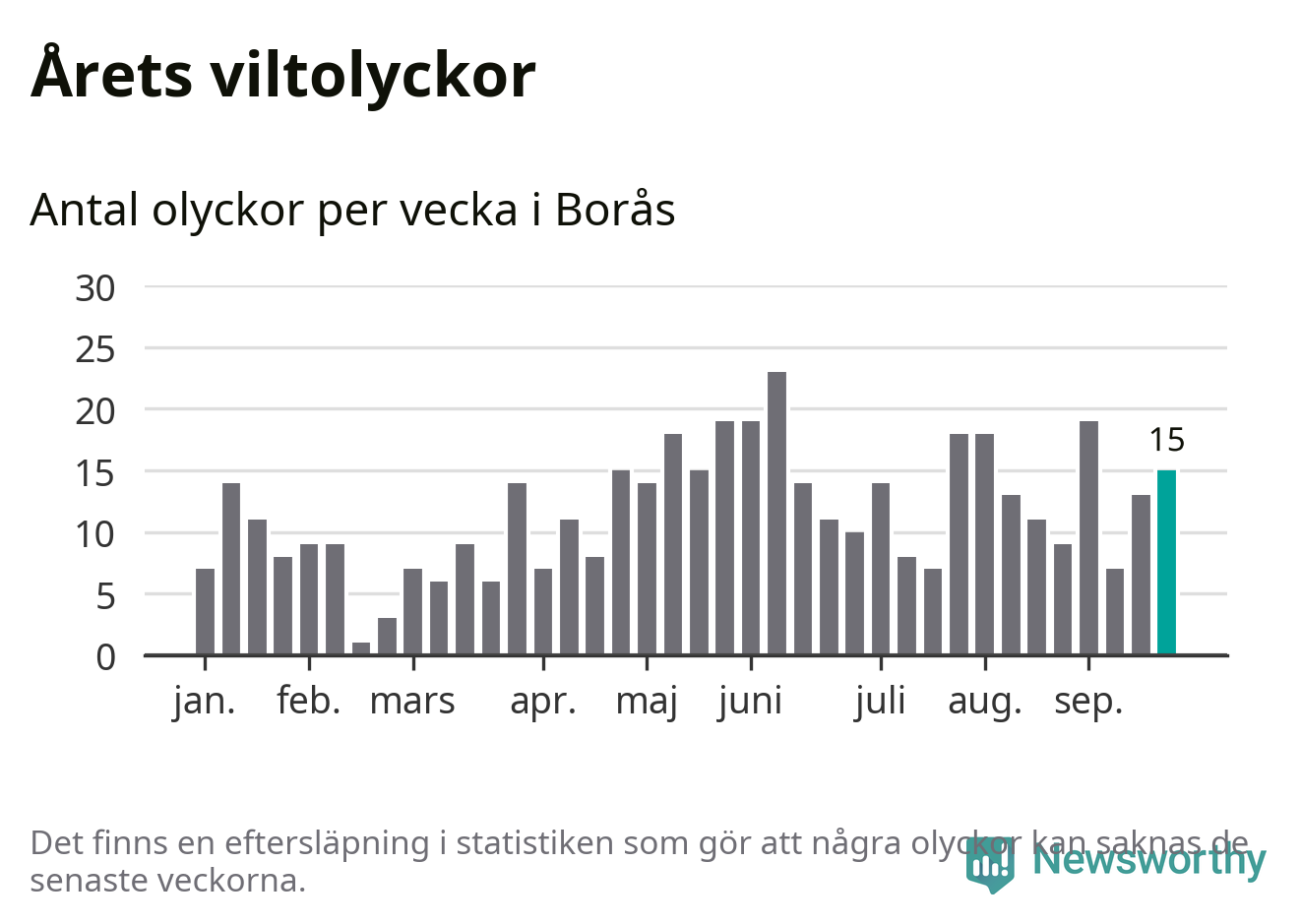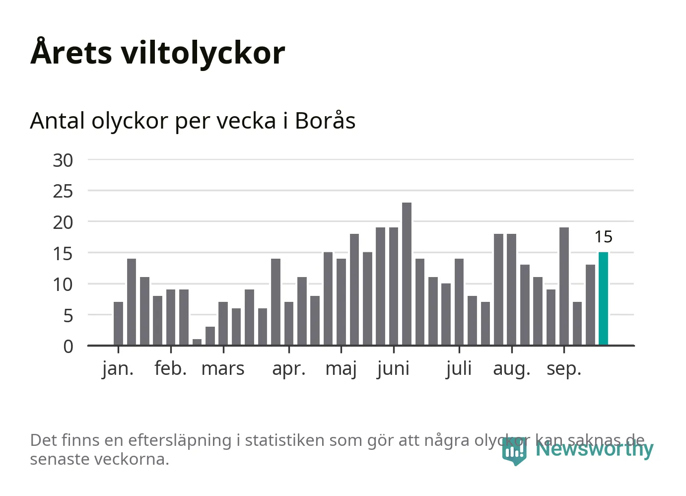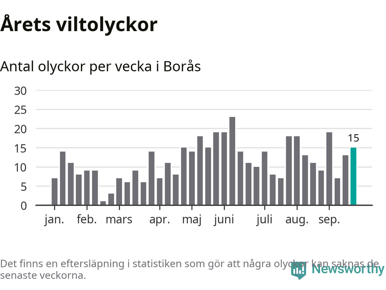 Hittills har 15 viltolyckor rapporterats in i Borås kommun från vecka 39. Se listan här.