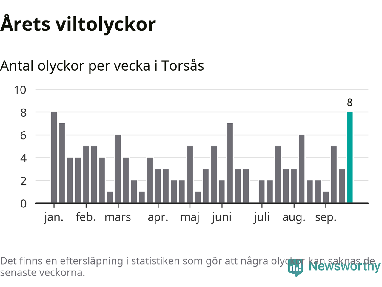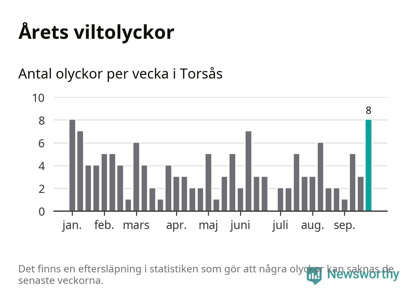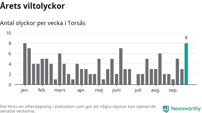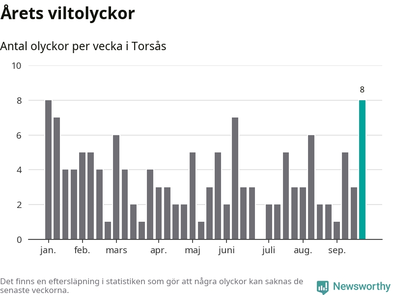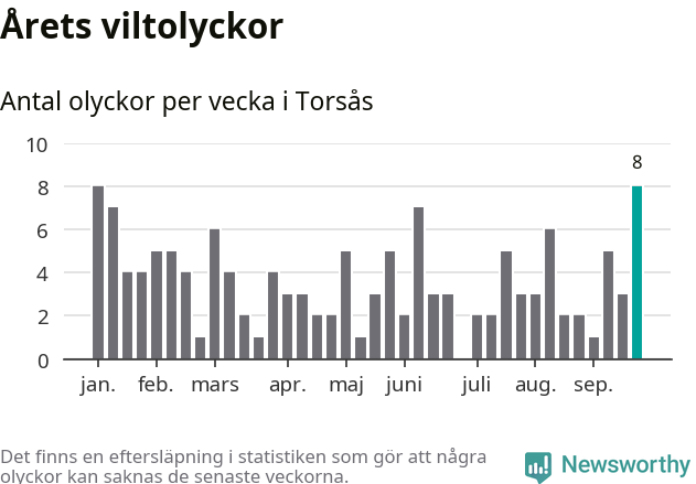 Åtta olyckor på en enda vecka är också ovanligt många. Bara tio gånger tidigare sedan 2015 har det skett