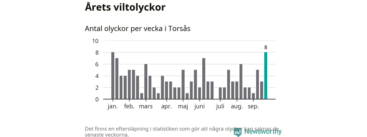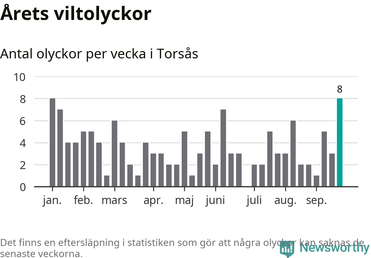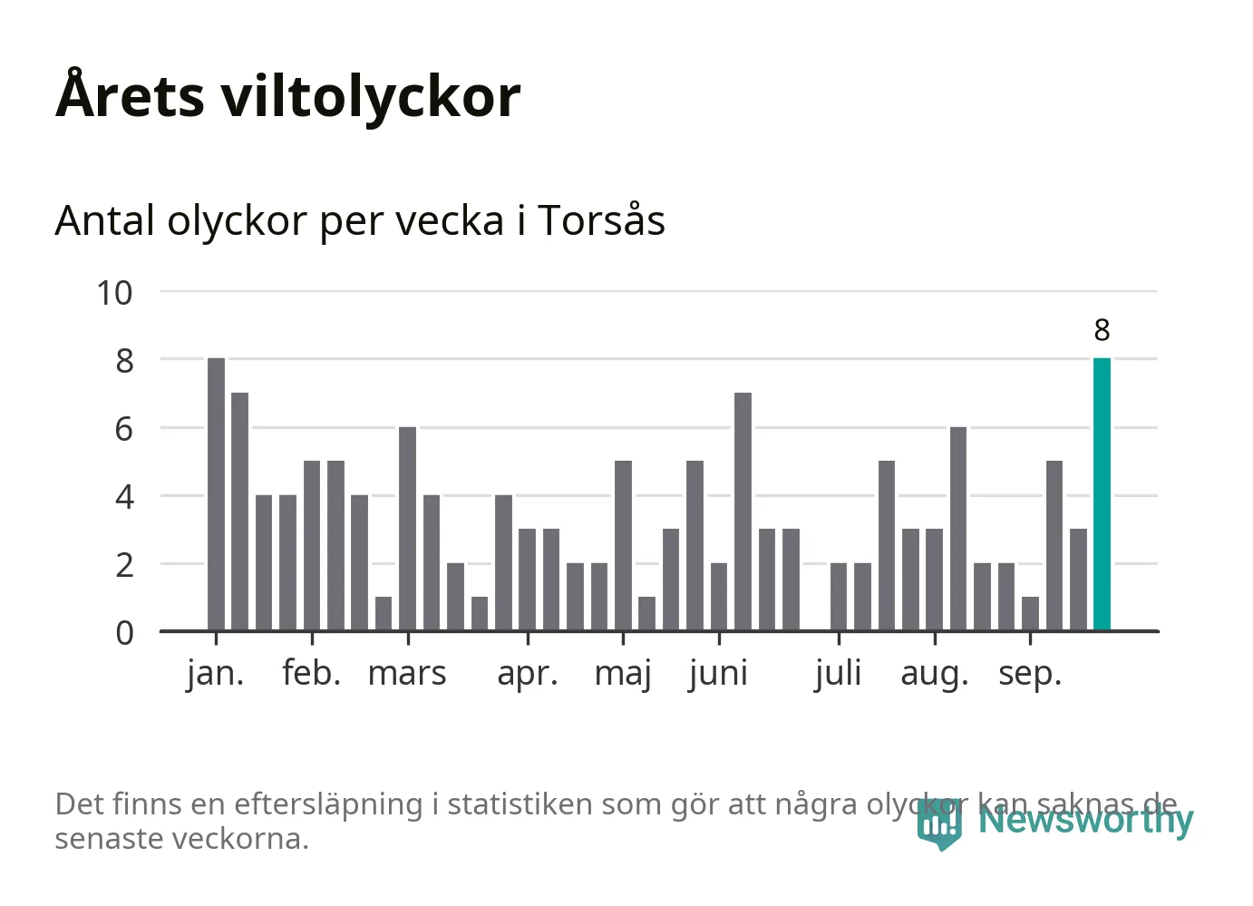 Åtta olyckor på en enda vecka är också ovanligt många. Bara tio gånger tidigare sedan 2015 har det skett