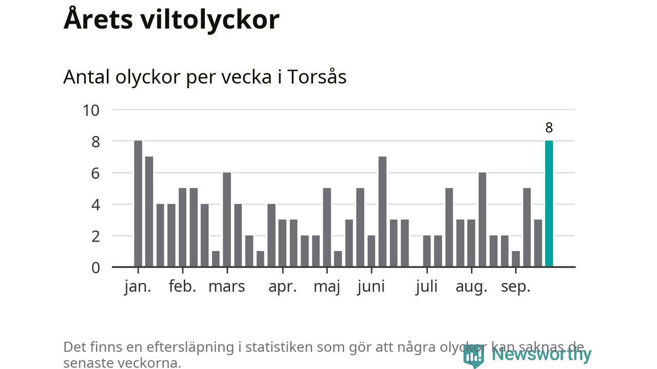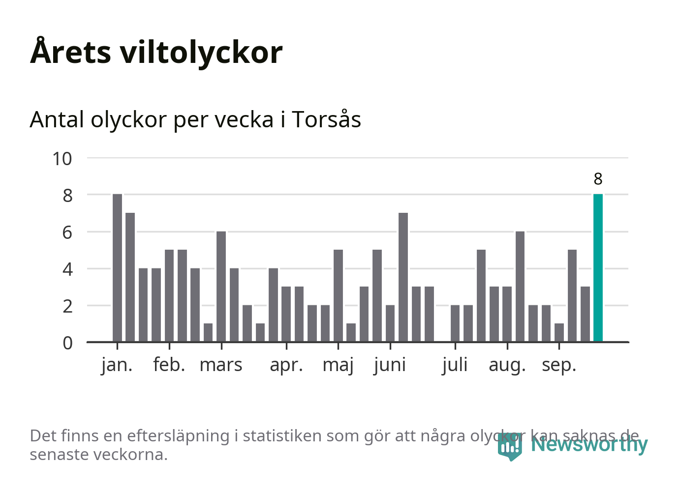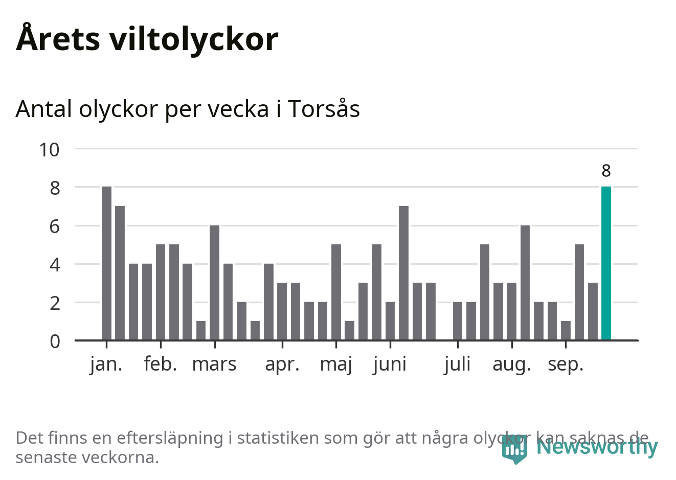 139 viltolyckor i kommunen. Det är mer än genomsnittet för motsvarande period (omkring 119) de senaste tio åren.
