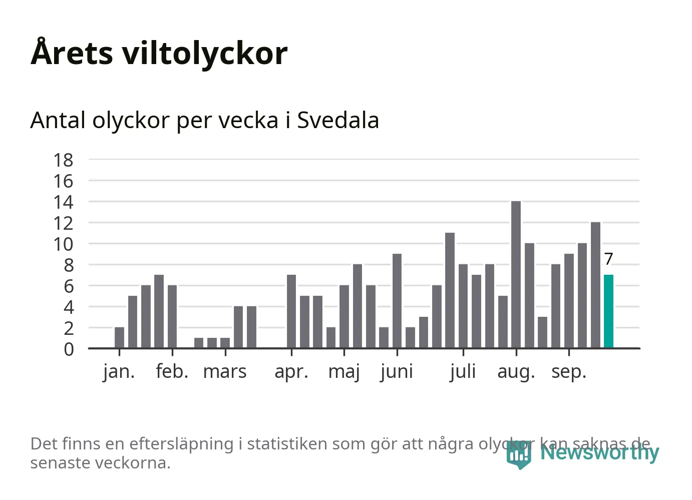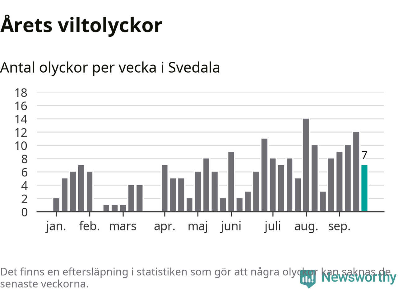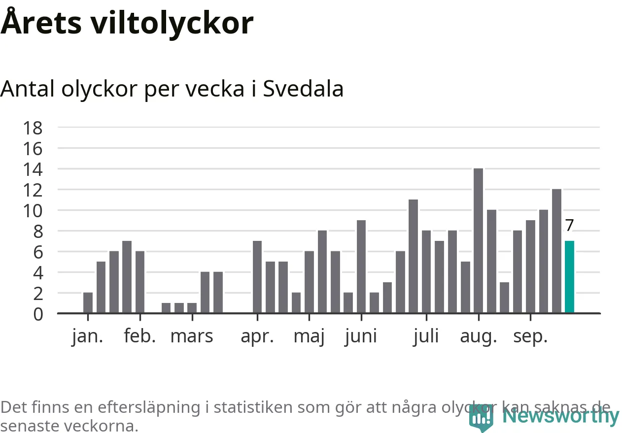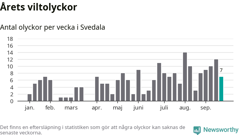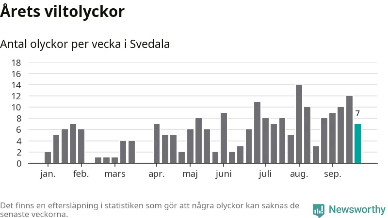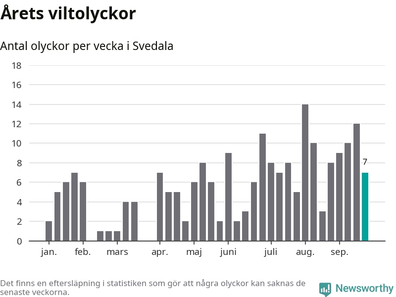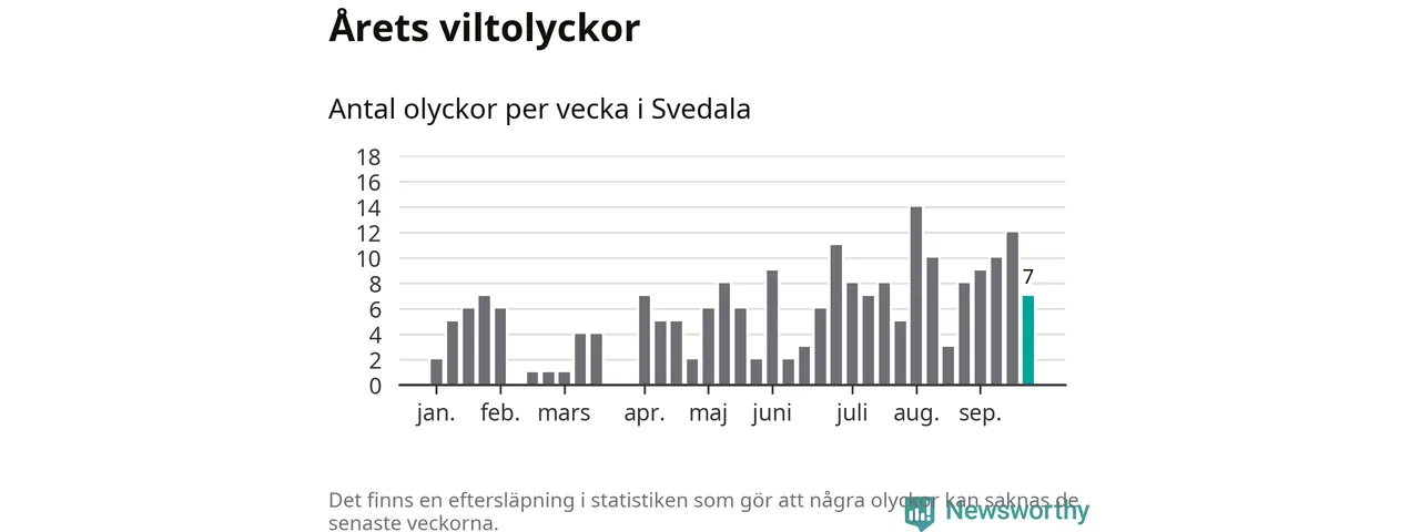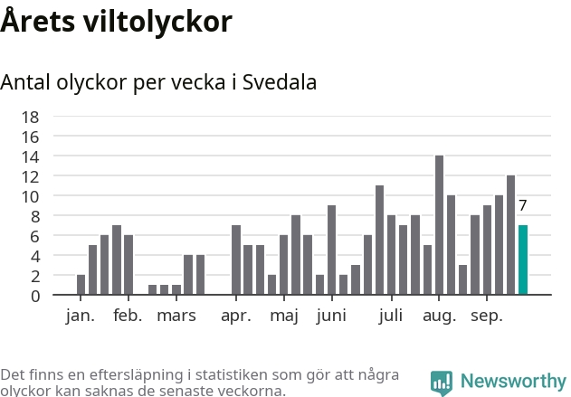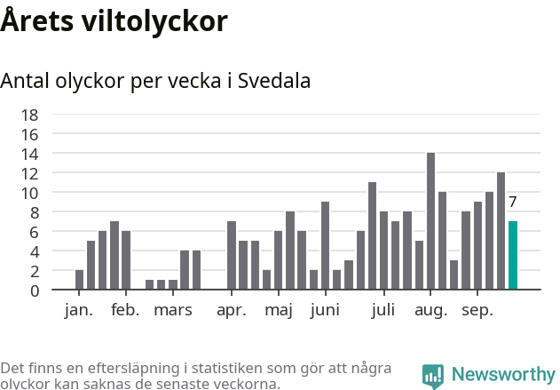 Hittills har sju viltolyckor rapporterats in i Svedala kommun från vecka 39. Se listan här.