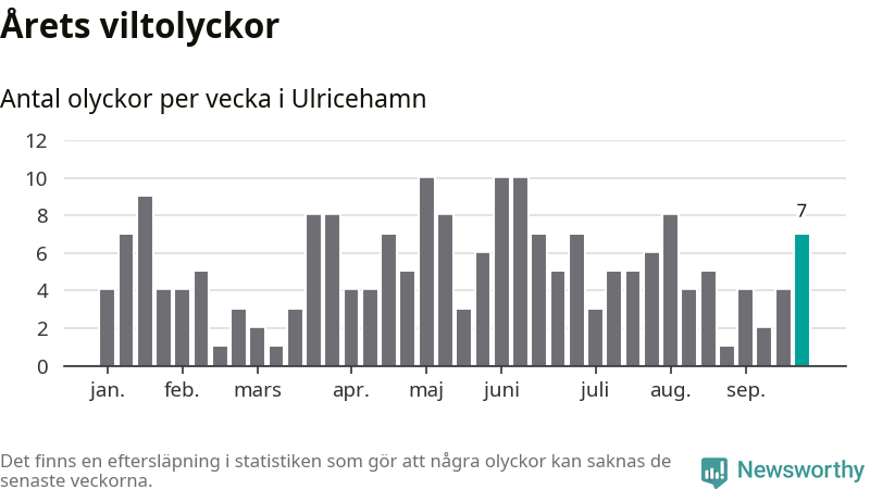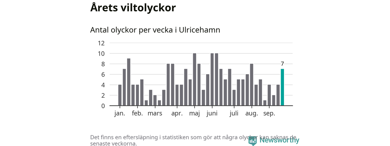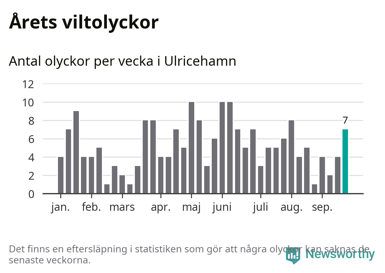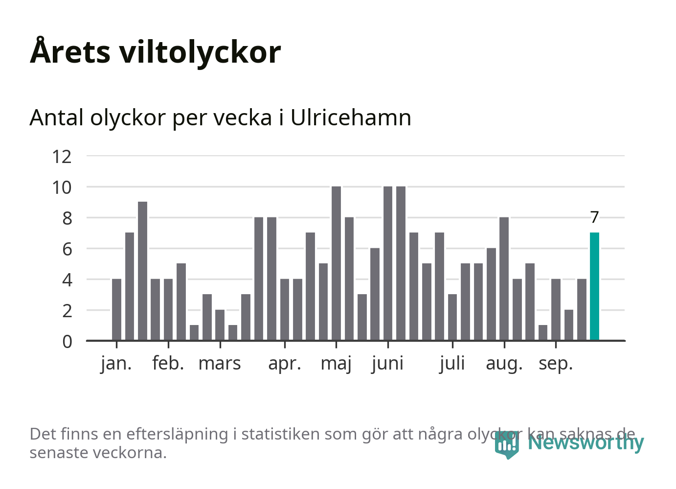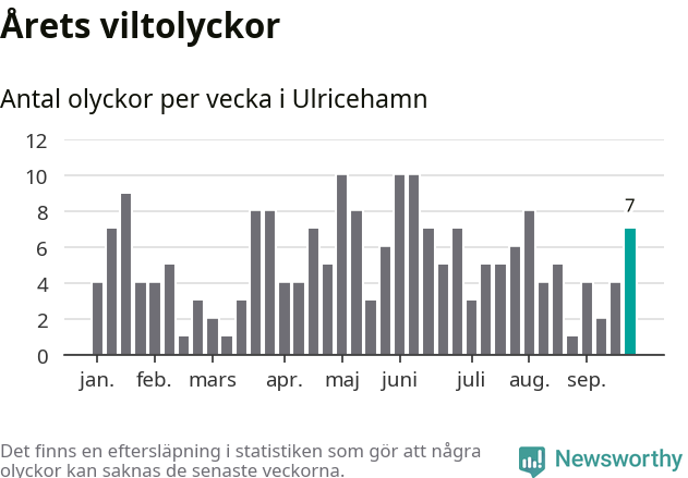 Hittills har sju viltolyckor rapporterats in i Ulricehamns kommun från vecka 39. Se listan här.