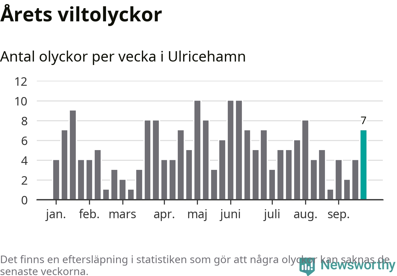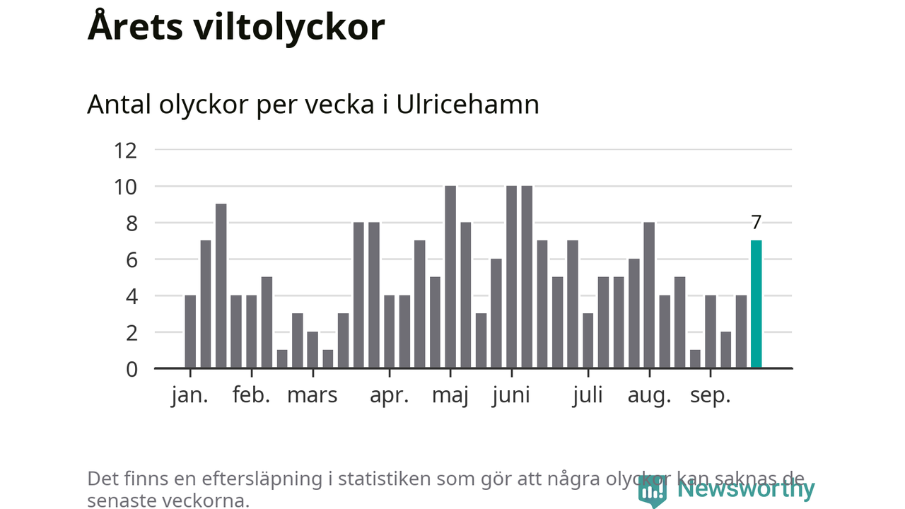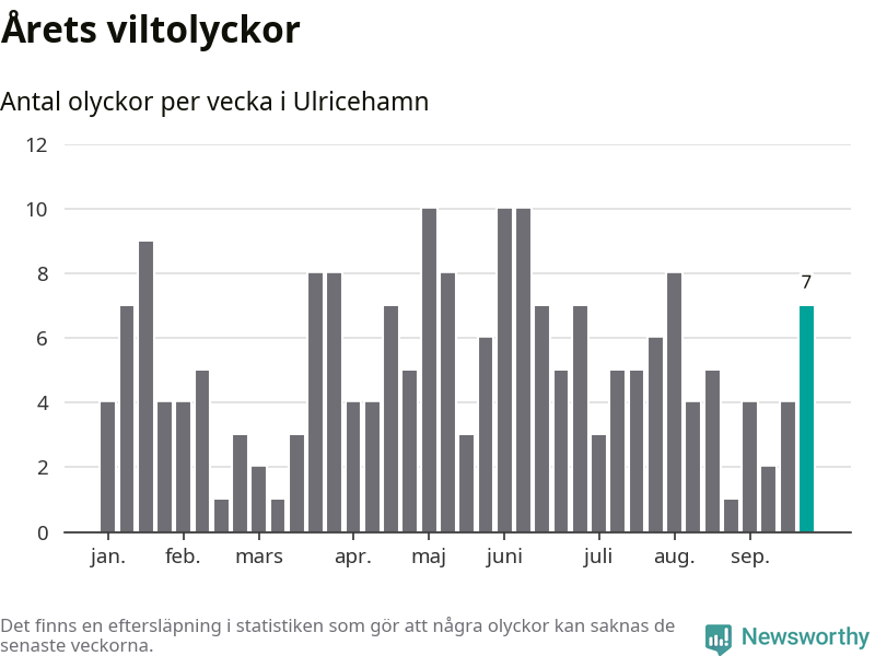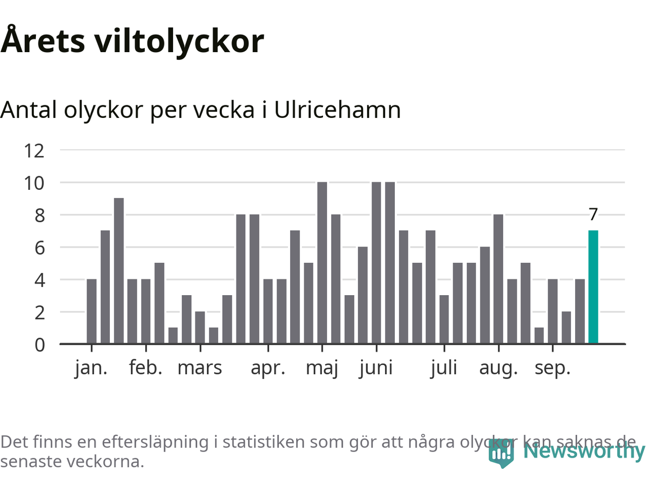Hittills har sju viltolyckor rapporterats in i Ulricehamns kommun från vecka 39. Se listan här.