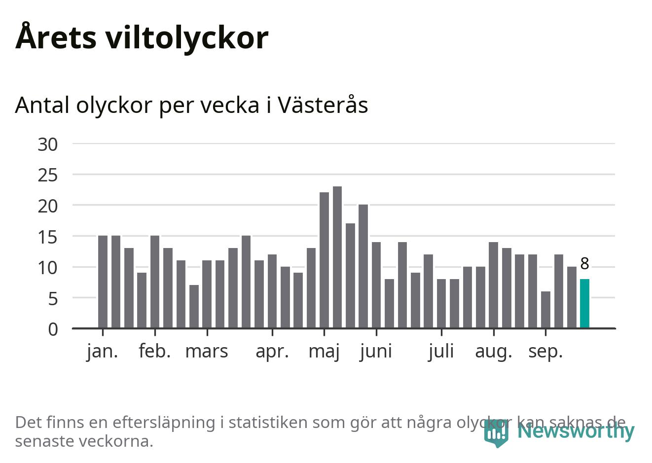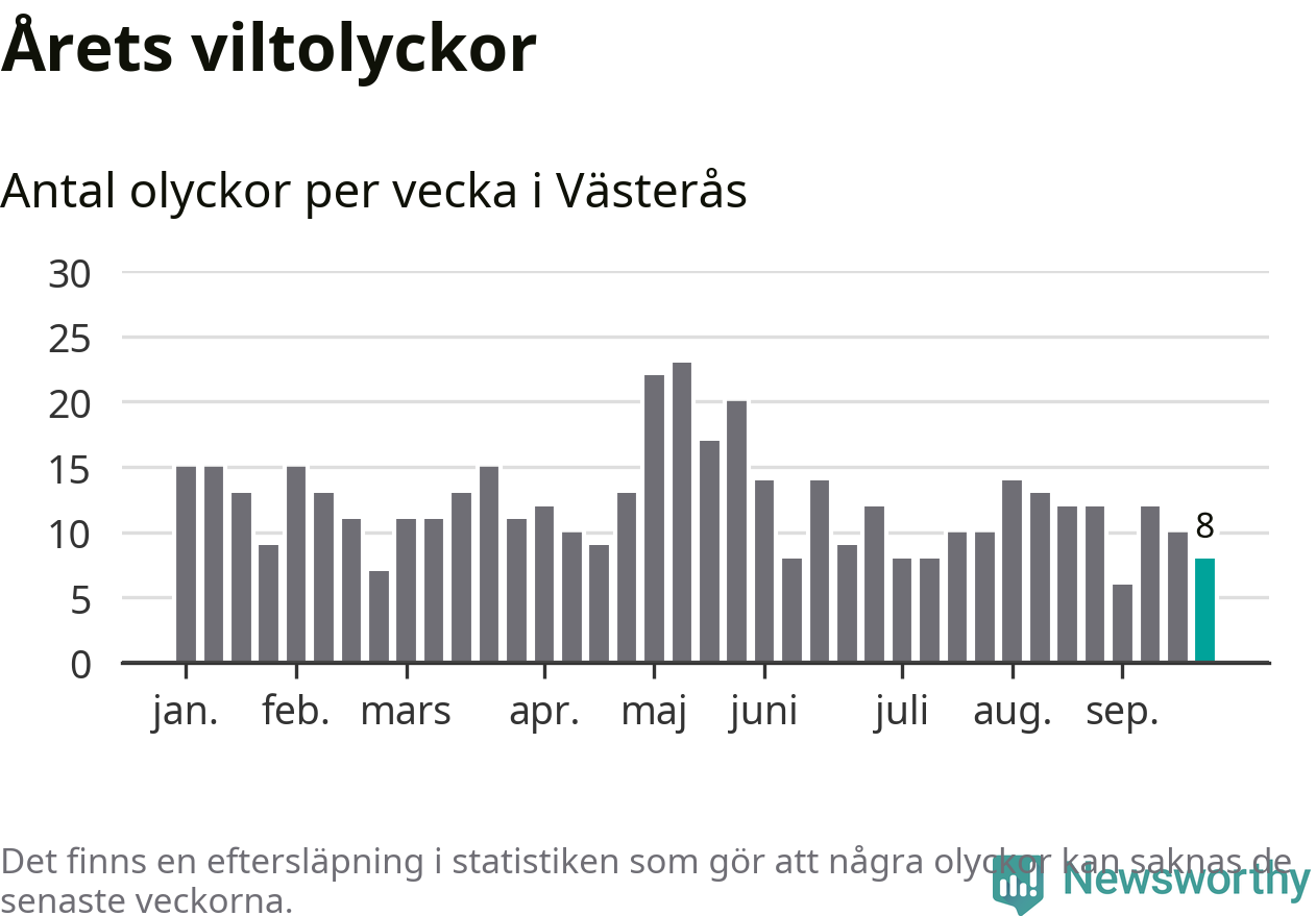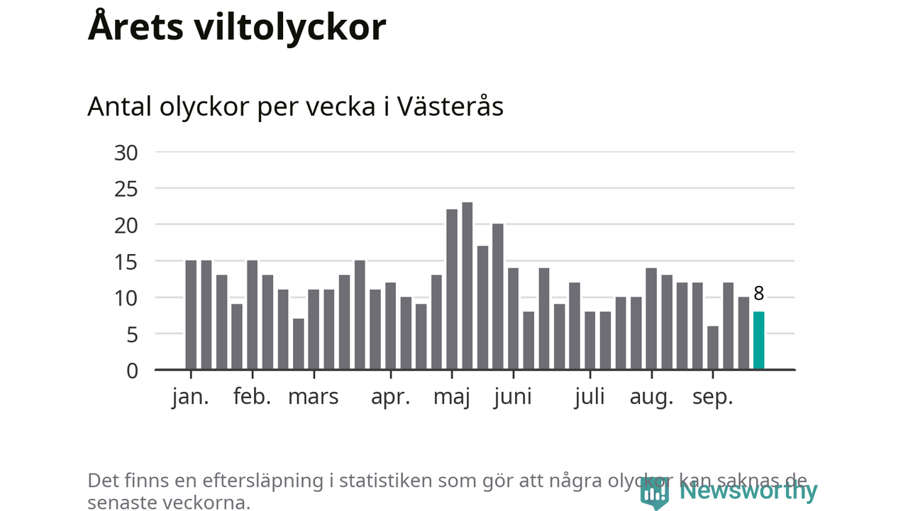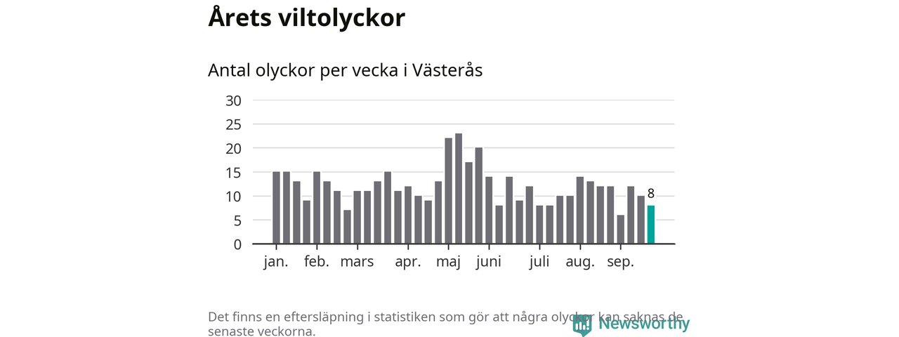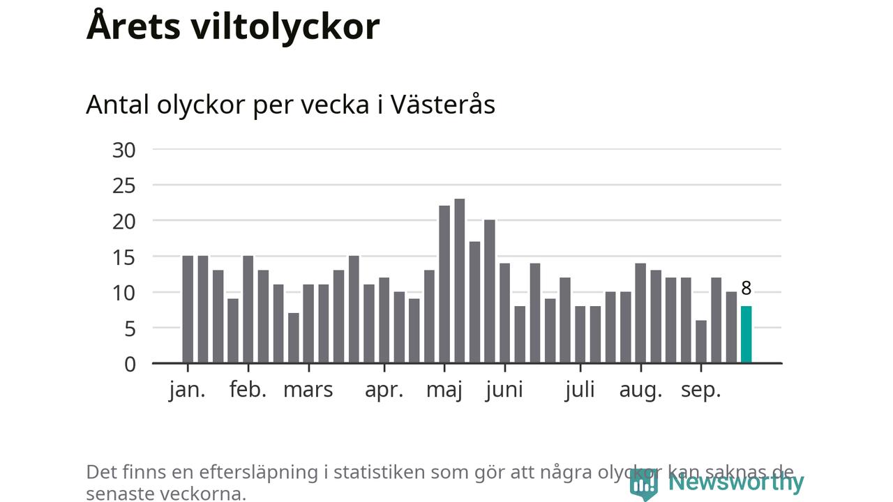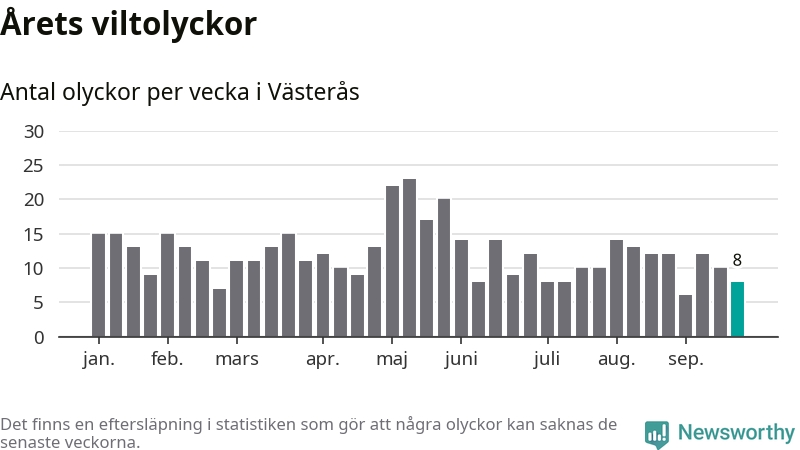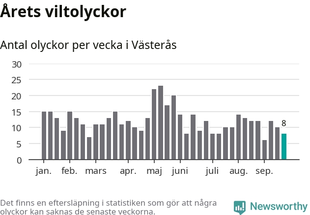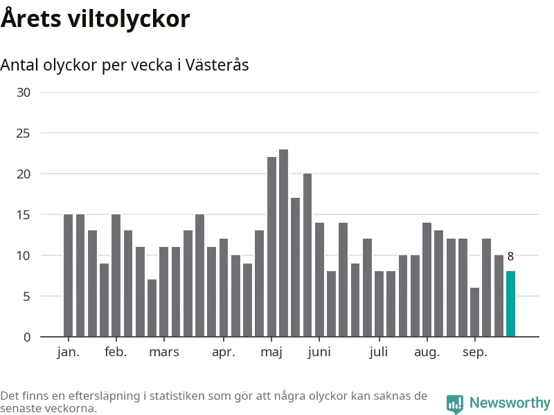 Hittills har åtta viltolyckor rapporterats in i Västerås kommun från vecka 39. Se listan här.