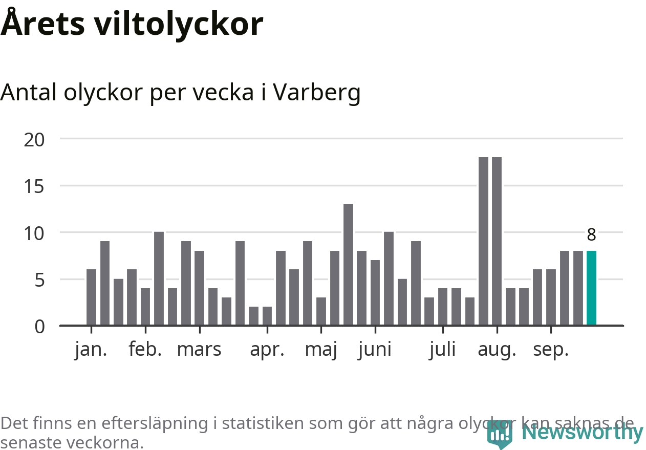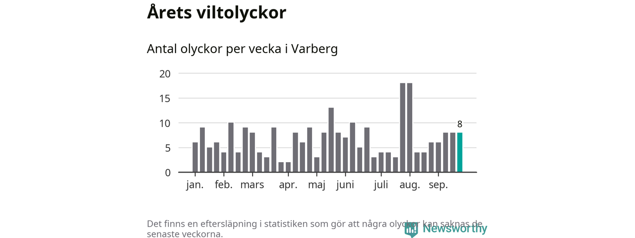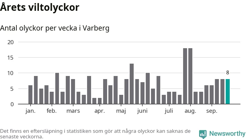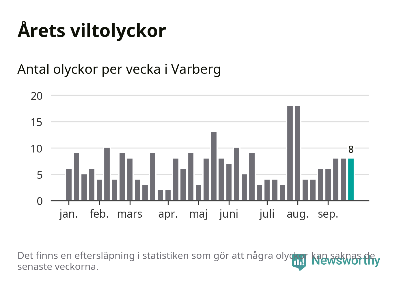Hittills har åtta viltolyckor rapporterats in i Varbergs kommun från vecka 39. Se listan här.
