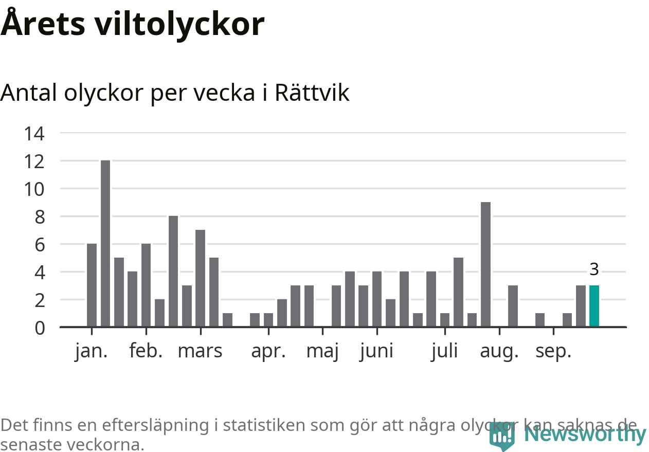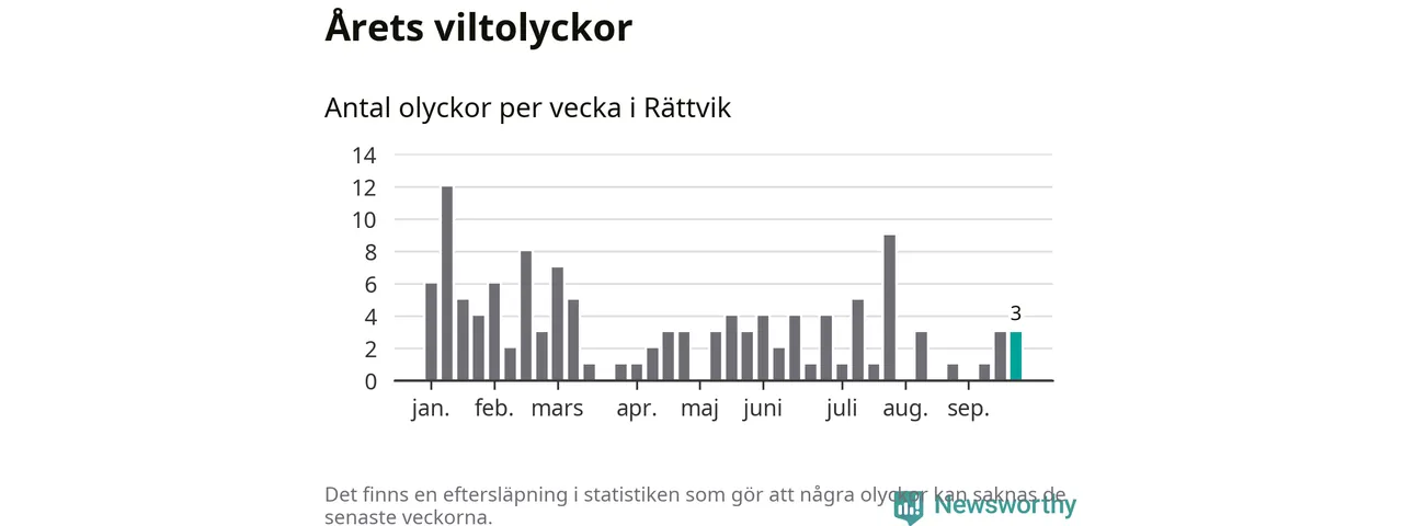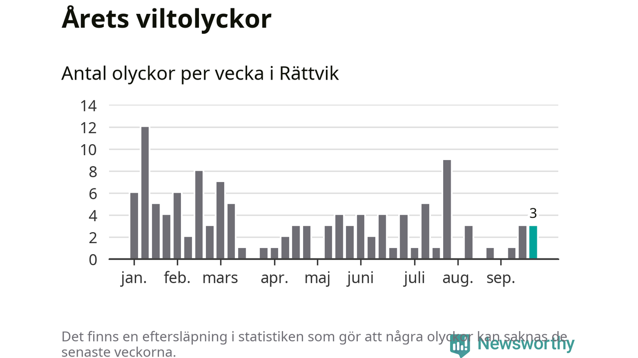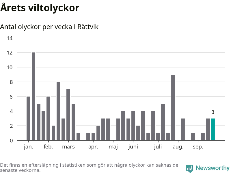 Totalt det här året har det inträffat 124 viltolyckor i kommunen. Det är en normal nivå i förhållande till hur det har sett ut under de senaste tio åren – genomsnittet för motsvarande period är 122.