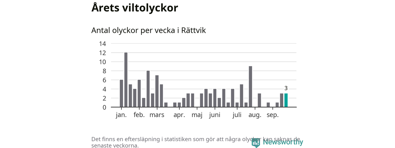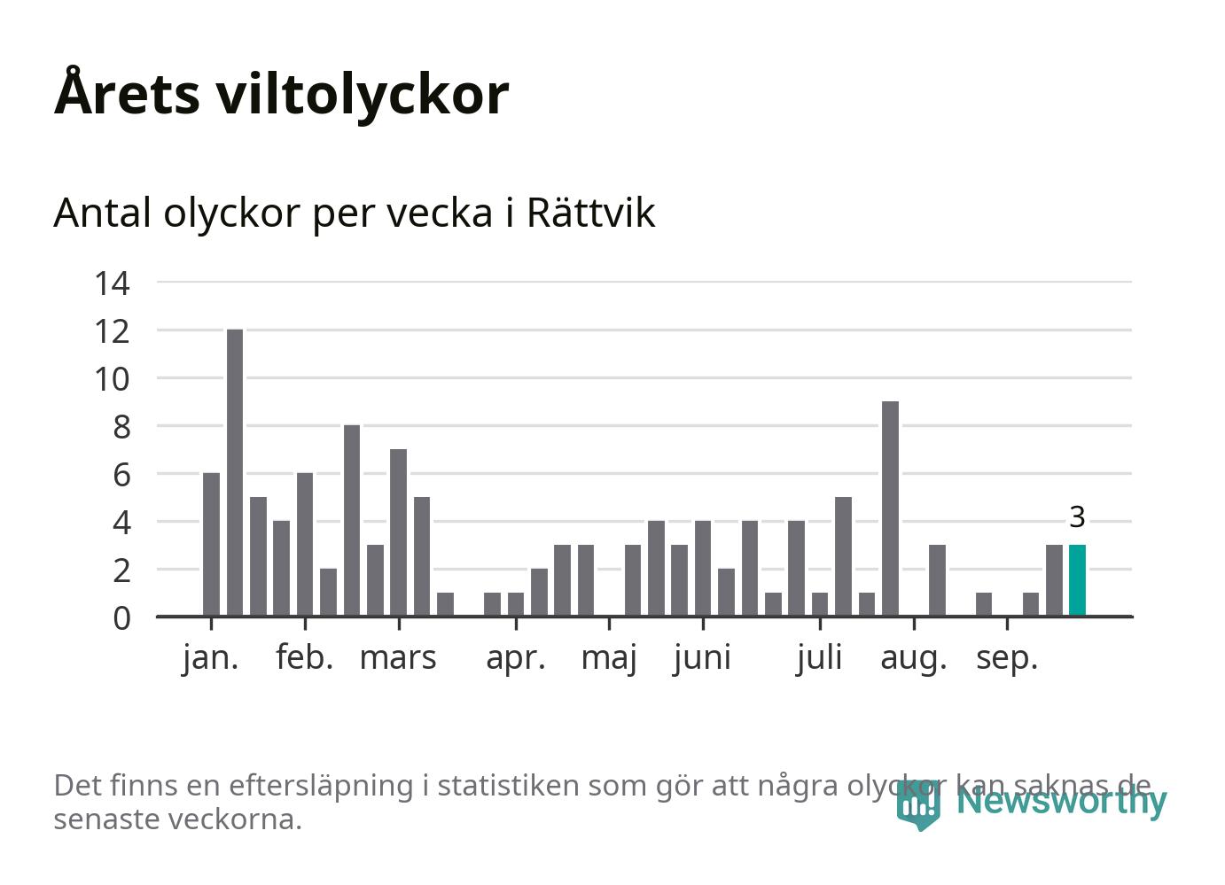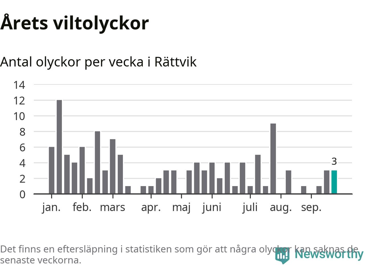 Hittills har tre viltolyckor rapporterats in i Rättviks kommun från vecka 39. Se listan här.