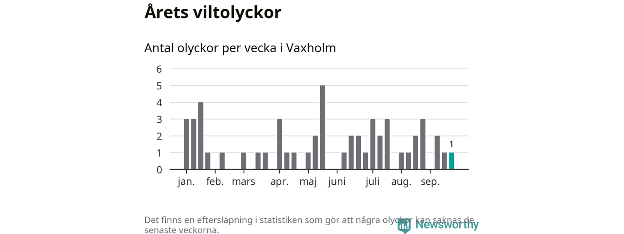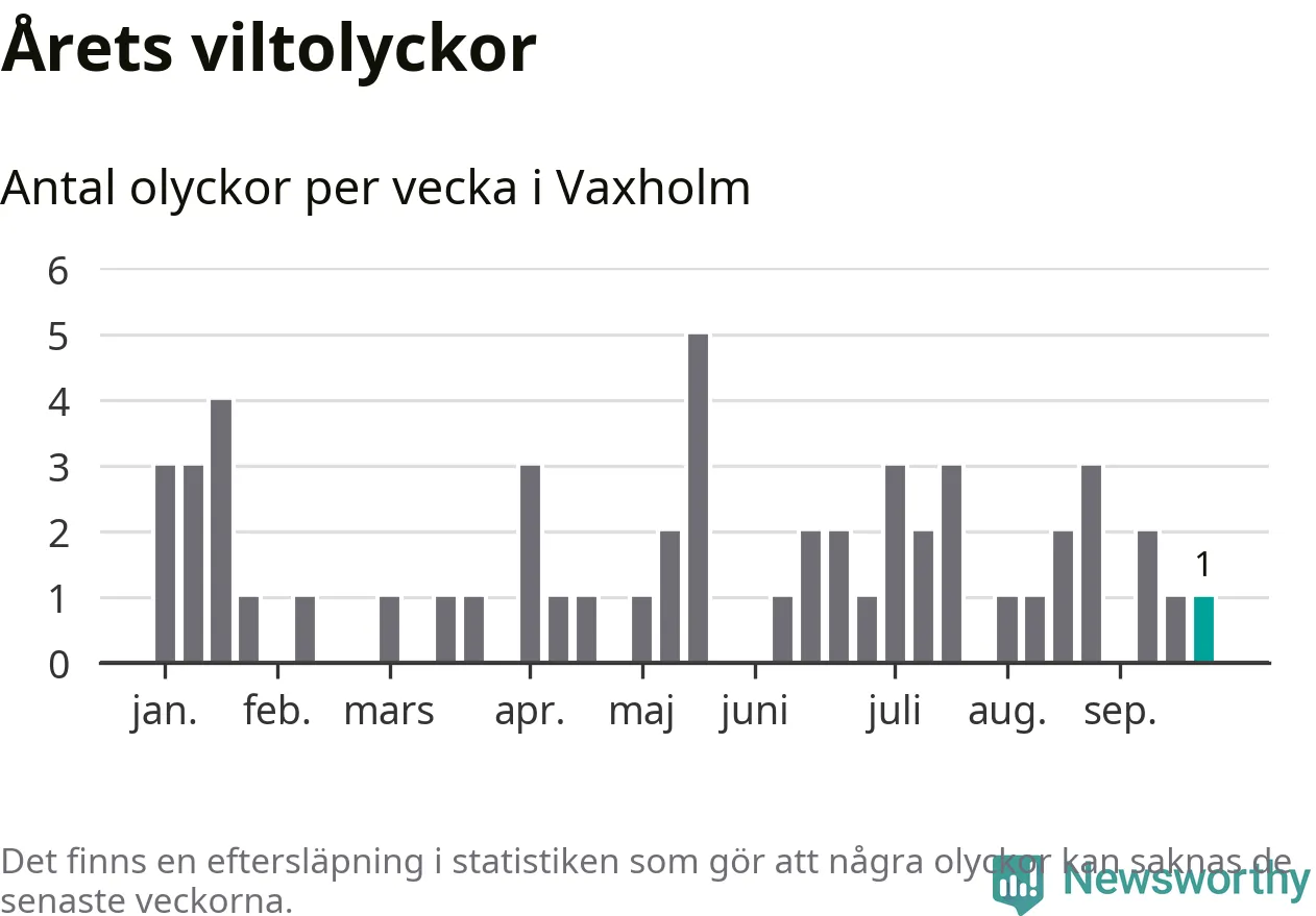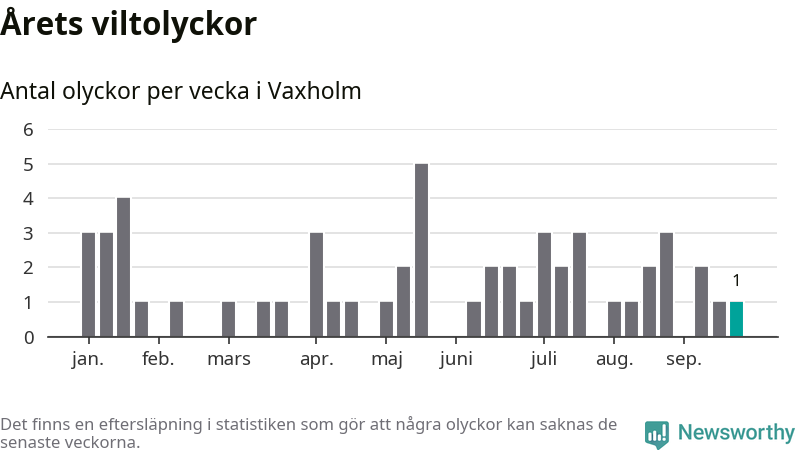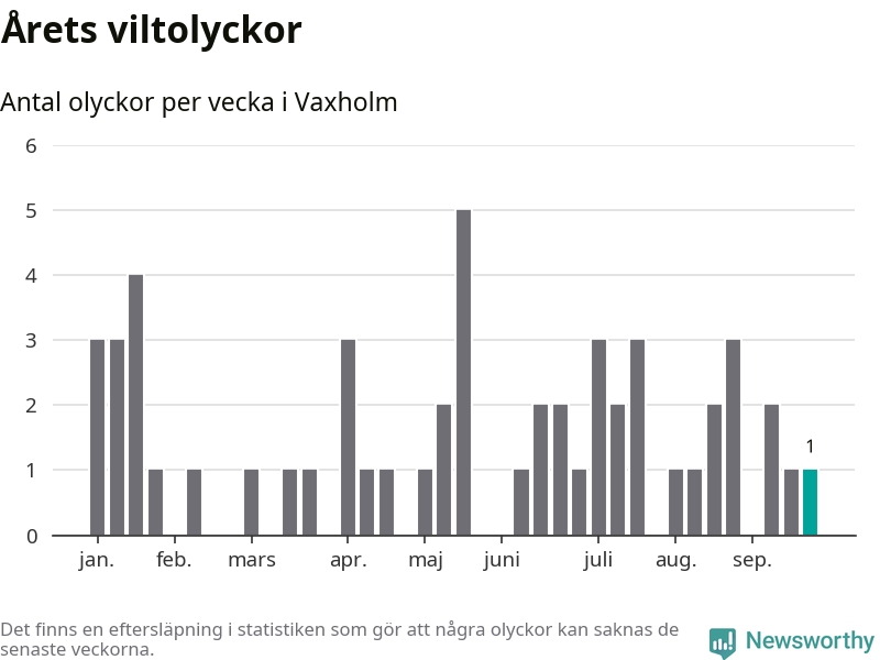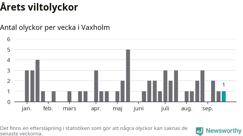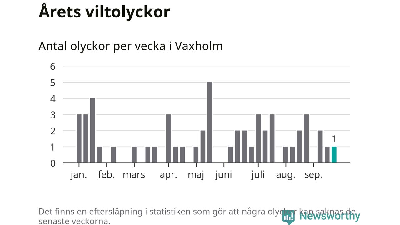 Från förra veckan (vecka 39) har hittills en viltolycka rapporterats in i Vaxholms kommun.