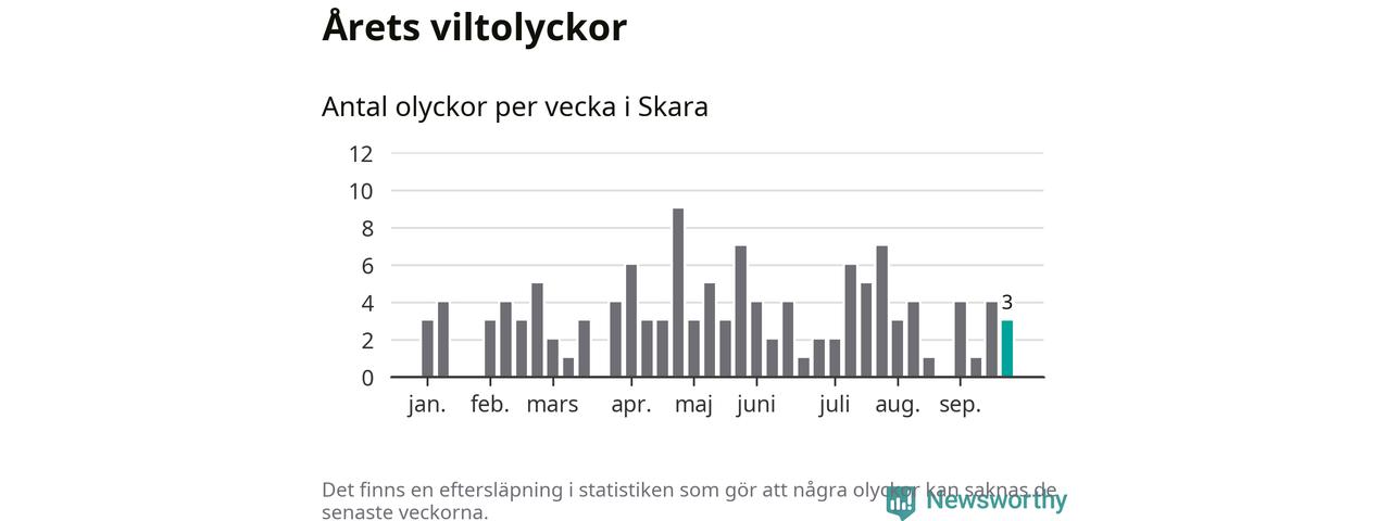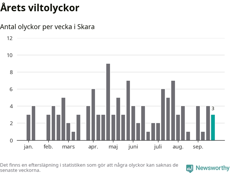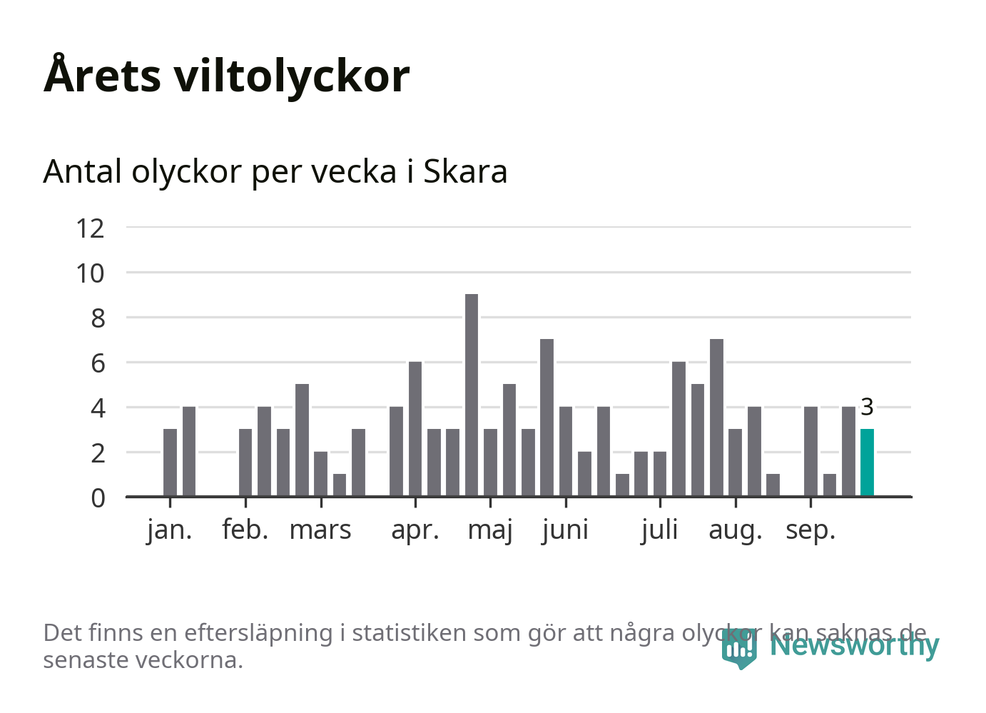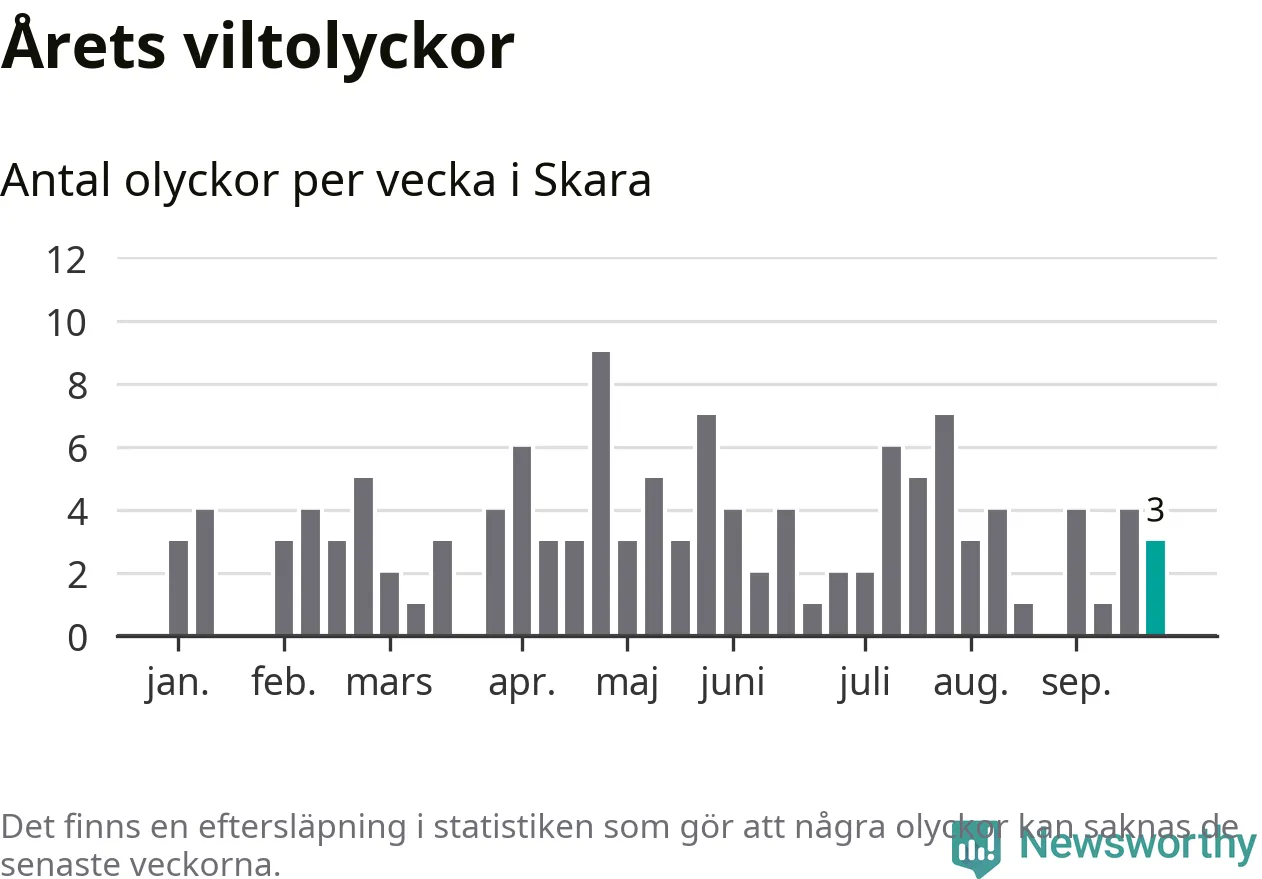 Hittills har tre viltolyckor rapporterats in i Skara kommun från vecka 39. Se listan här.