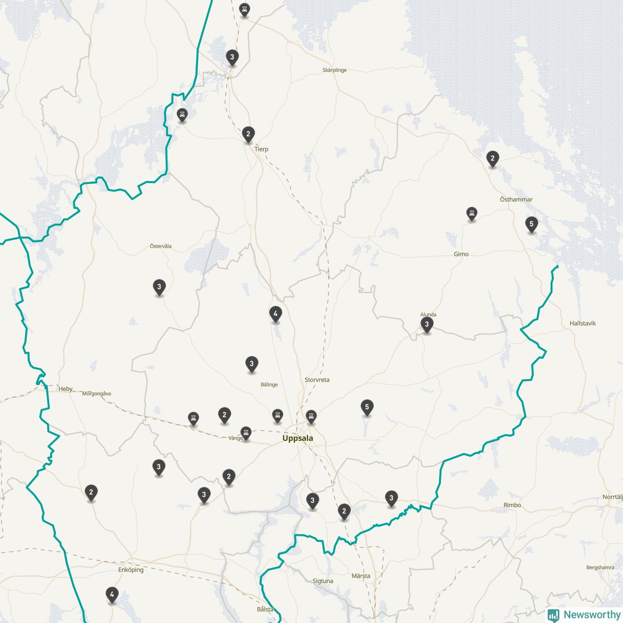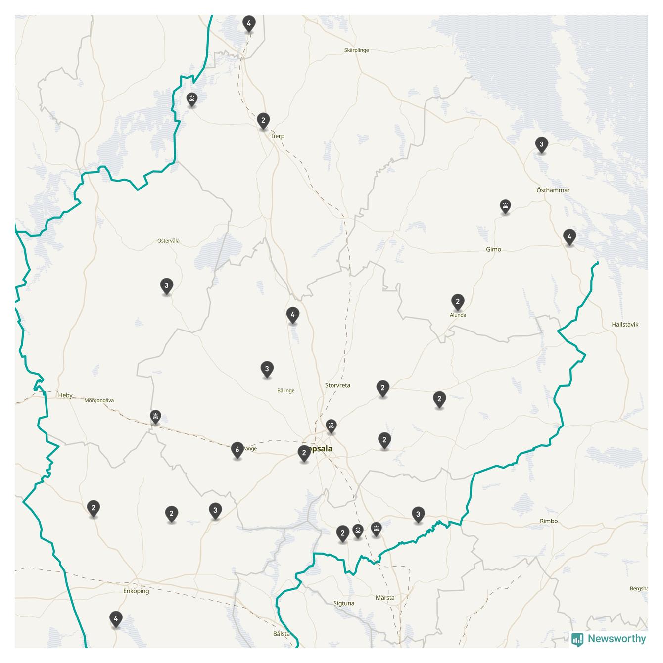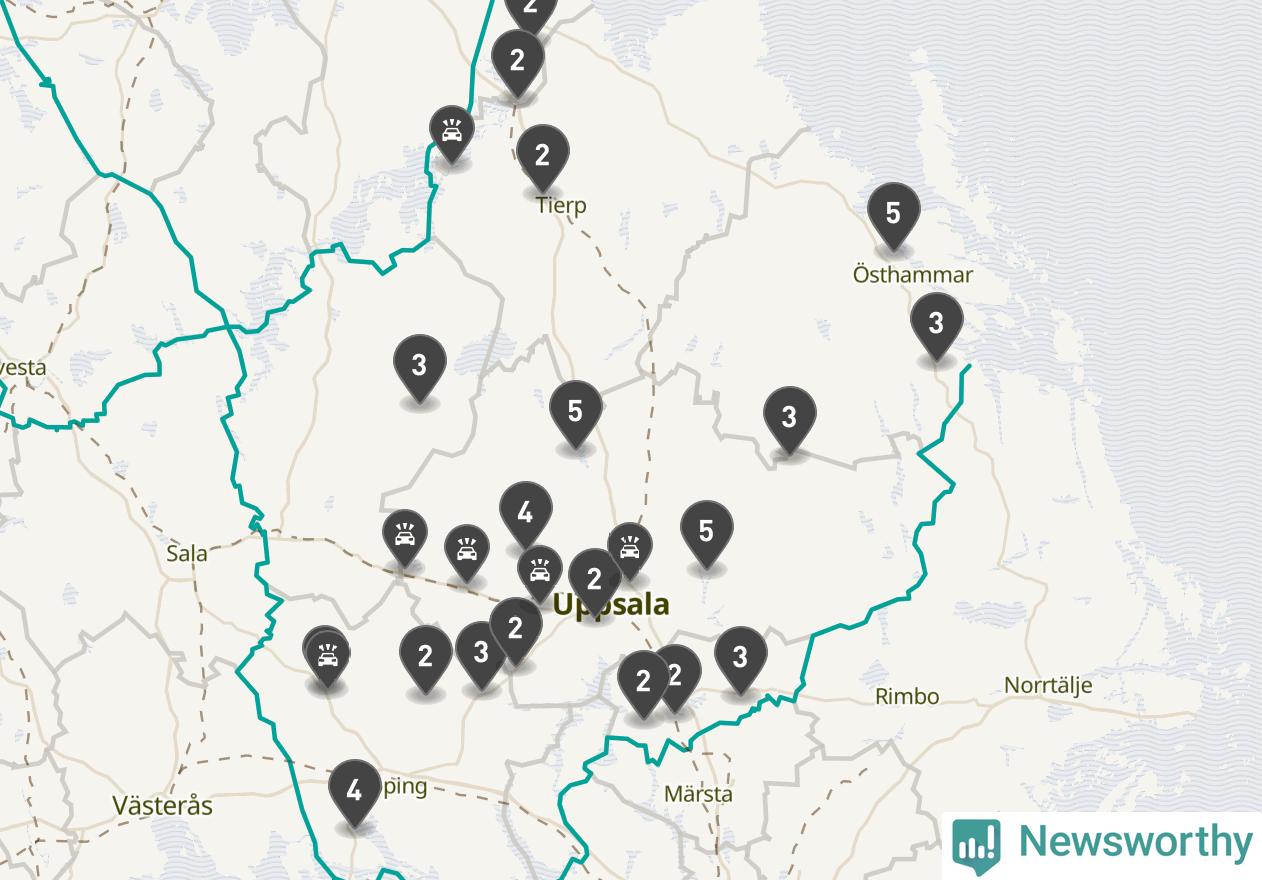 Här inträffade viltolyckorna i Uppsala förra veckan
