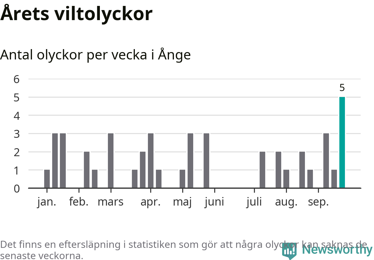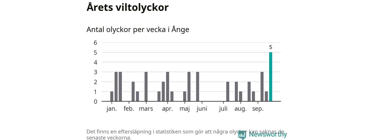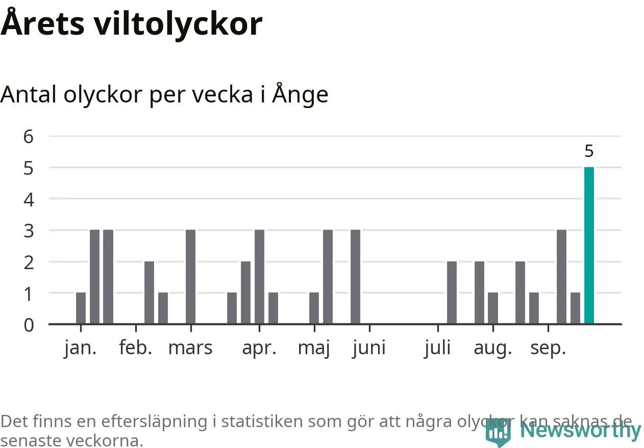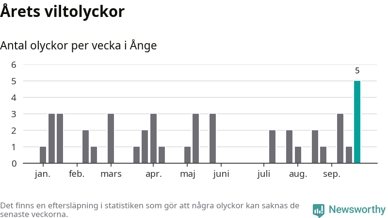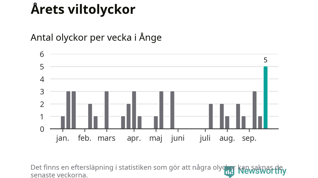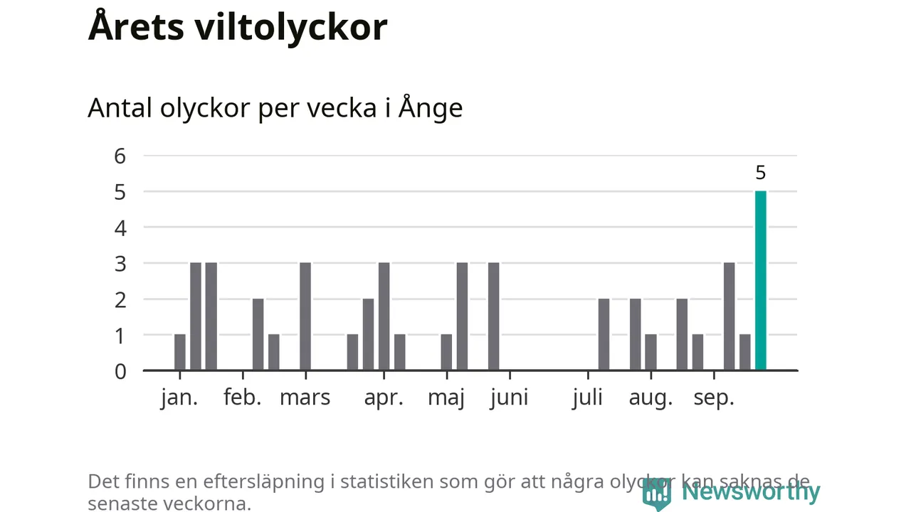 Under vecka 39 rapporterades fem viltolyckor in i Ånge kommun. Det är det största antalet på en enskild vecka hittills i år.