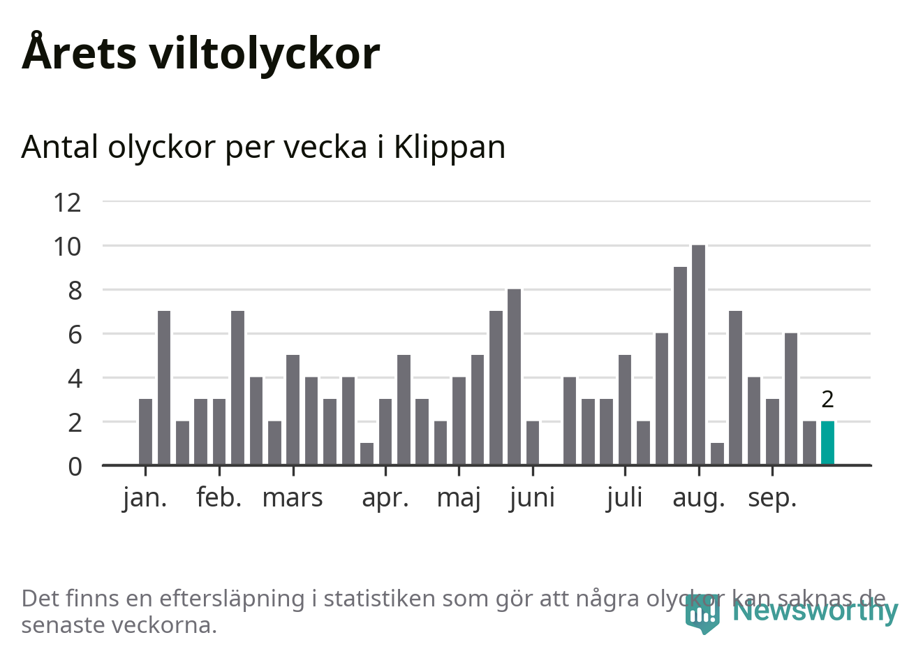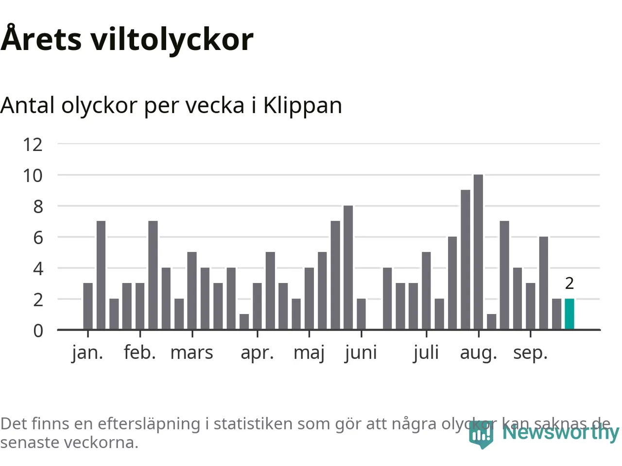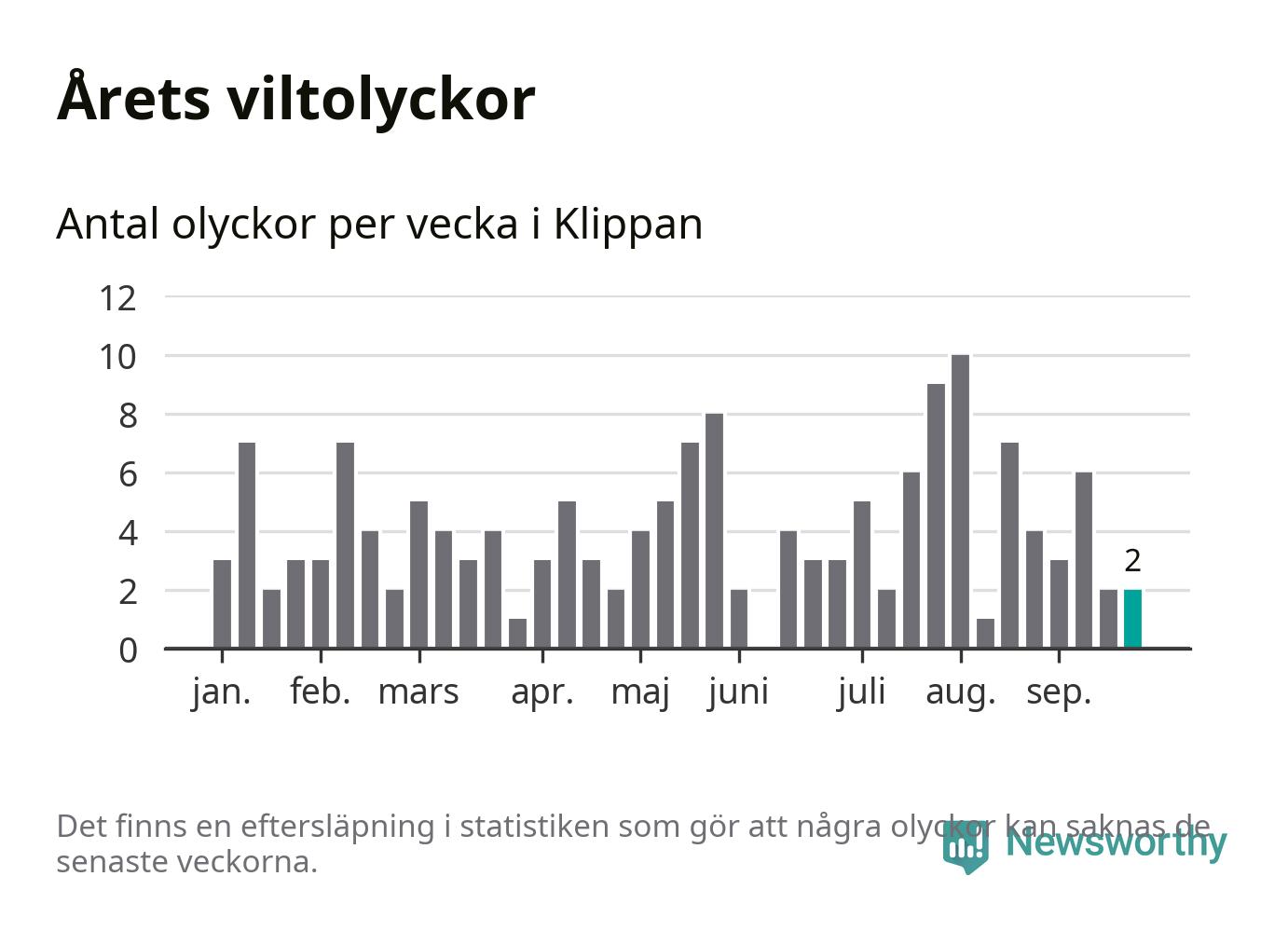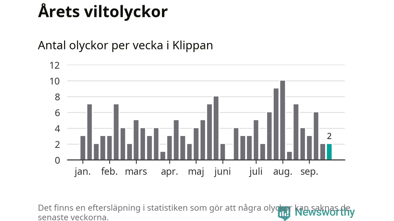Hittills har två viltolyckor rapporterats in i Klippans kommun från vecka 39. Se listan här.