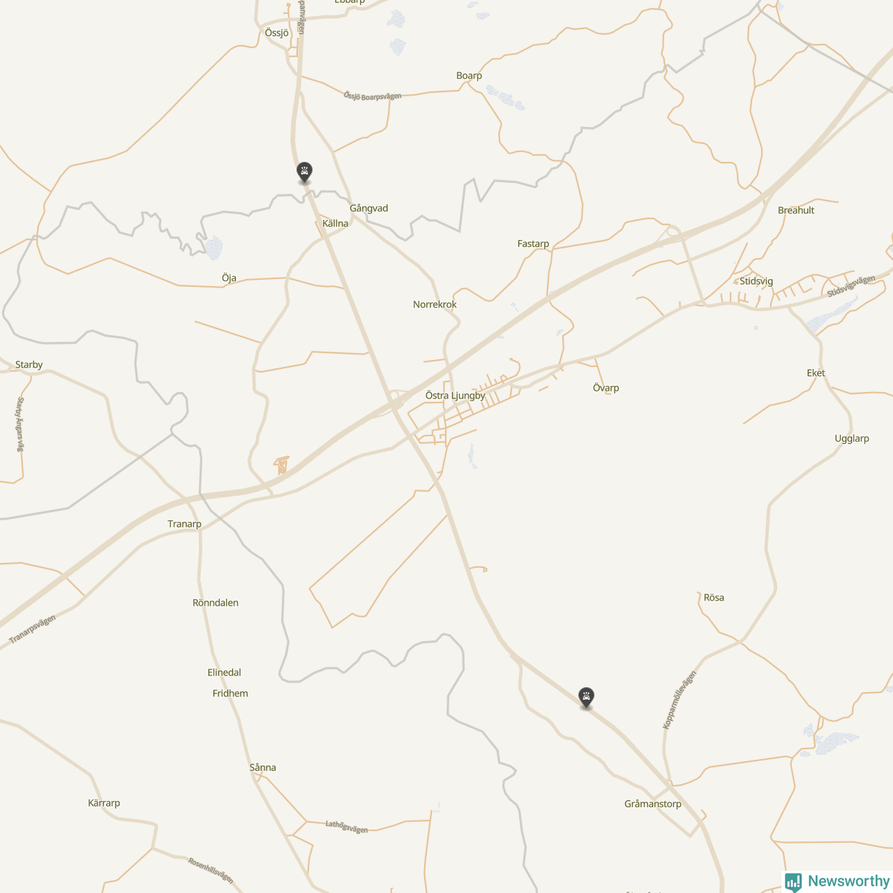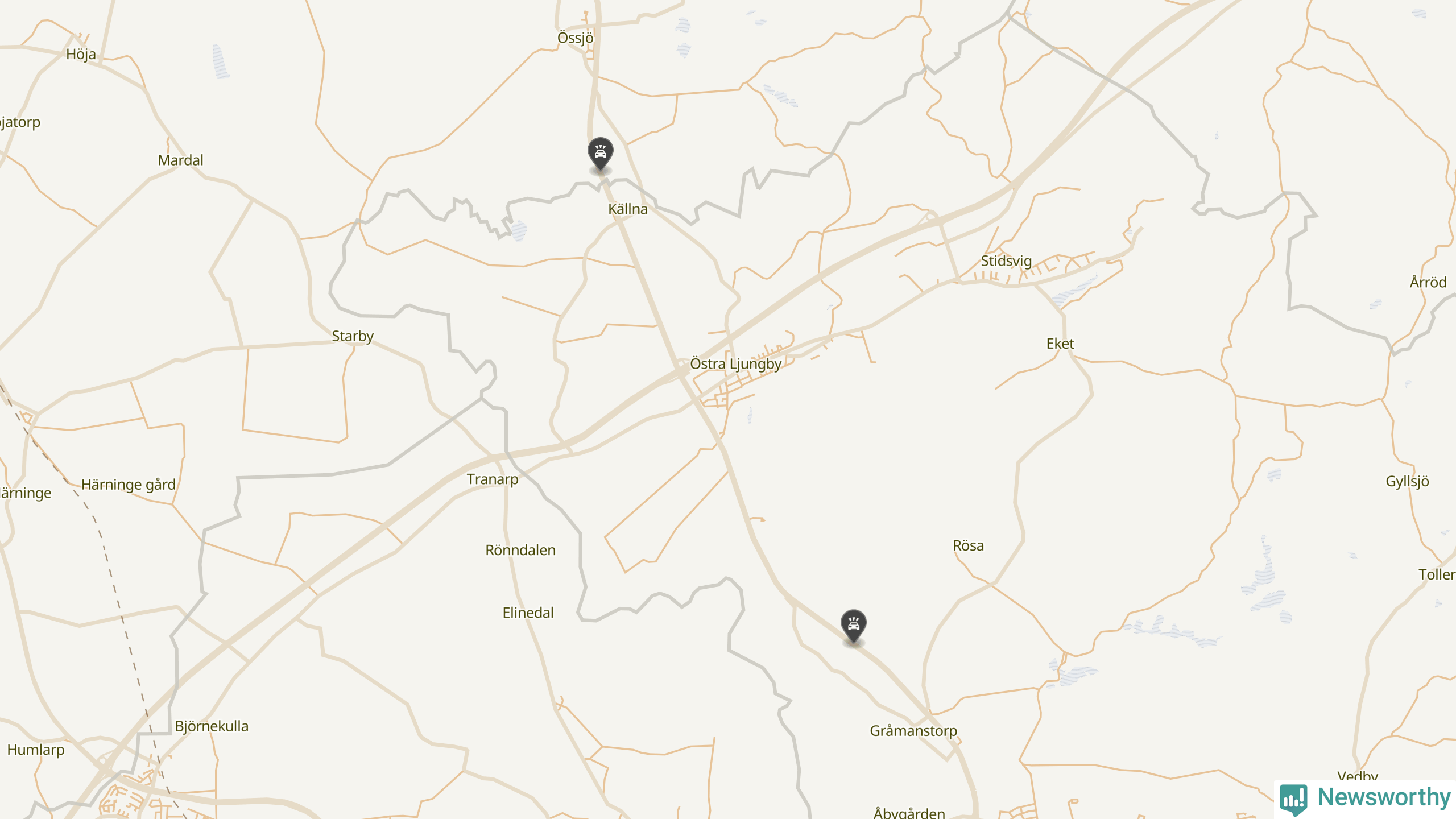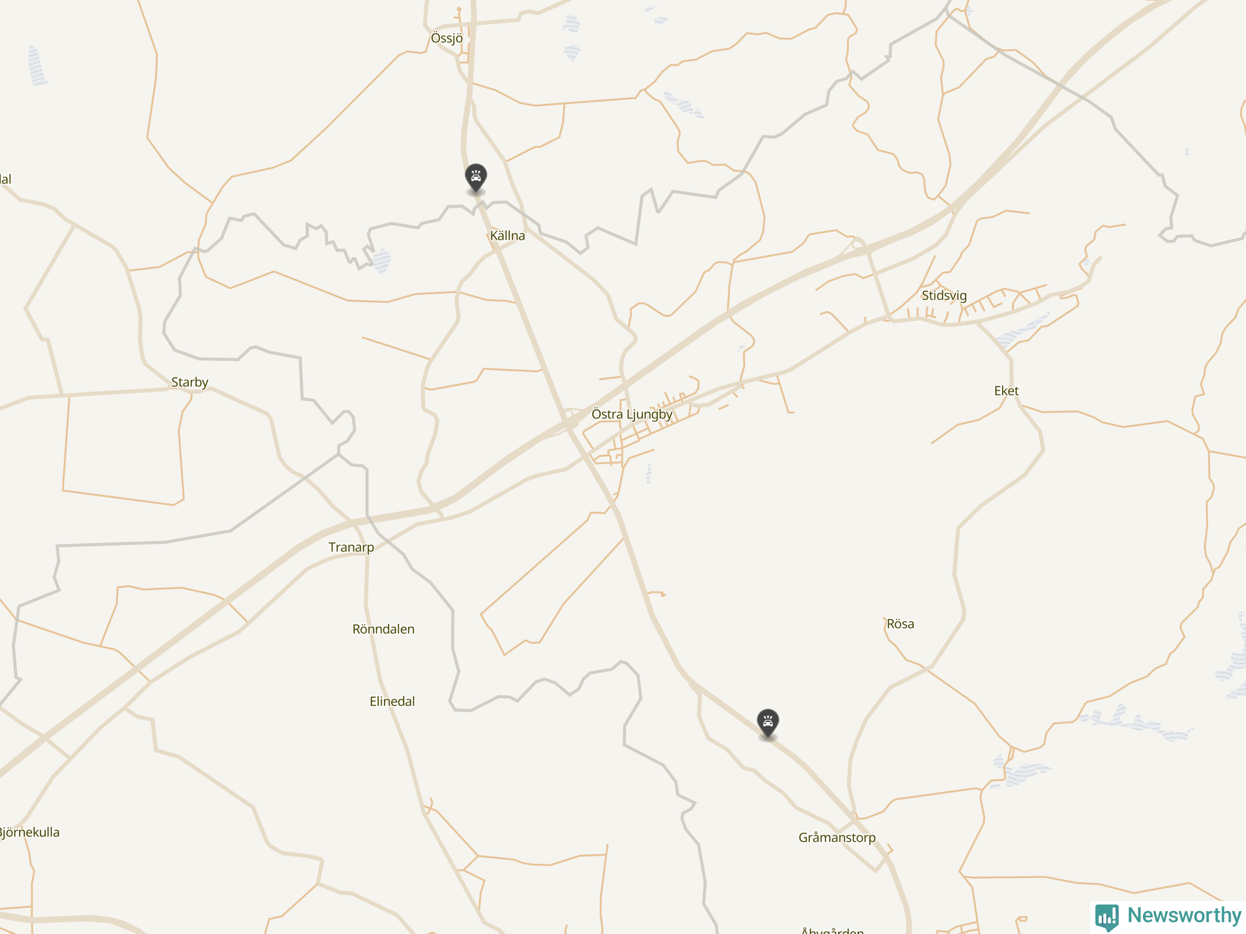 Båda förra veckans viltolyckor inträffade längs väg 13. Det är också där flest viltolyckor brukat rapporteras det senaste decenniet.