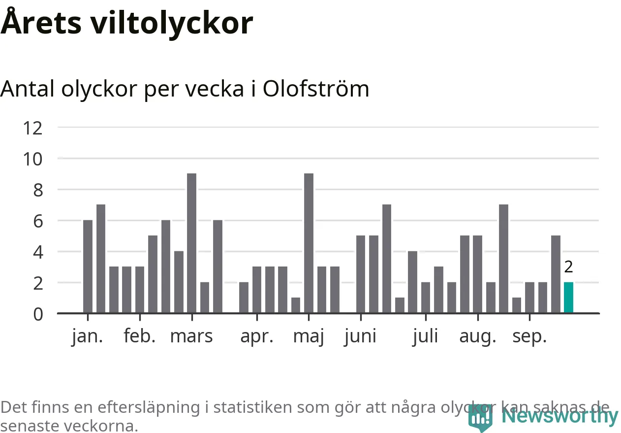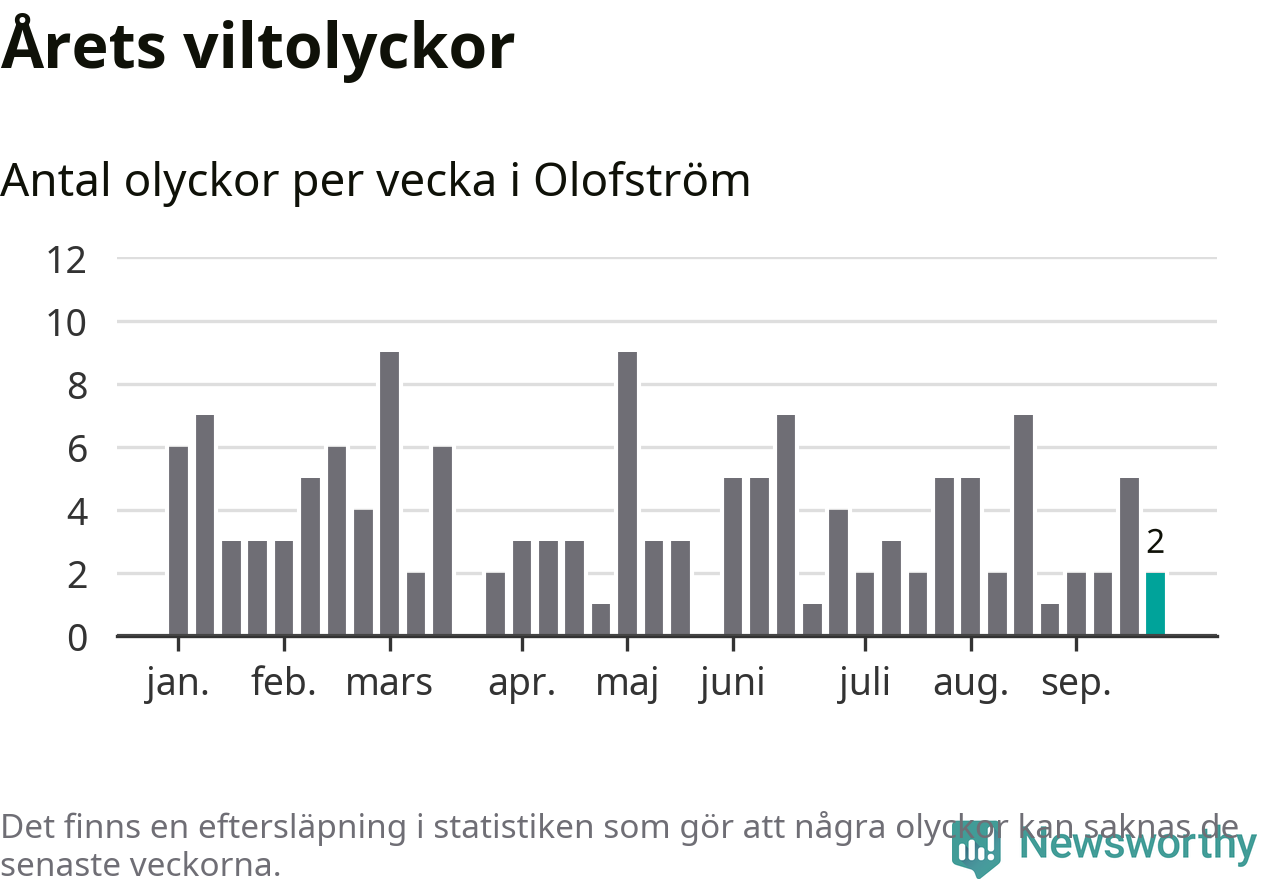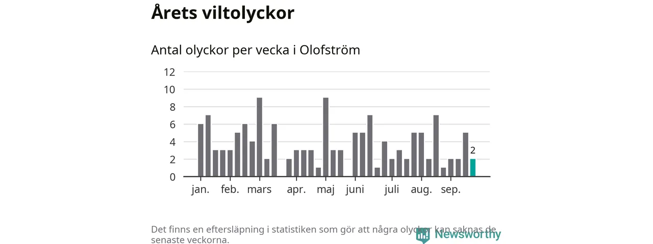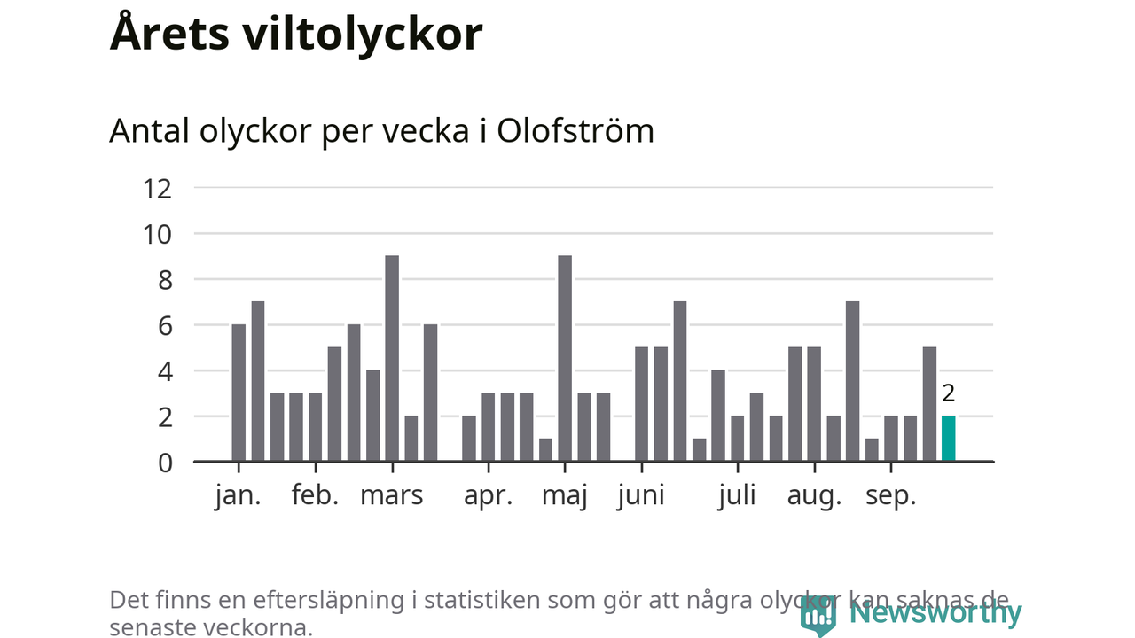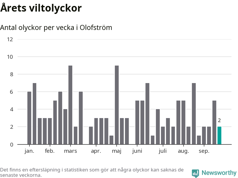 Hittills har två viltolyckor rapporterats in i Olofströms kommun från vecka 39. Se listan här.