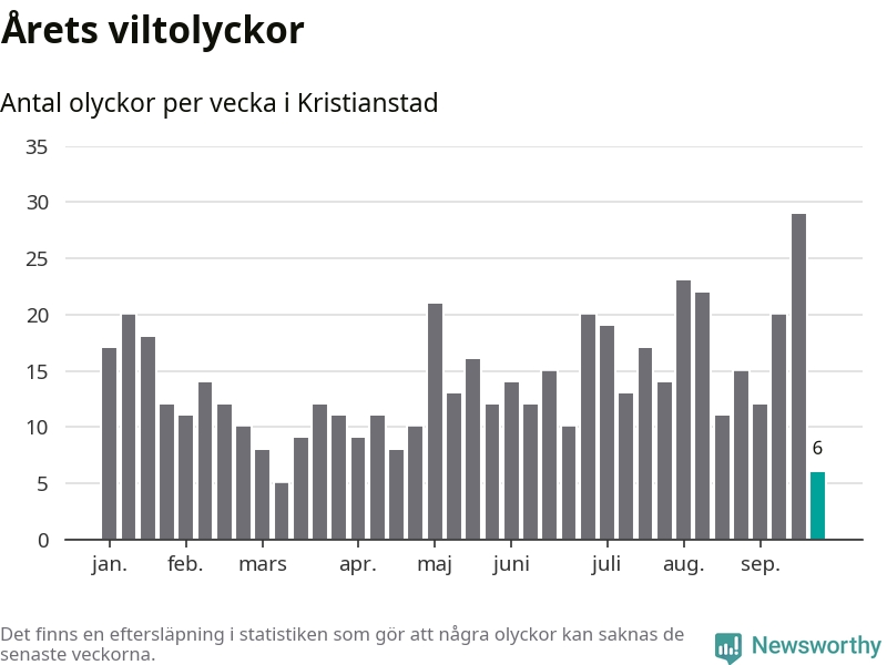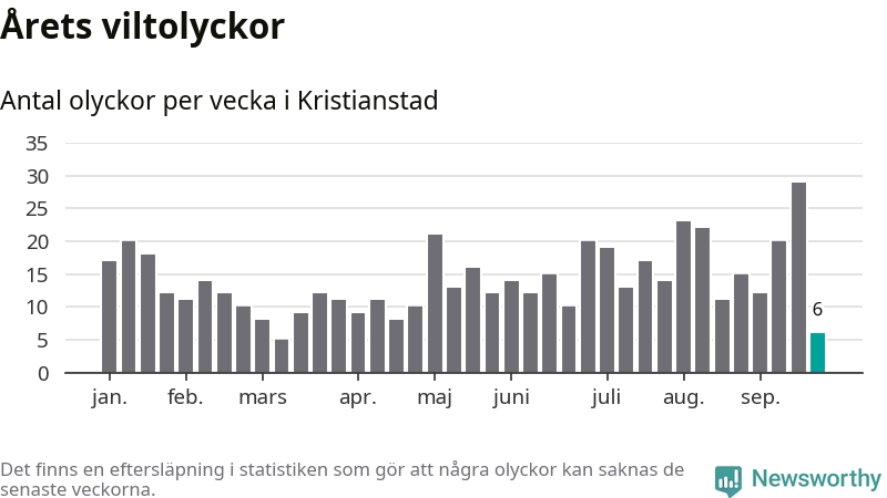 Totalt det här året har det inträffat 549 viltolyckor i kommunen. Det är en normal nivå i förhållande till hur det har sett ut under de senaste tio åren – genomsnittet för motsvarande period är 499.