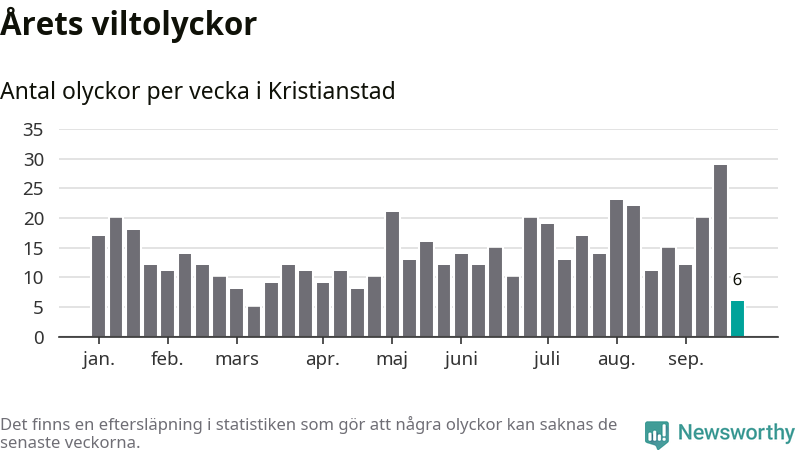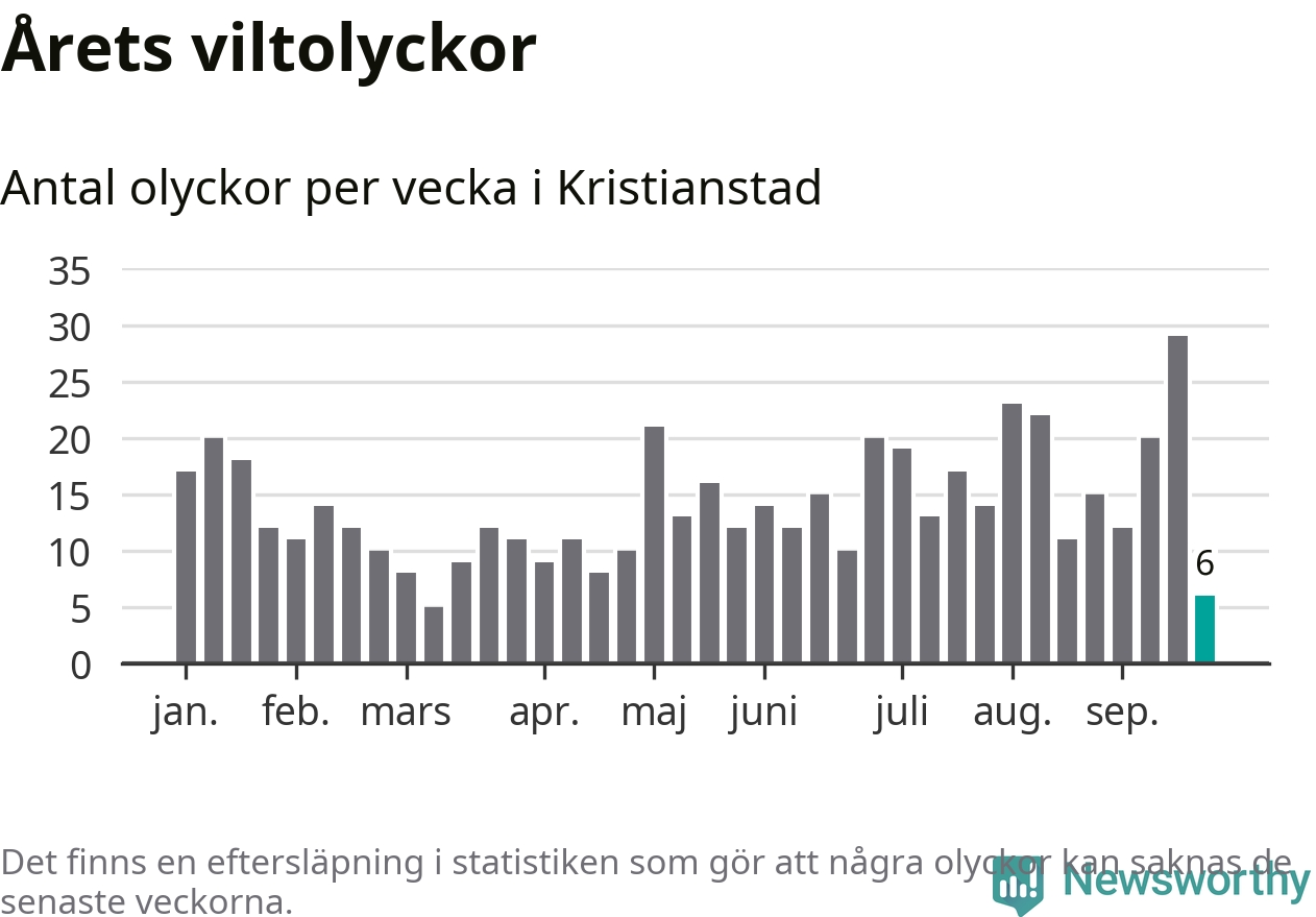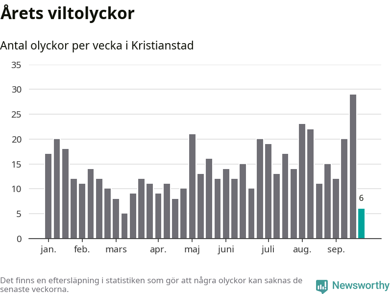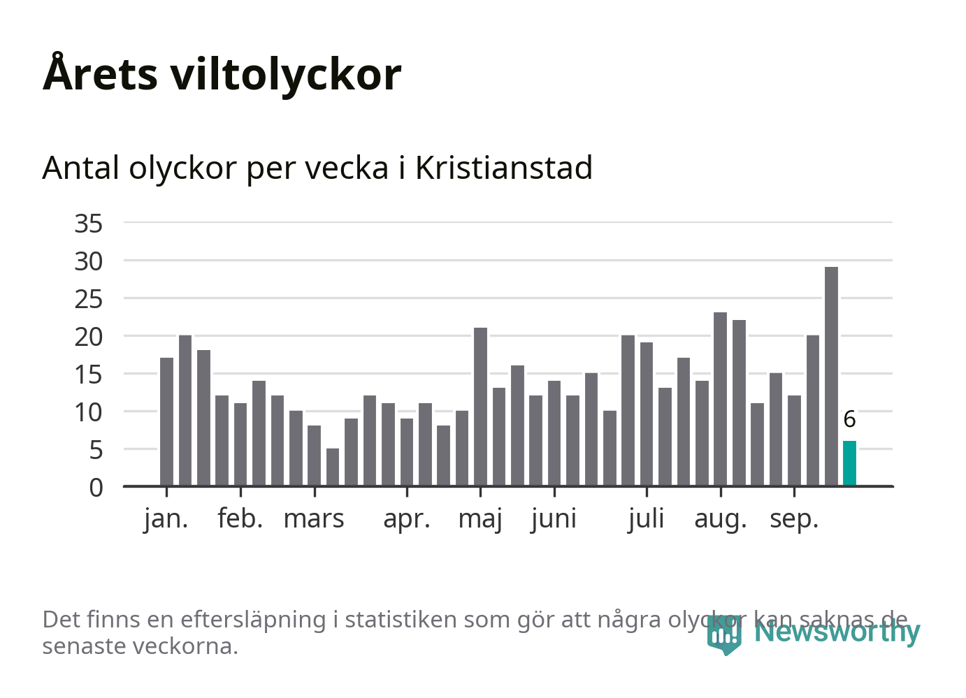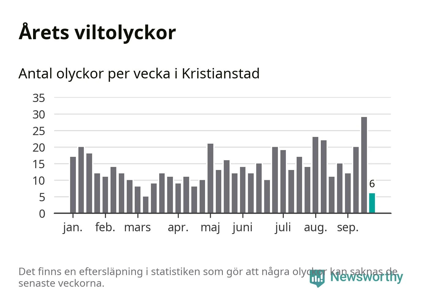 Hittills har sex viltolyckor rapporterats in i Kristianstads kommun från vecka 39. Se listan här.