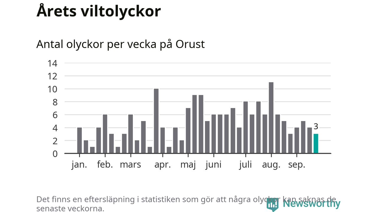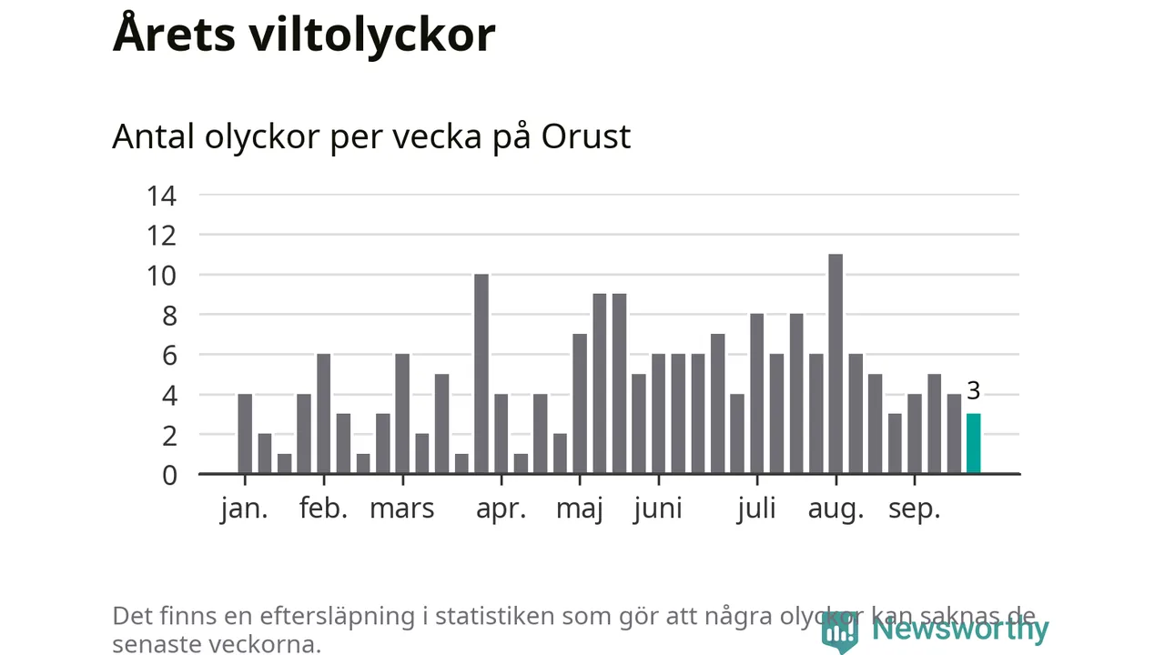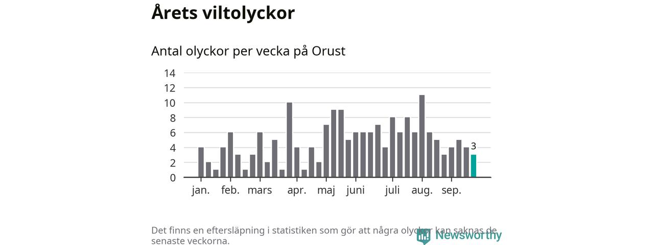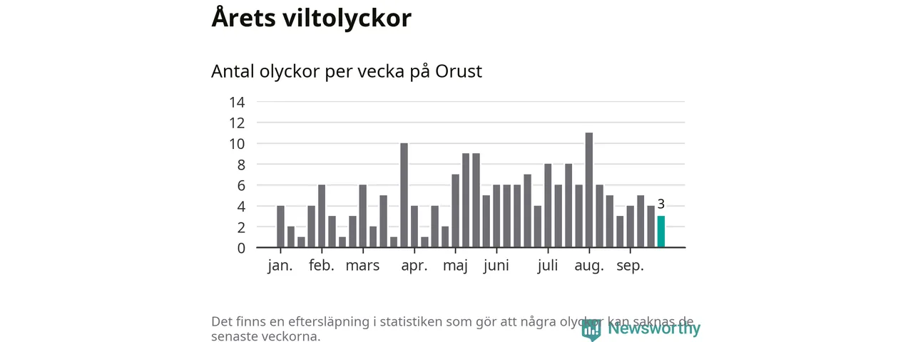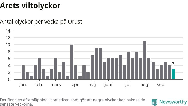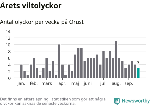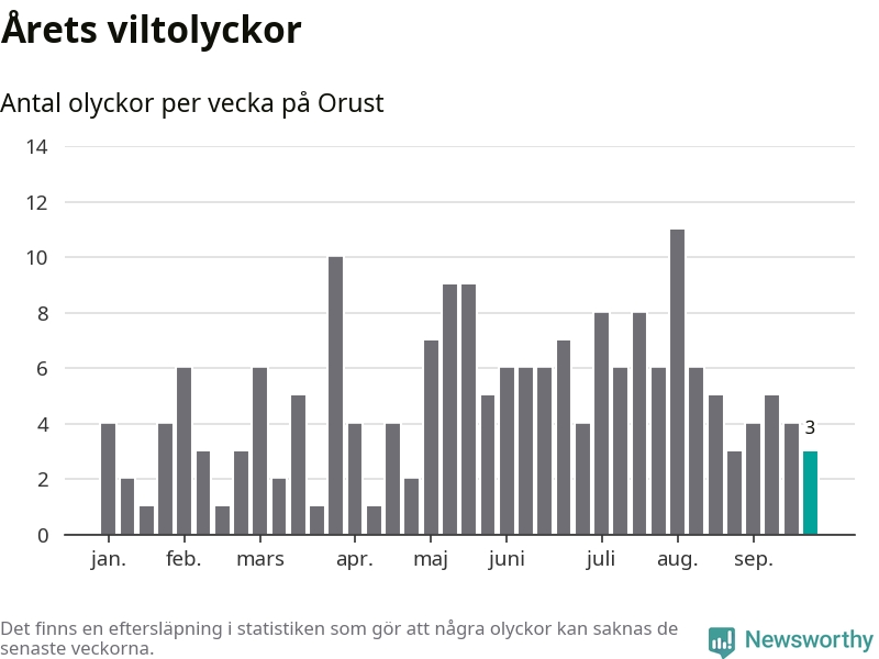 Hittills har tre viltolyckor rapporterats in i Orusts kommun från vecka 39. Se listan här.