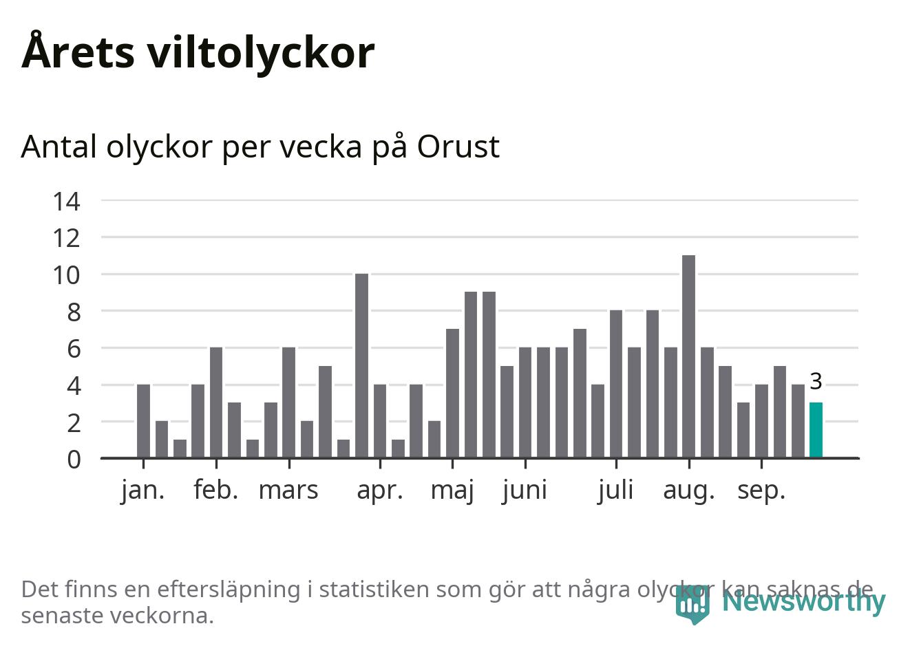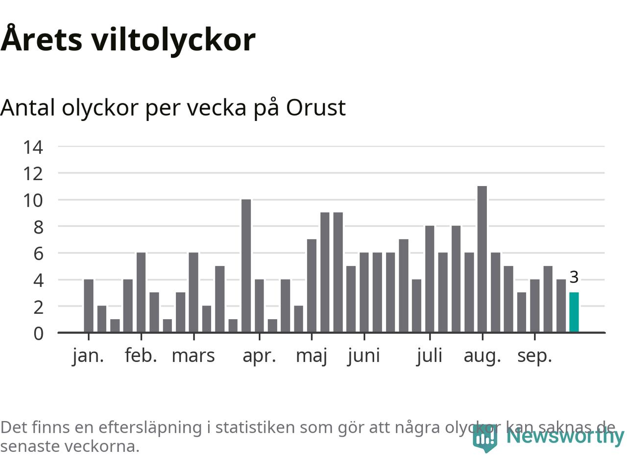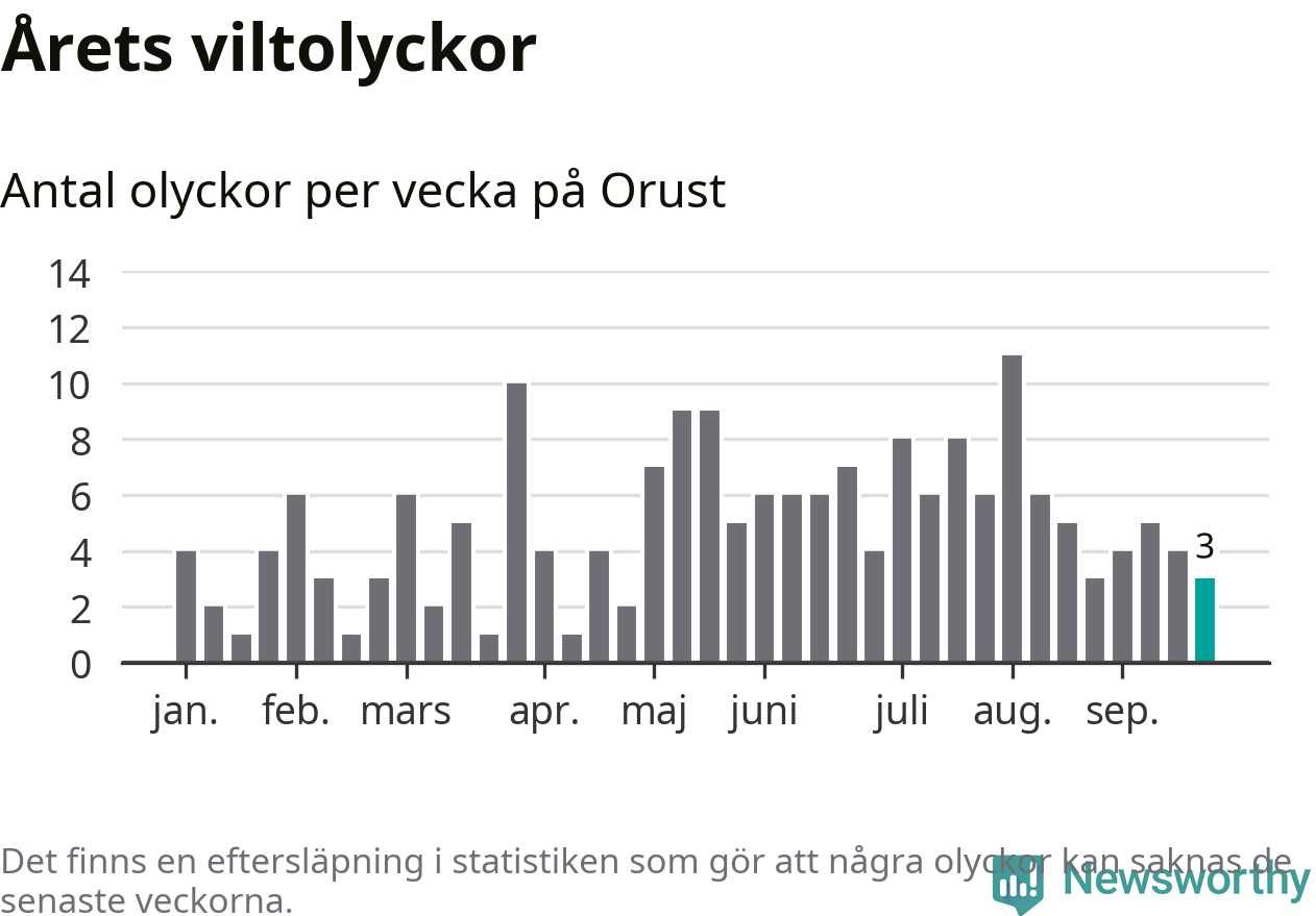 Hittills har tre viltolyckor rapporterats in i Orusts kommun från vecka 39. Se listan här.