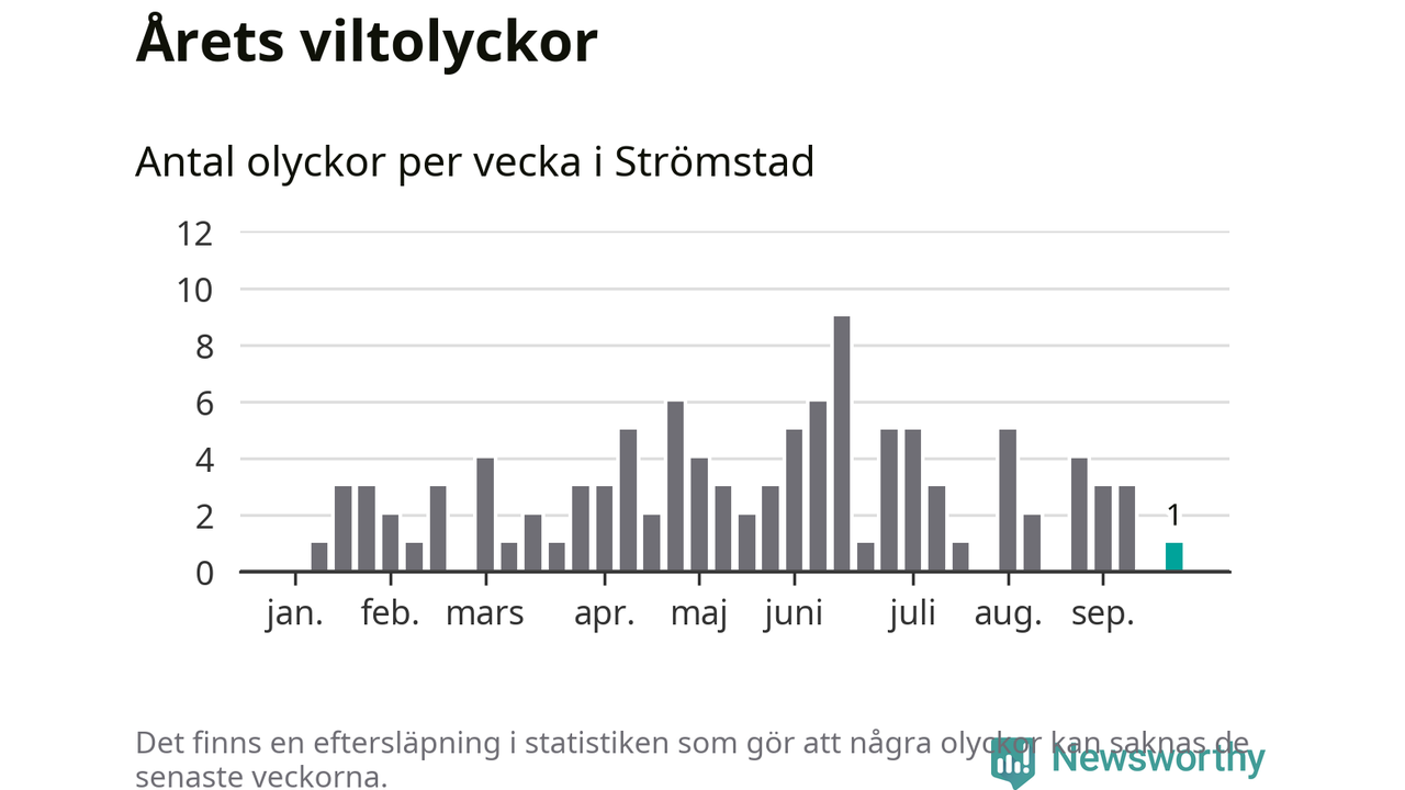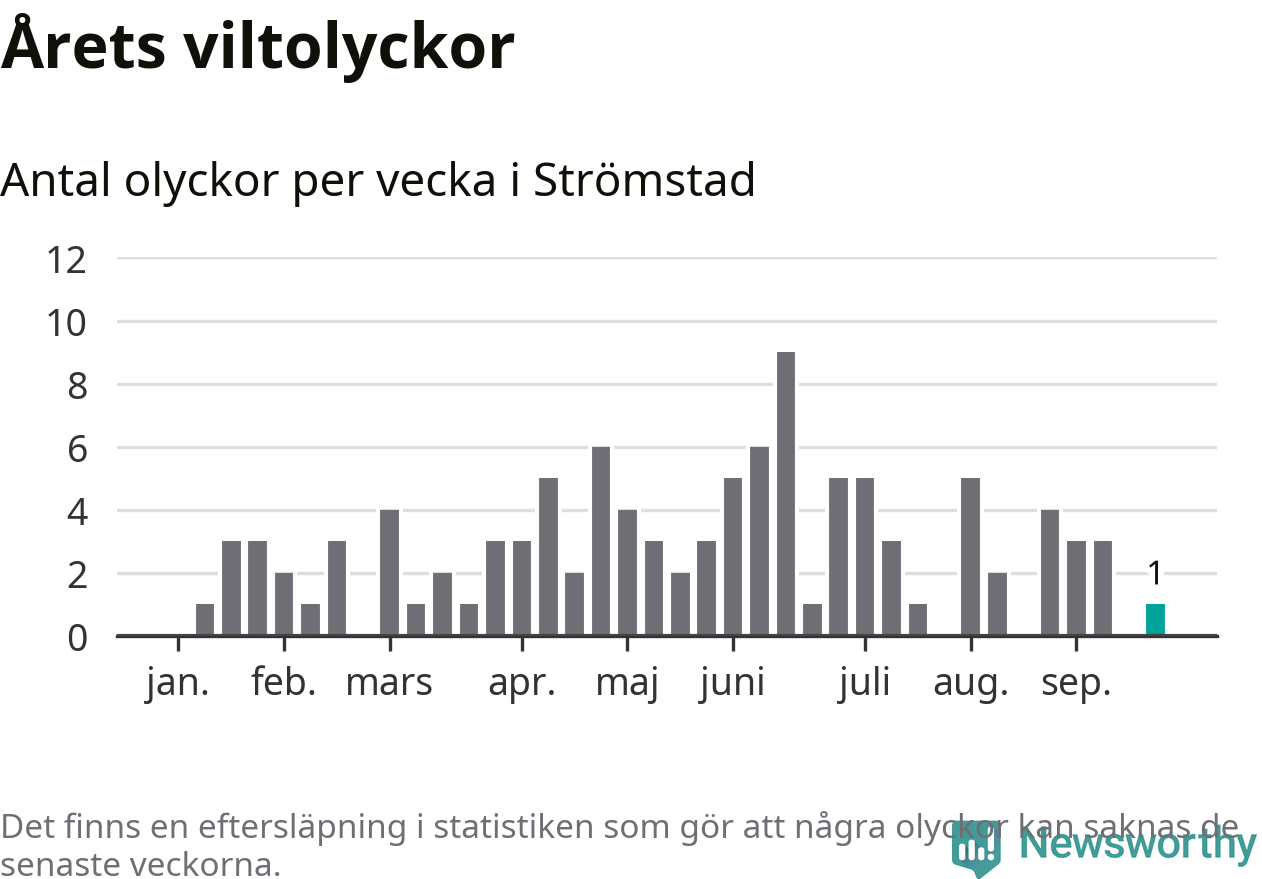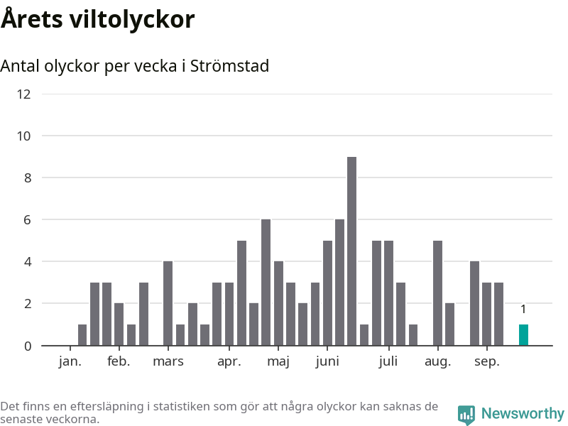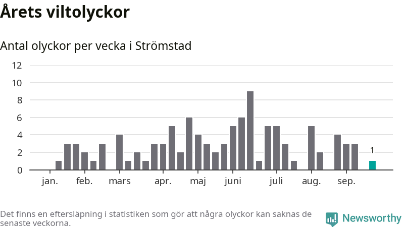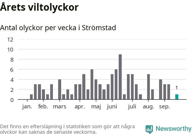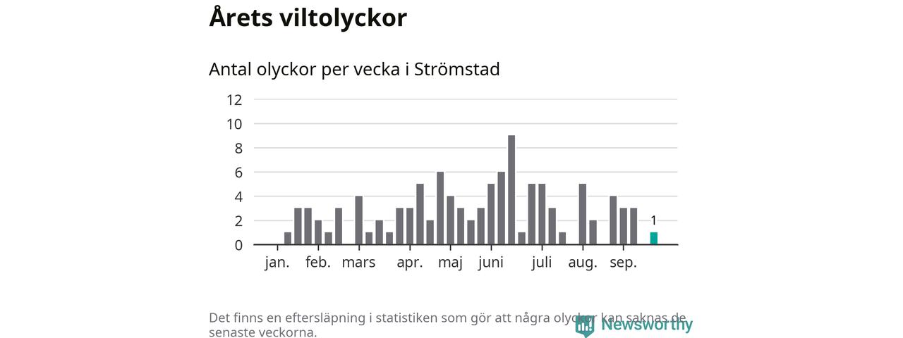 Från förra veckan (vecka 39) har hittills en viltolycka rapporterats in i Strömstads kommun.