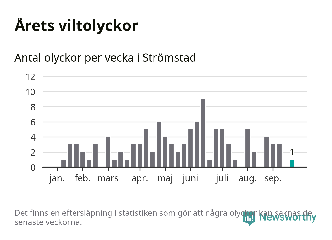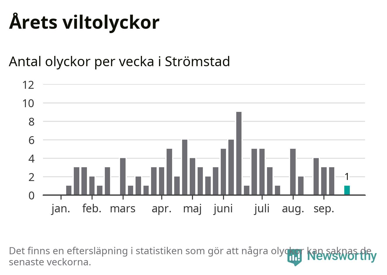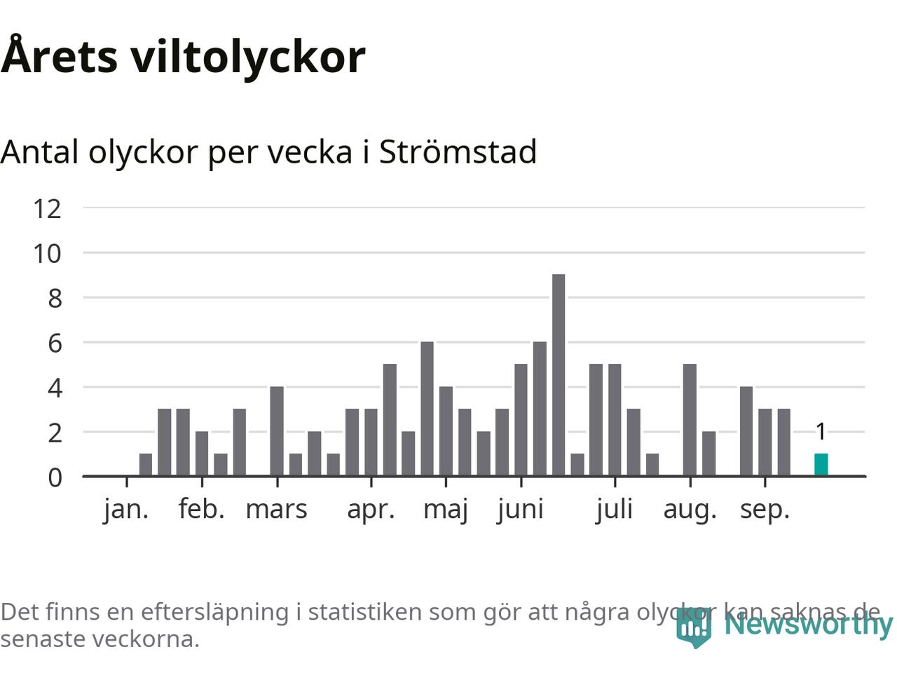 Från förra veckan (vecka 39) har hittills en viltolycka rapporterats in i Strömstads kommun.