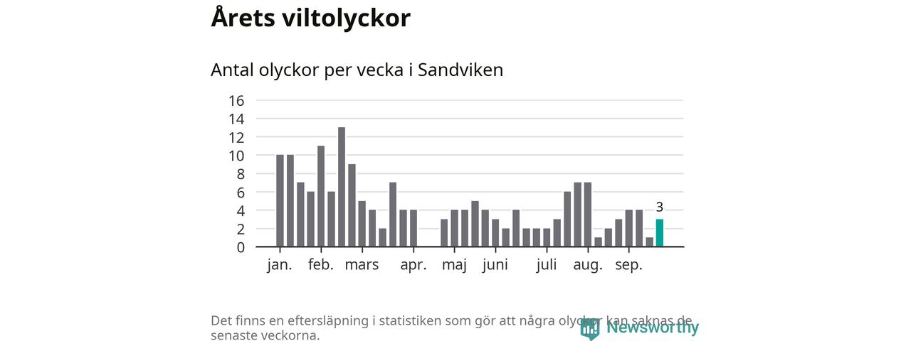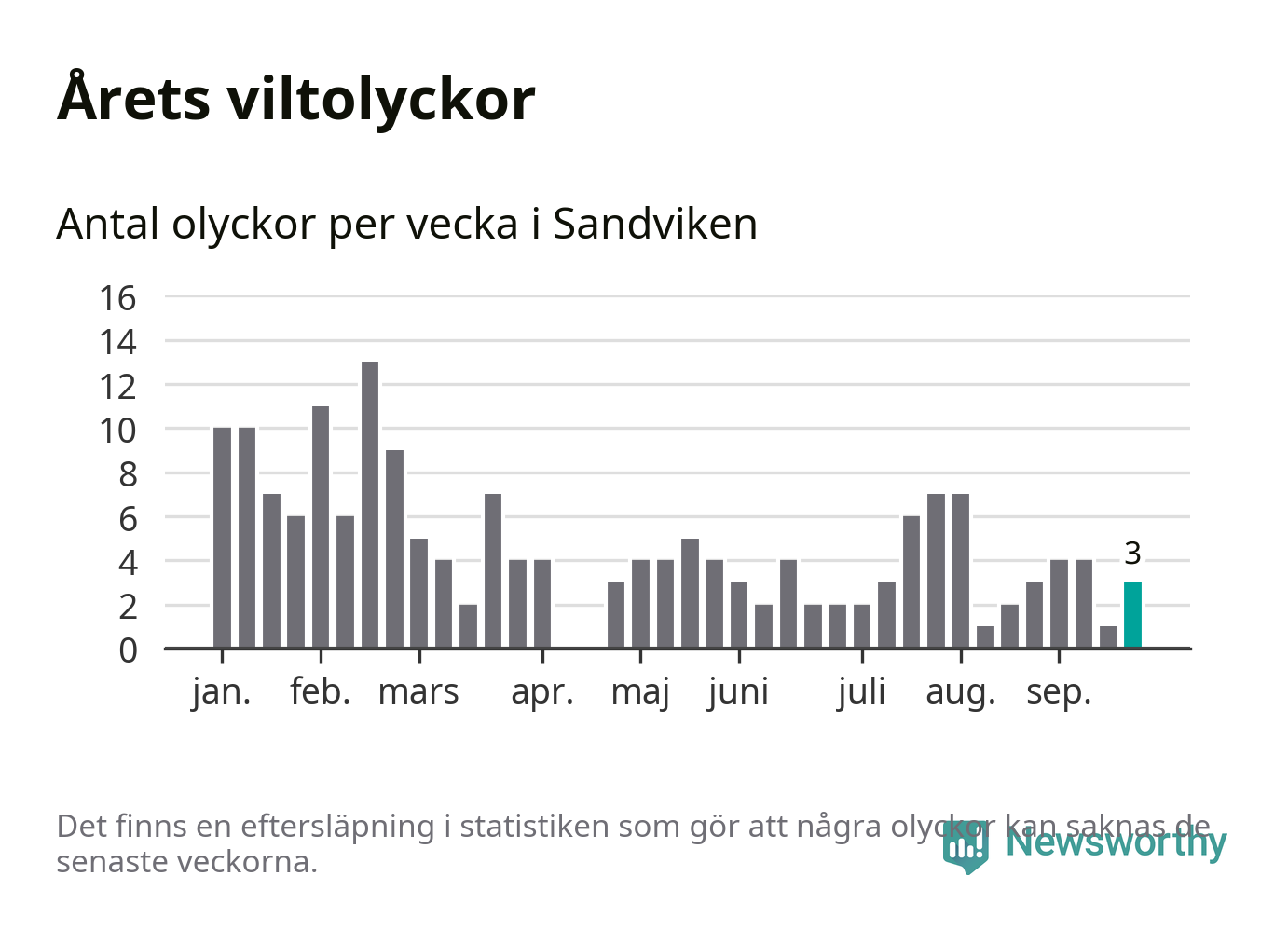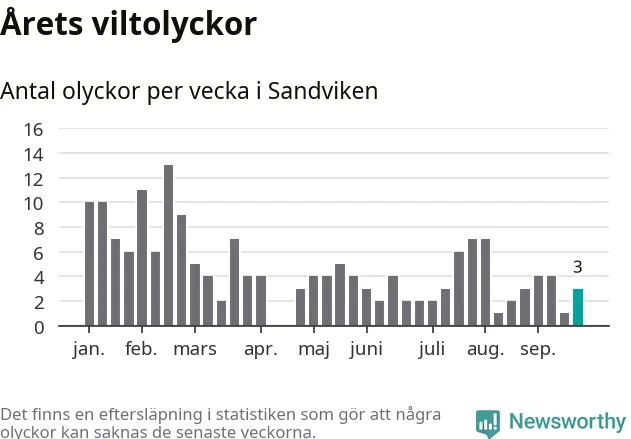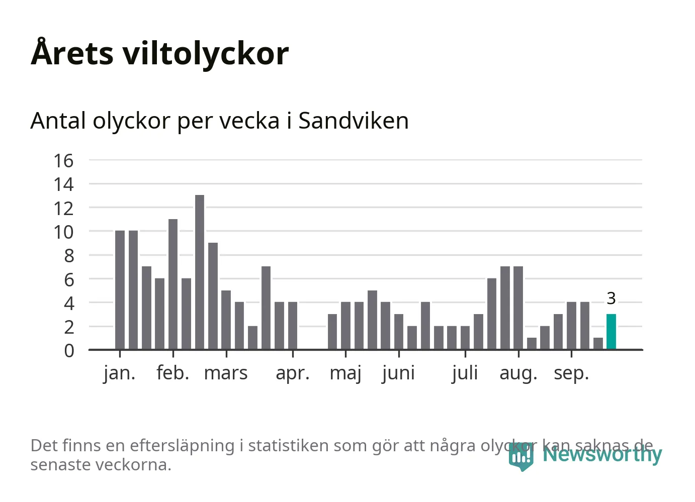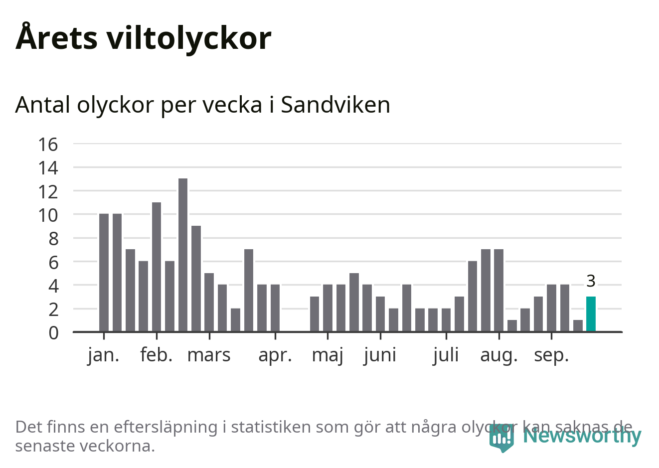 Hittills har tre viltolyckor rapporterats in i Sandvikens kommun från vecka 39. Se listan här.
