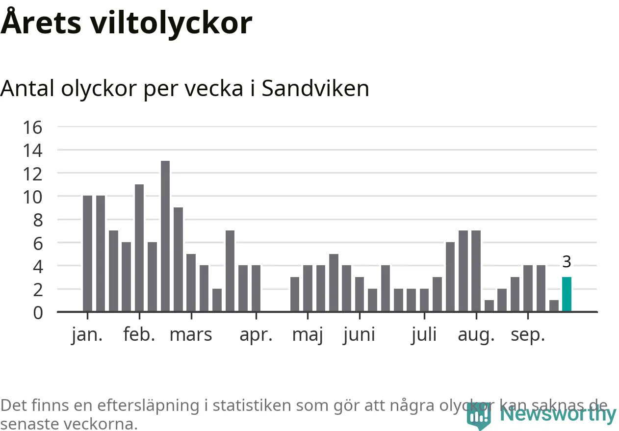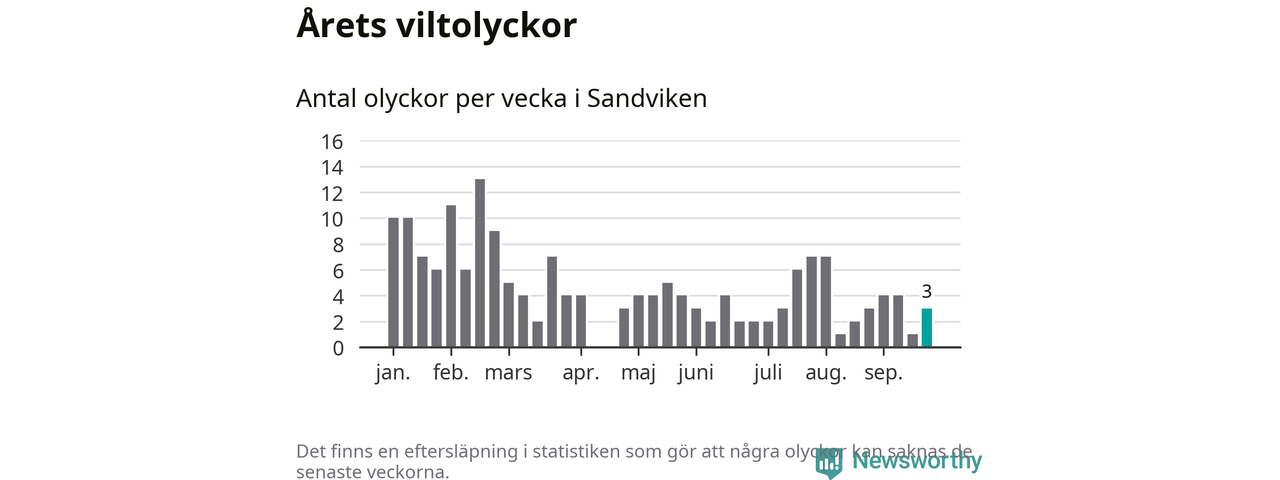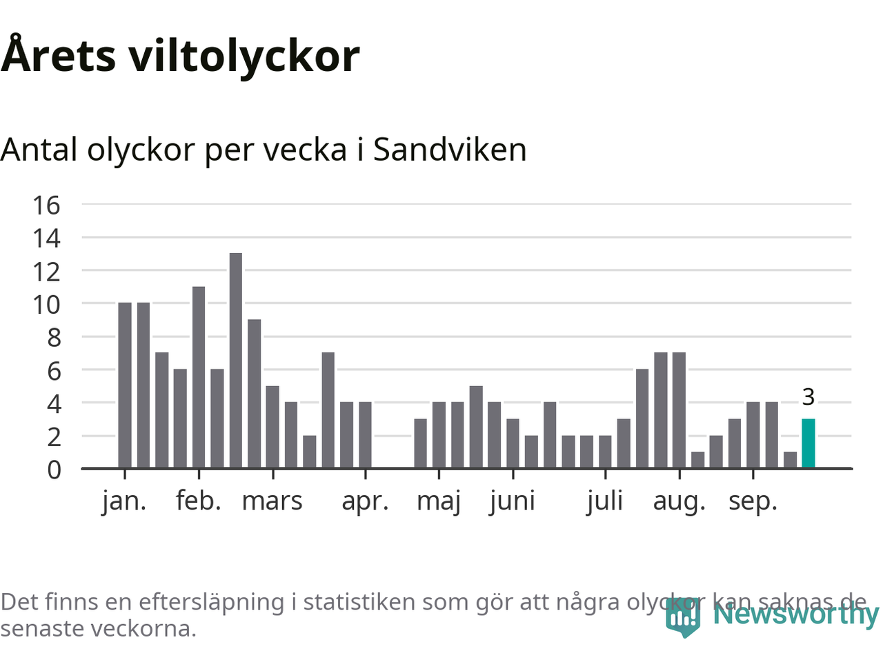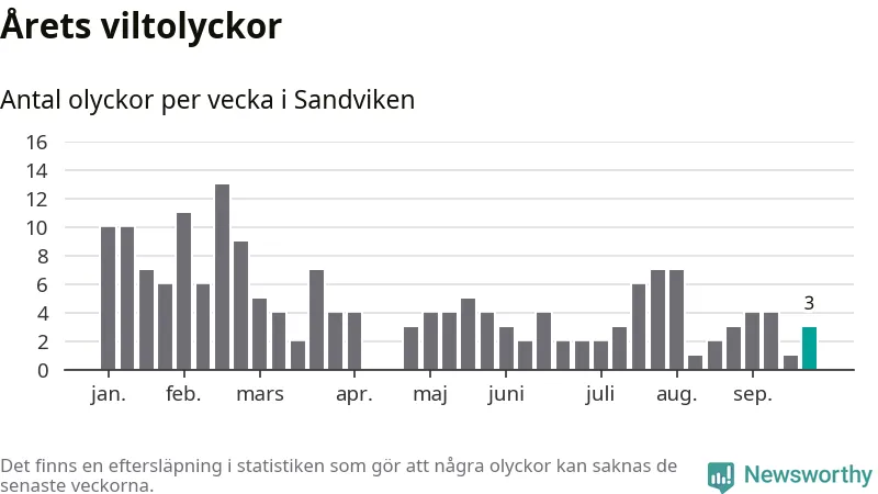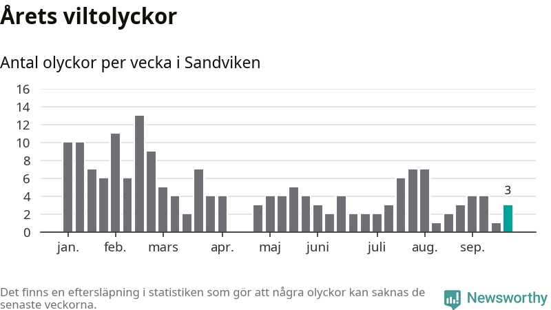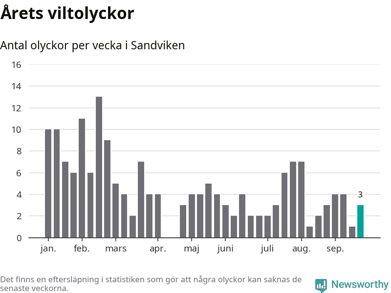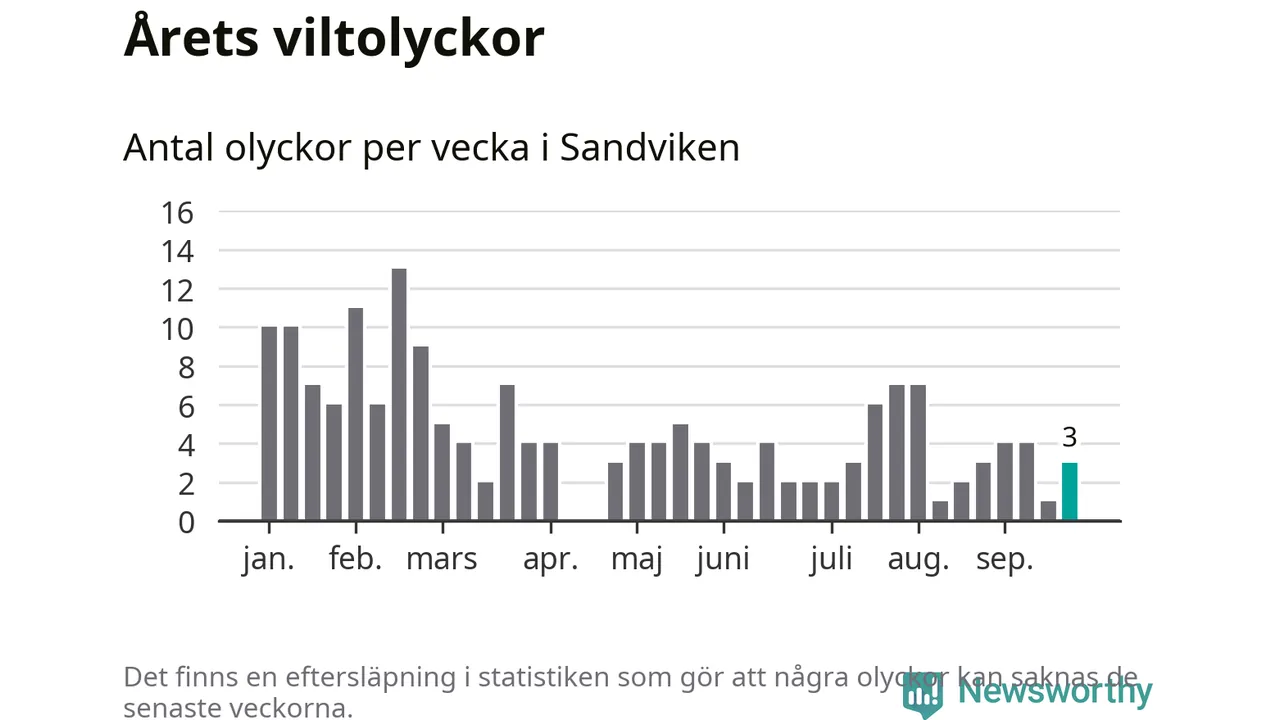 Hittills har tre viltolyckor rapporterats in i Sandvikens kommun från vecka 39. Se listan här.