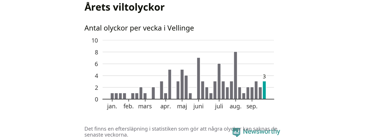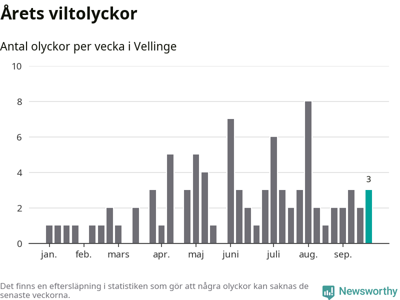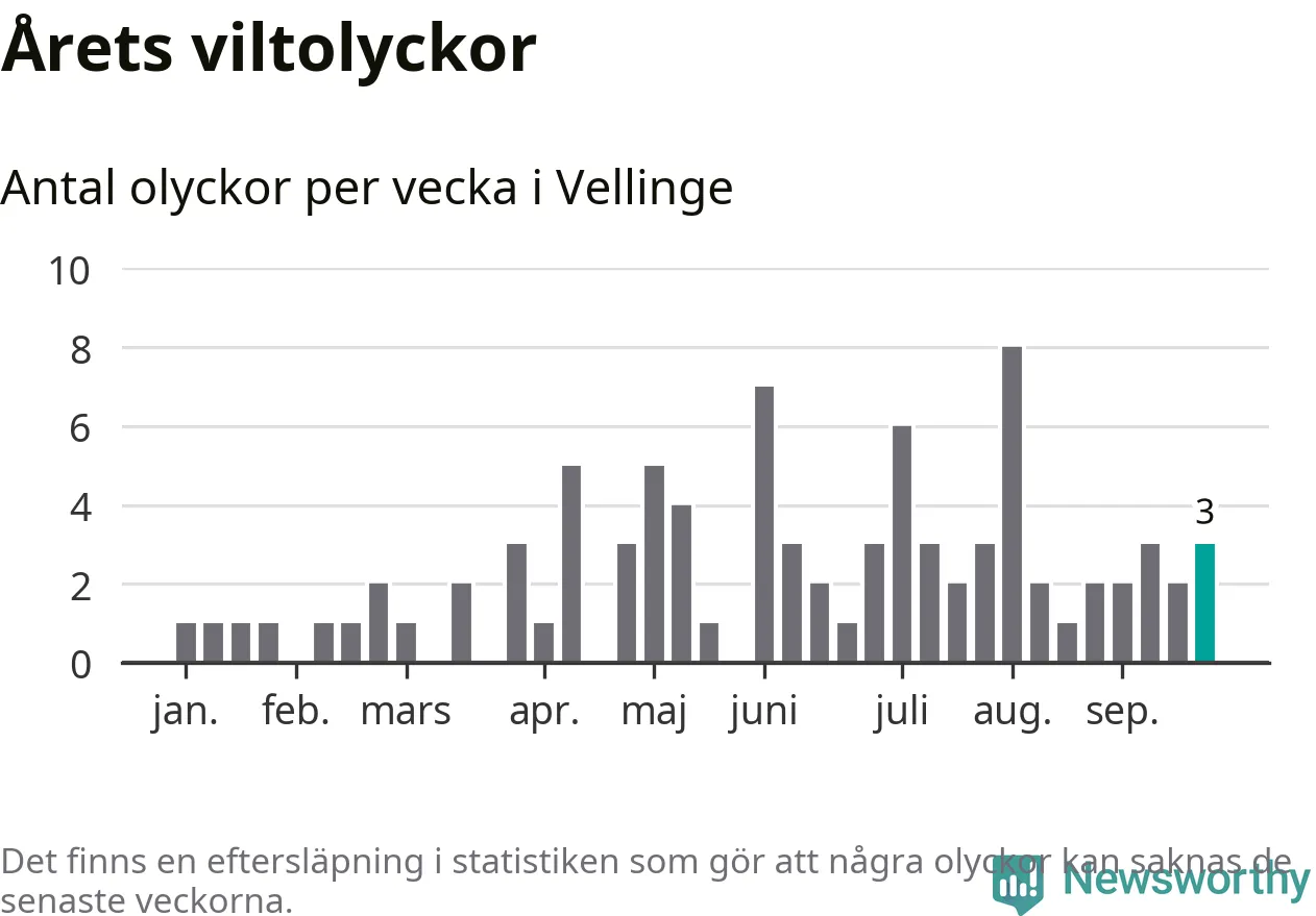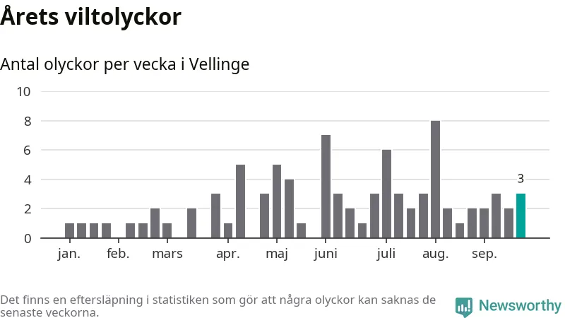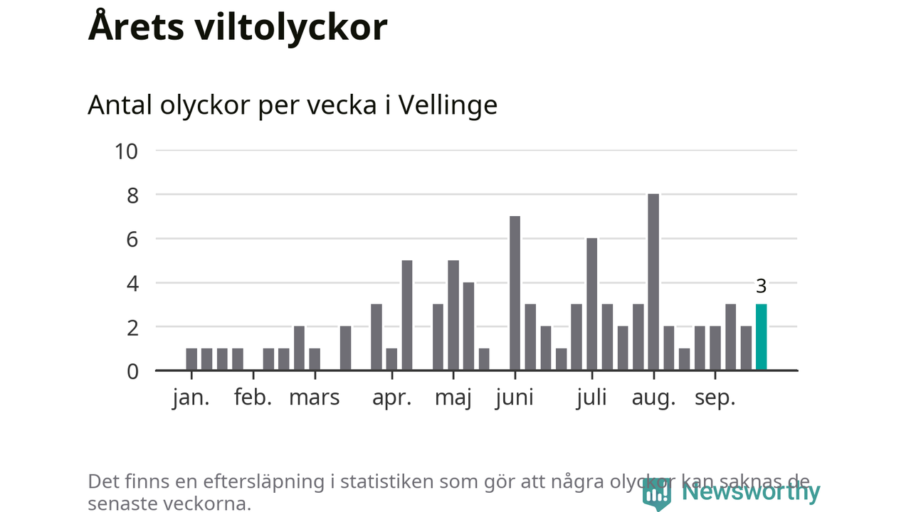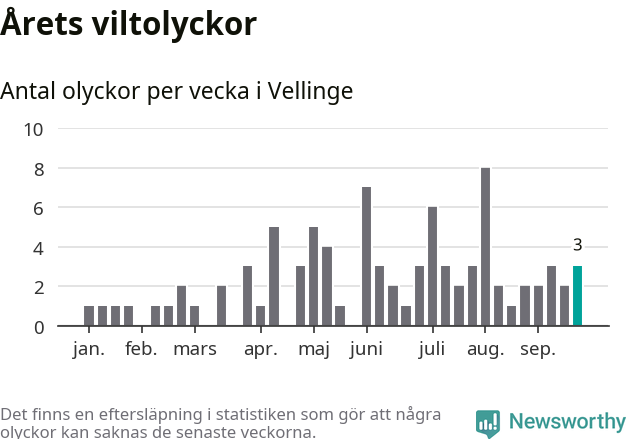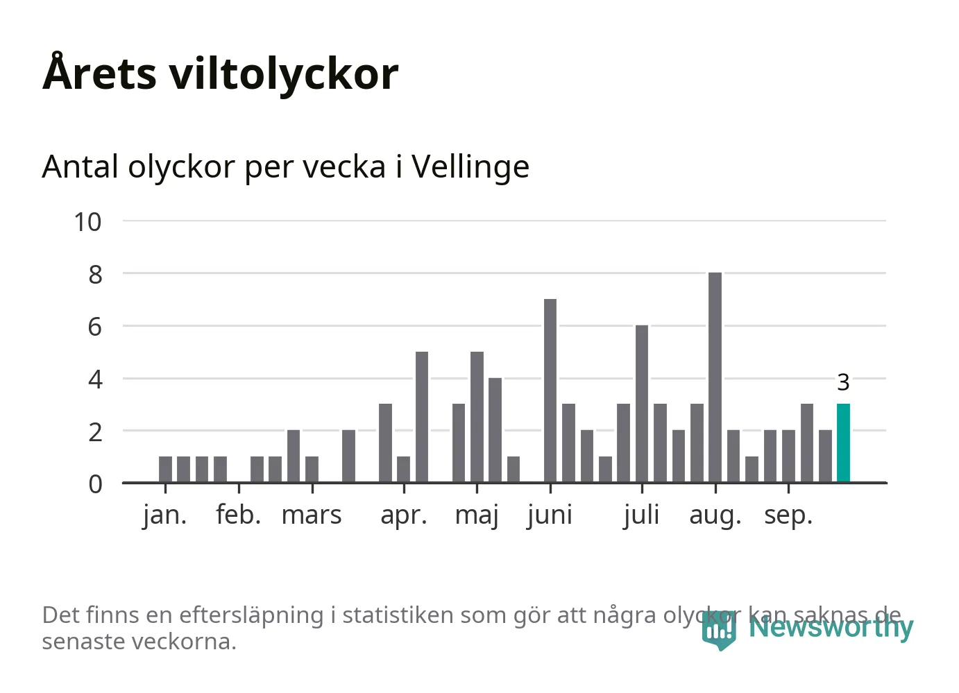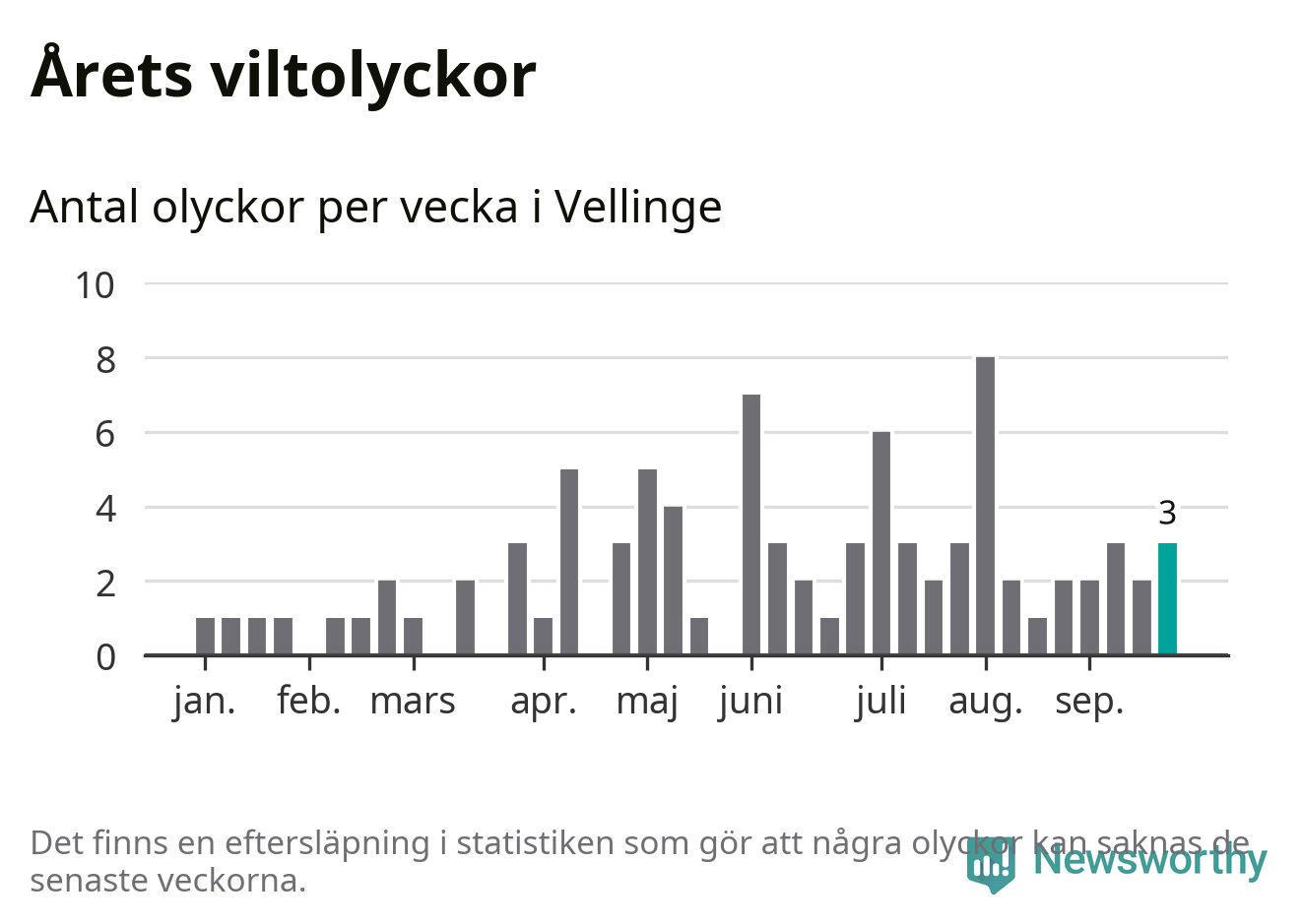 Hittills har tre viltolyckor rapporterats in i Vellinge kommun från vecka 39. Se listan här.