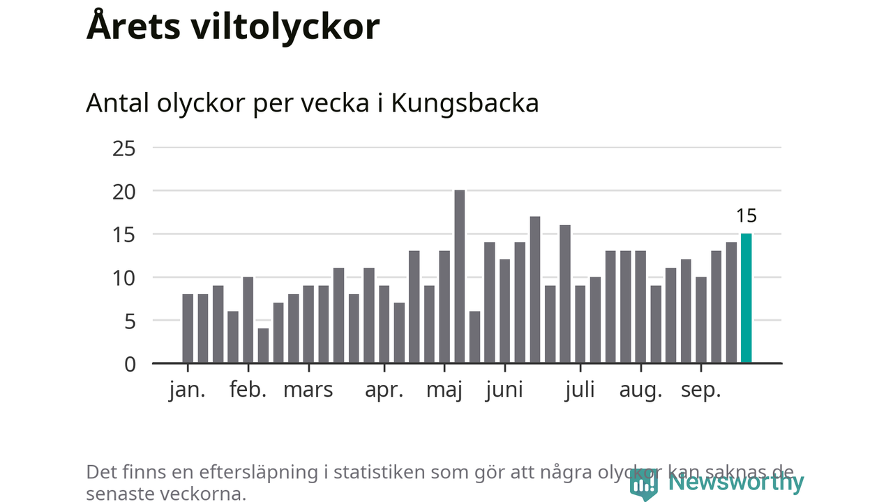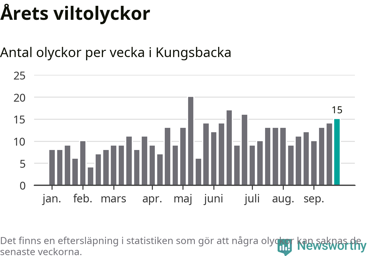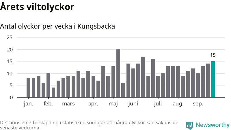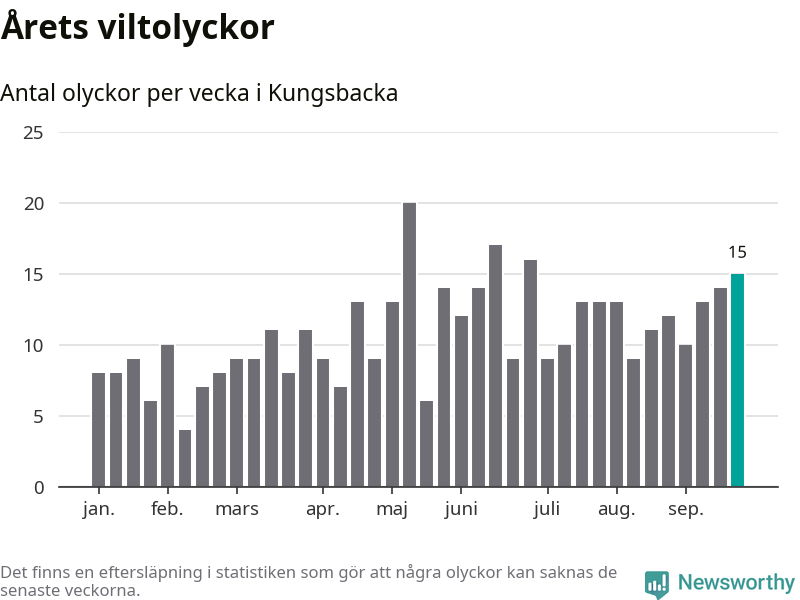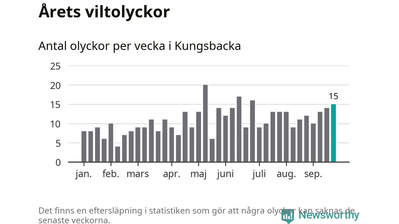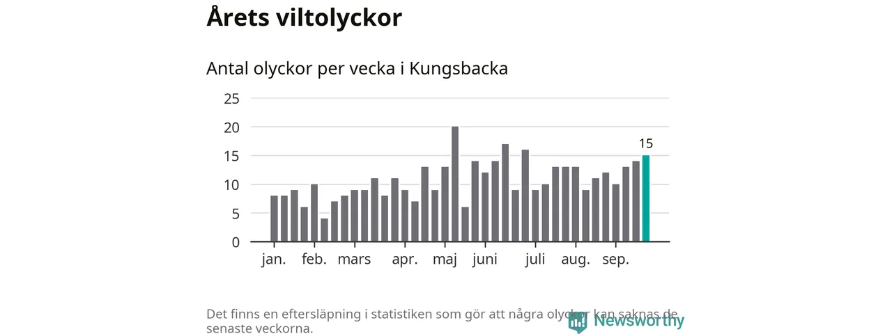Hittills har 15 viltolyckor rapporterats in i Kungsbacka kommun från vecka 39. Se listan här.