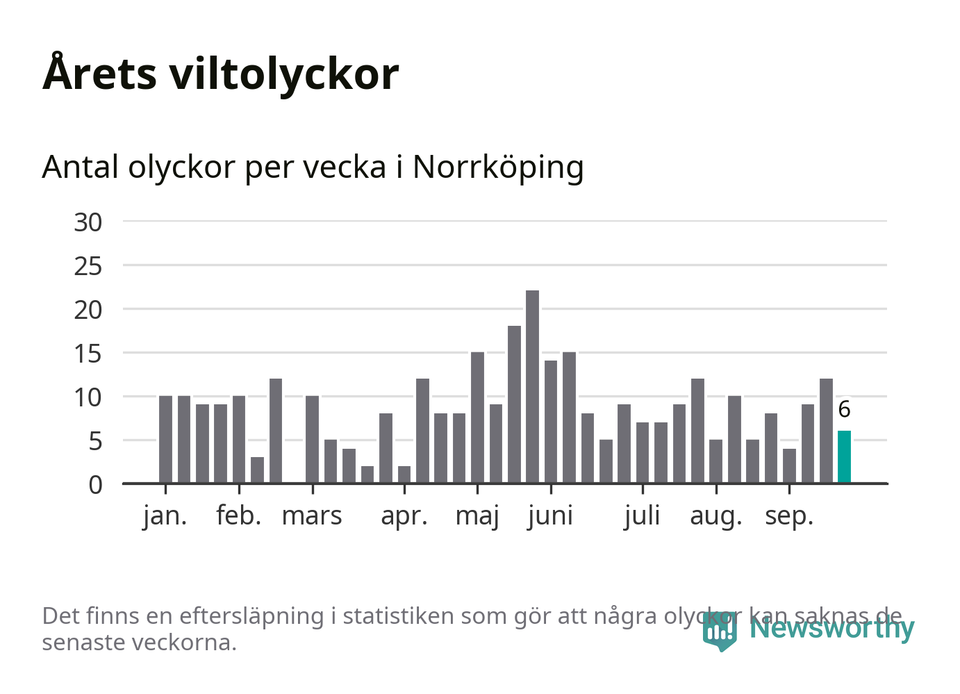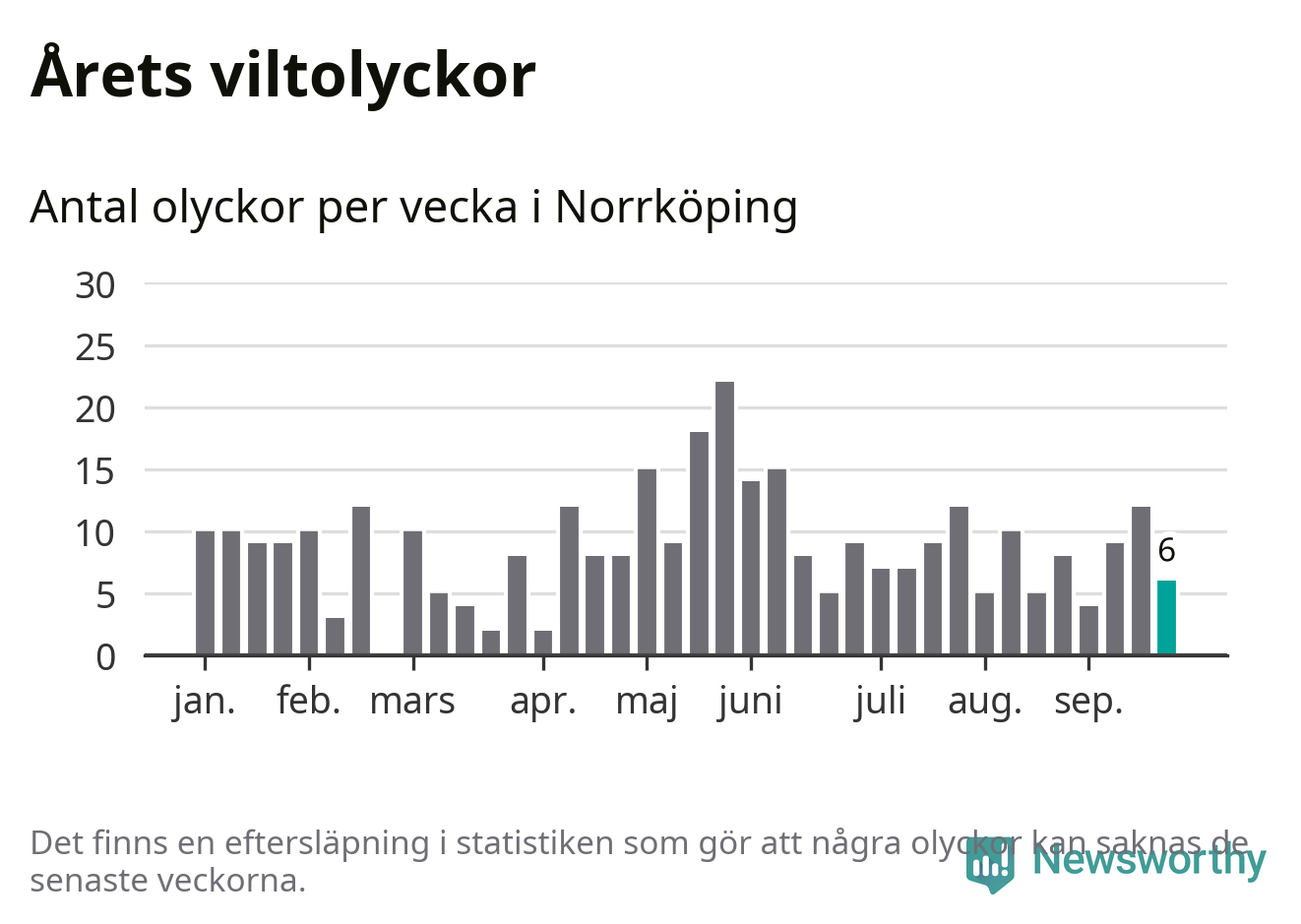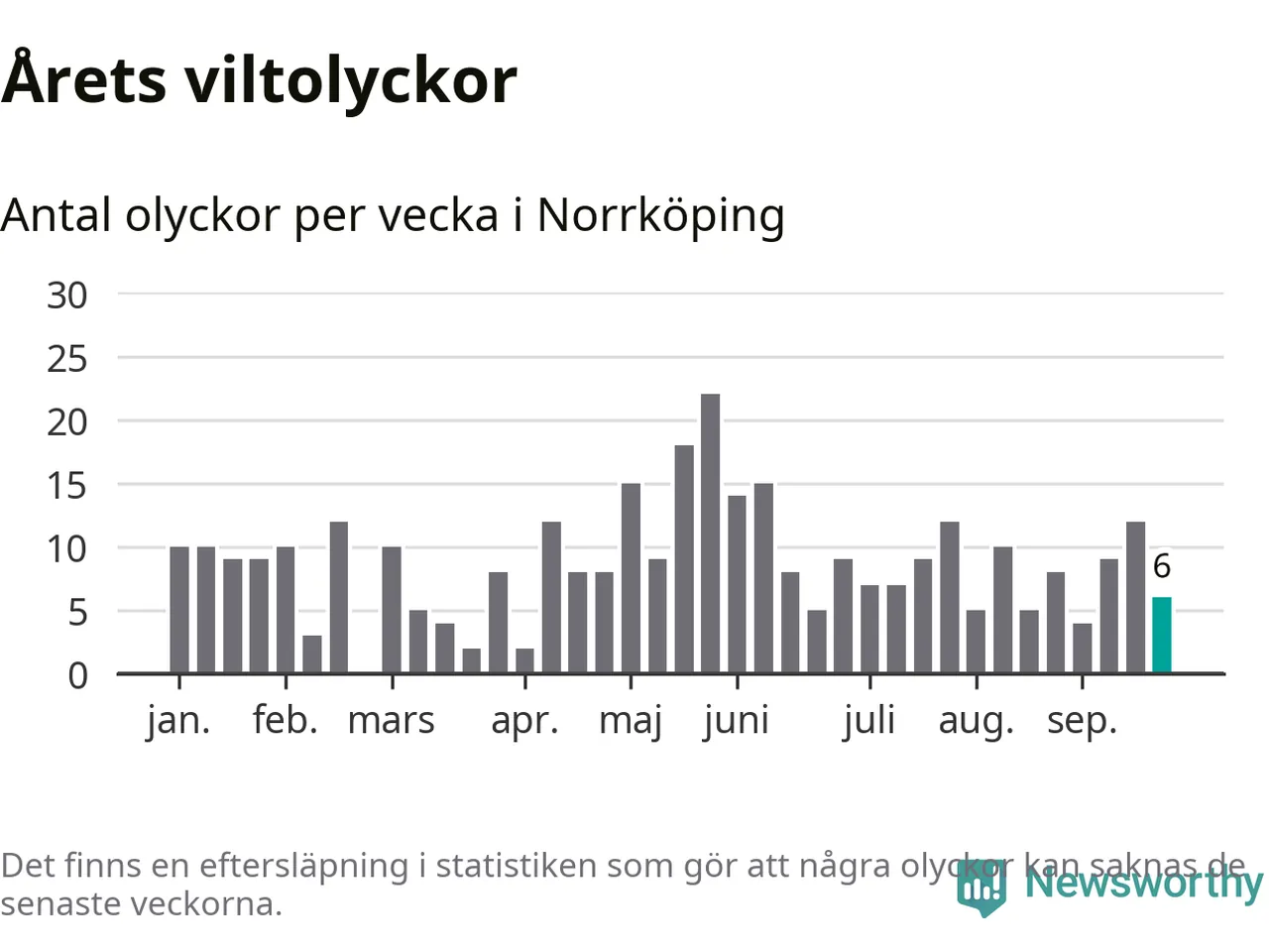 Hittills har sex viltolyckor rapporterats in i Norrköpings kommun från vecka 39. Se listan här.