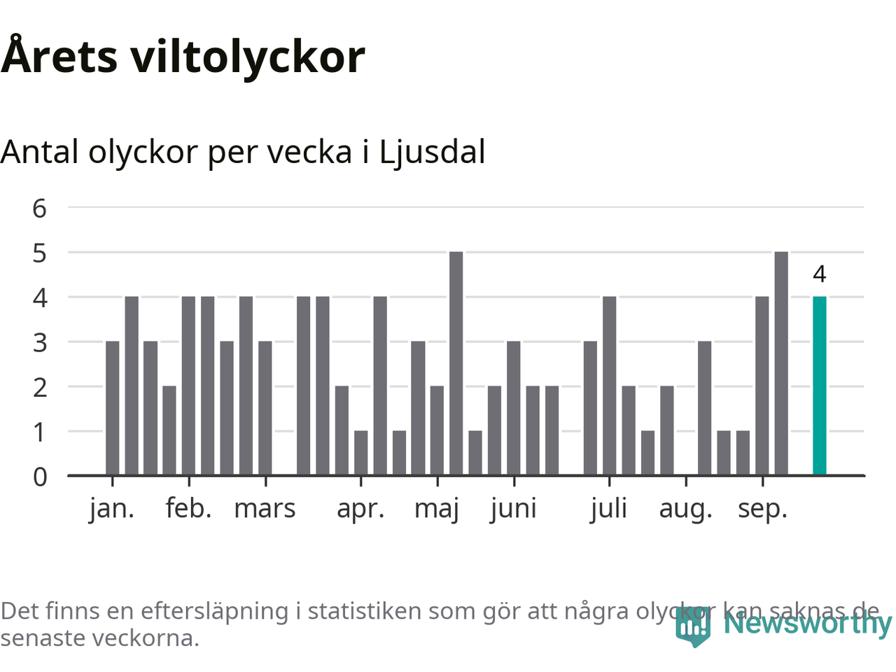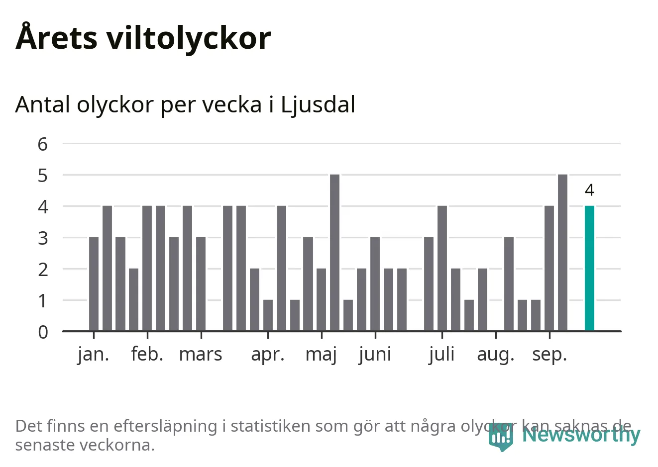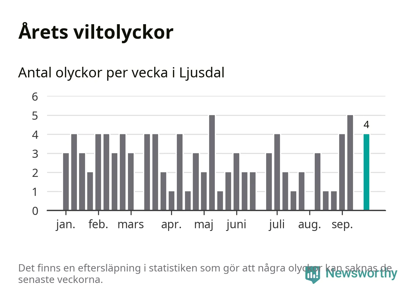 Hittills har fyra viltolyckor rapporterats in i Ljusdals kommun från vecka 39. Se listan här.