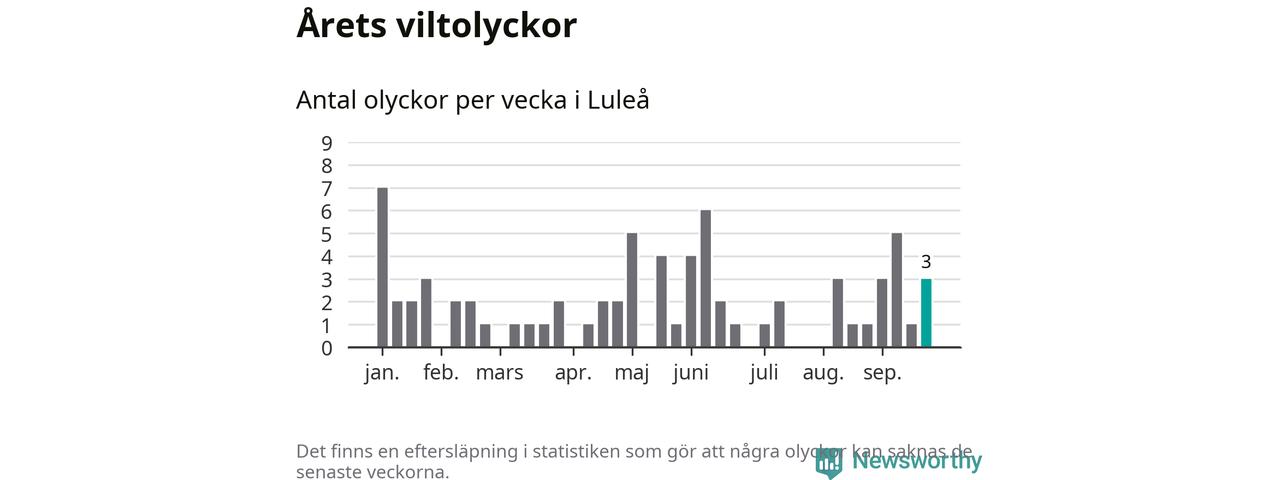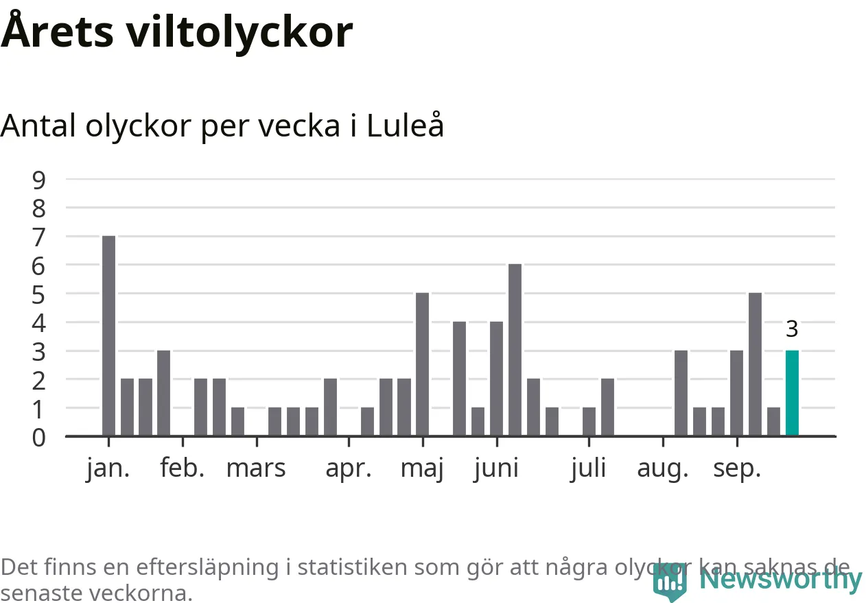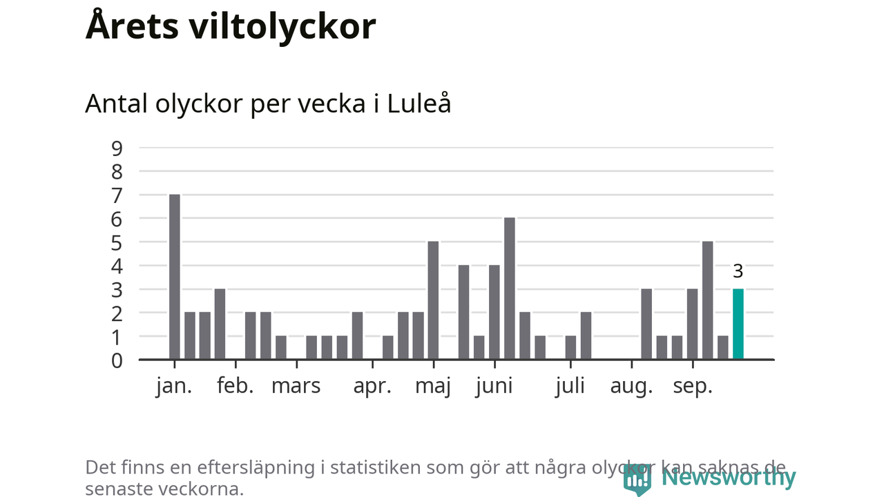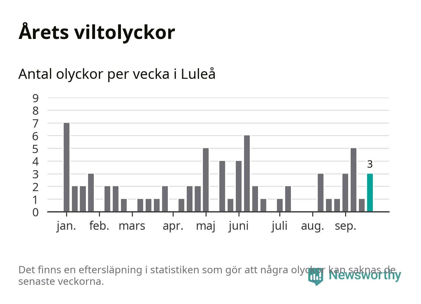Hittills har tre viltolyckor rapporterats in i Luleå kommun från vecka 39. Se listan här.