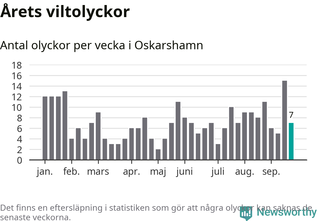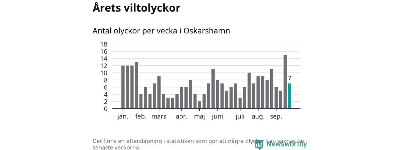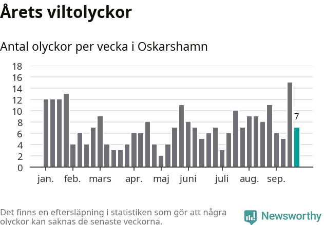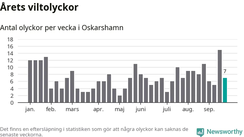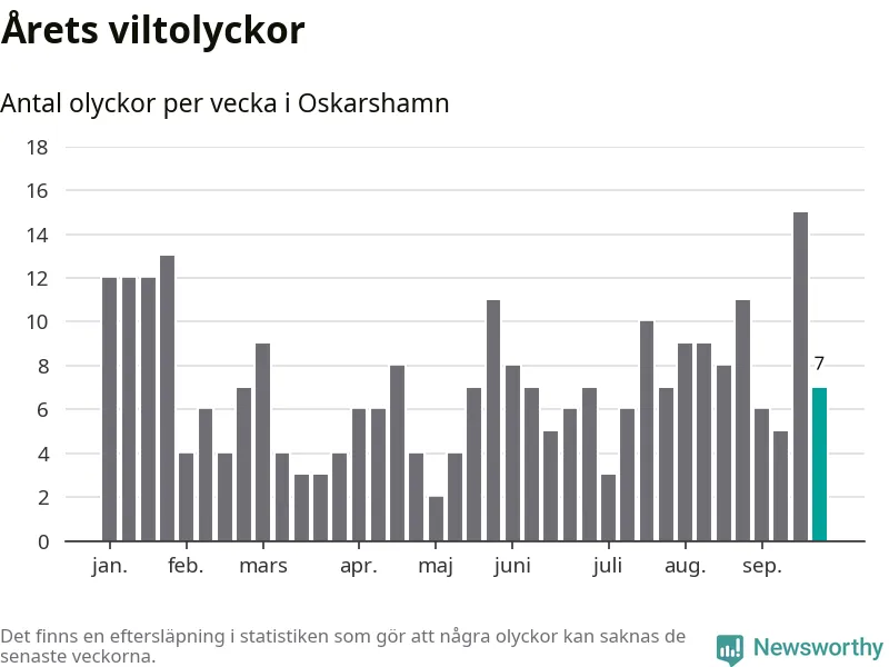 Hittills har sju viltolyckor rapporterats in i Oskarshamns kommun från vecka 39. Se listan här.