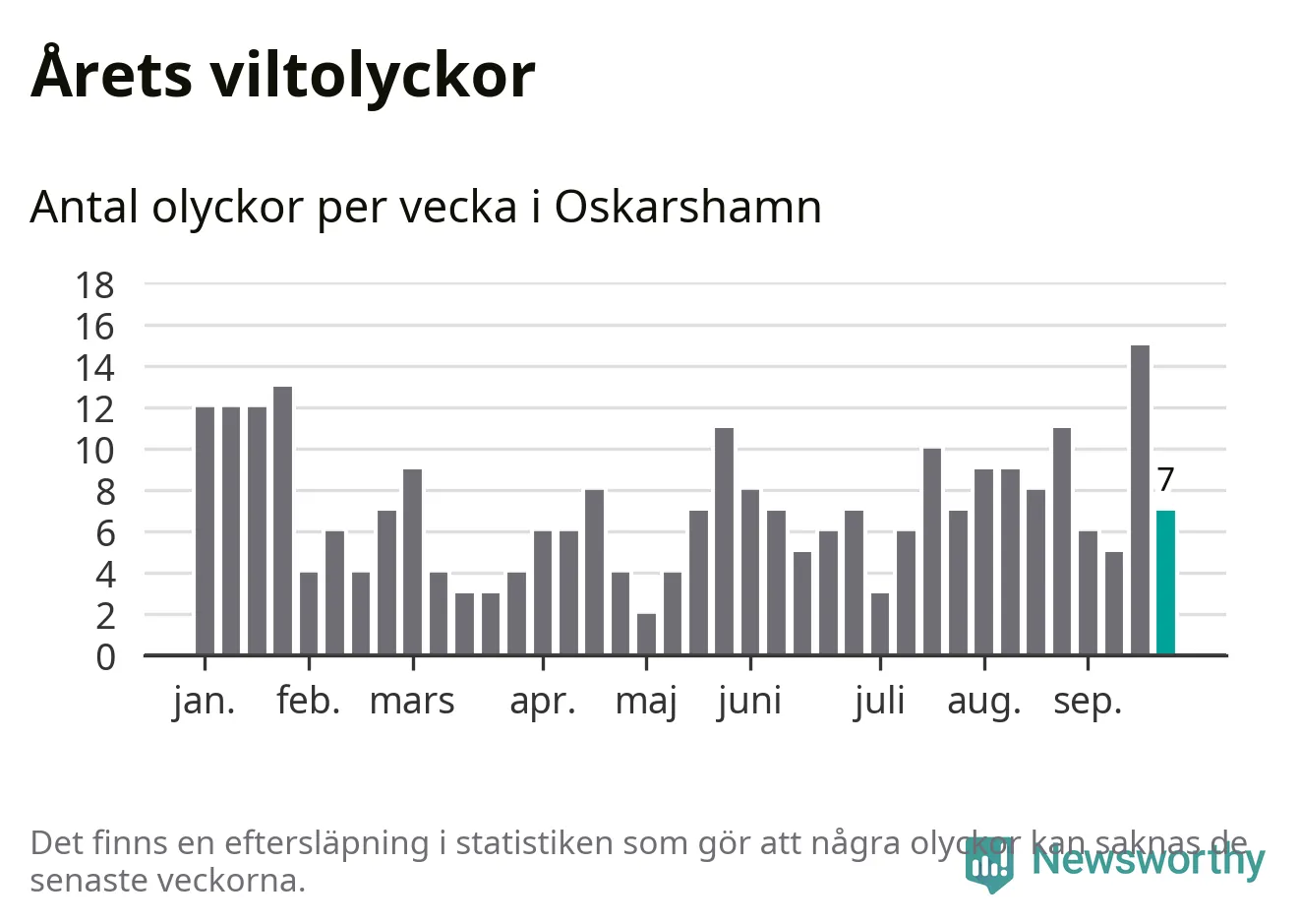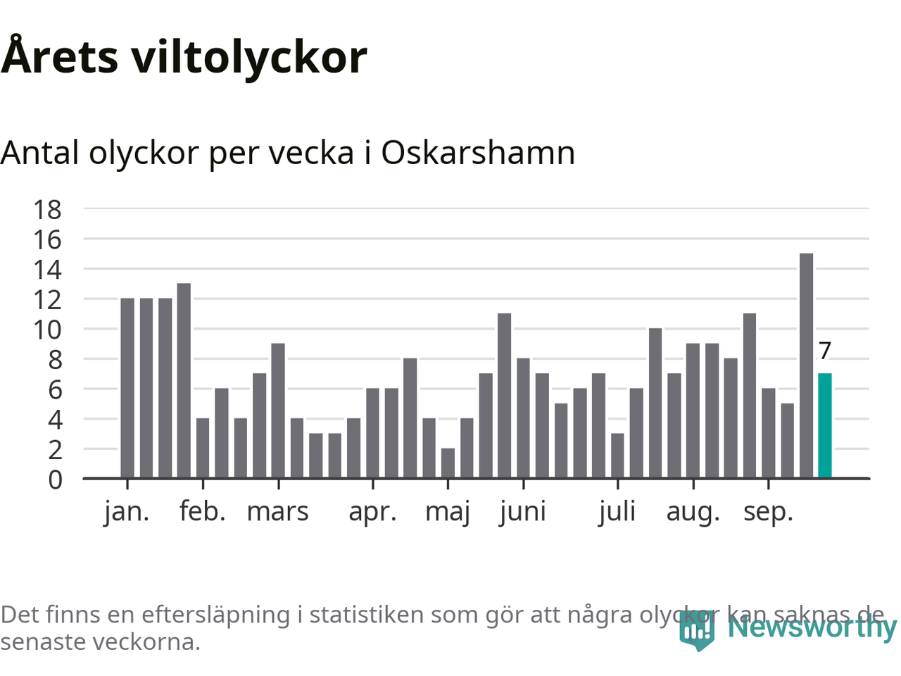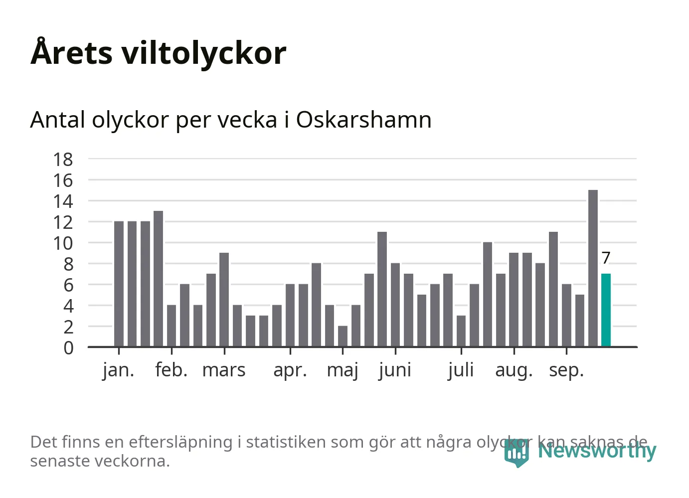 Hittills har sju viltolyckor rapporterats in i Oskarshamns kommun från vecka 39. Se listan här.