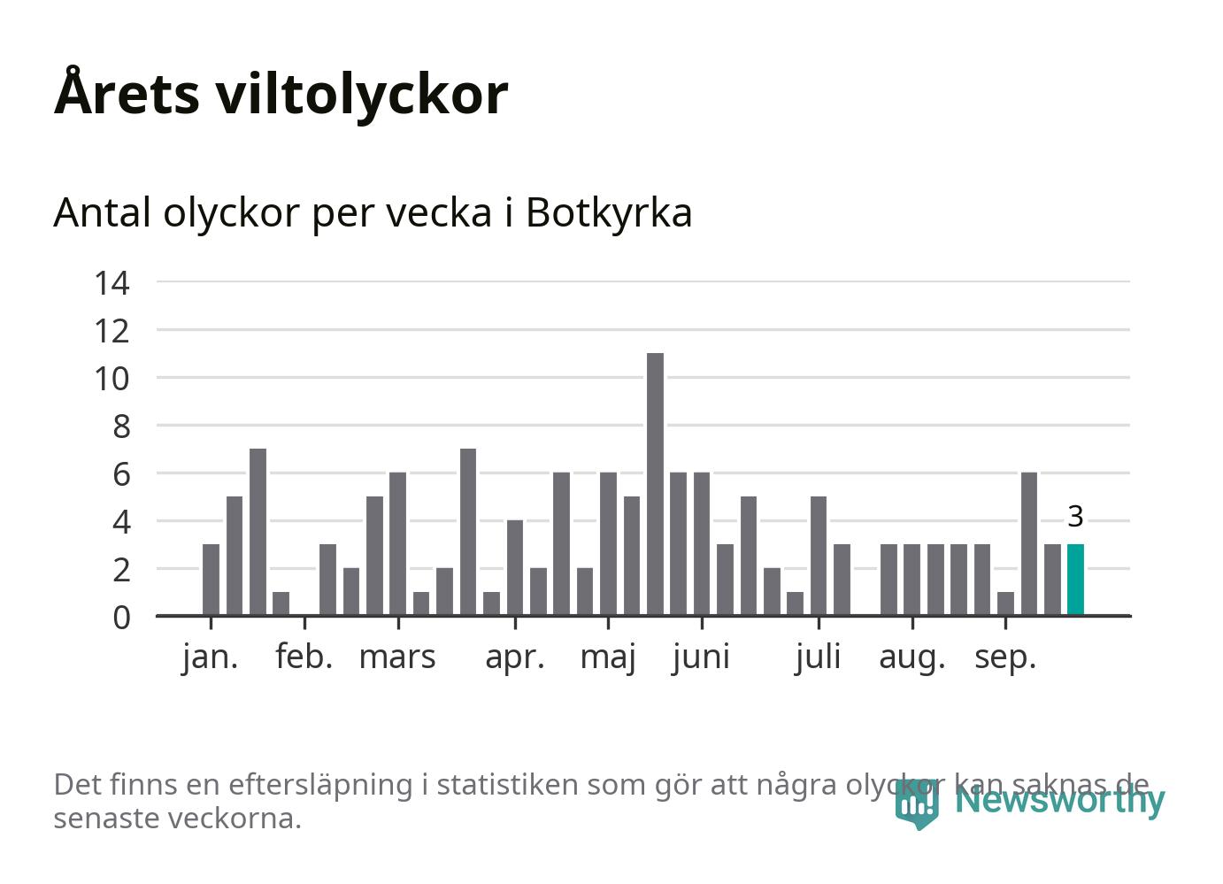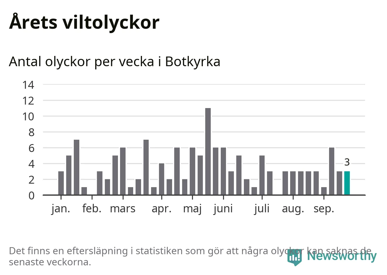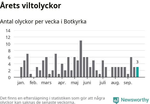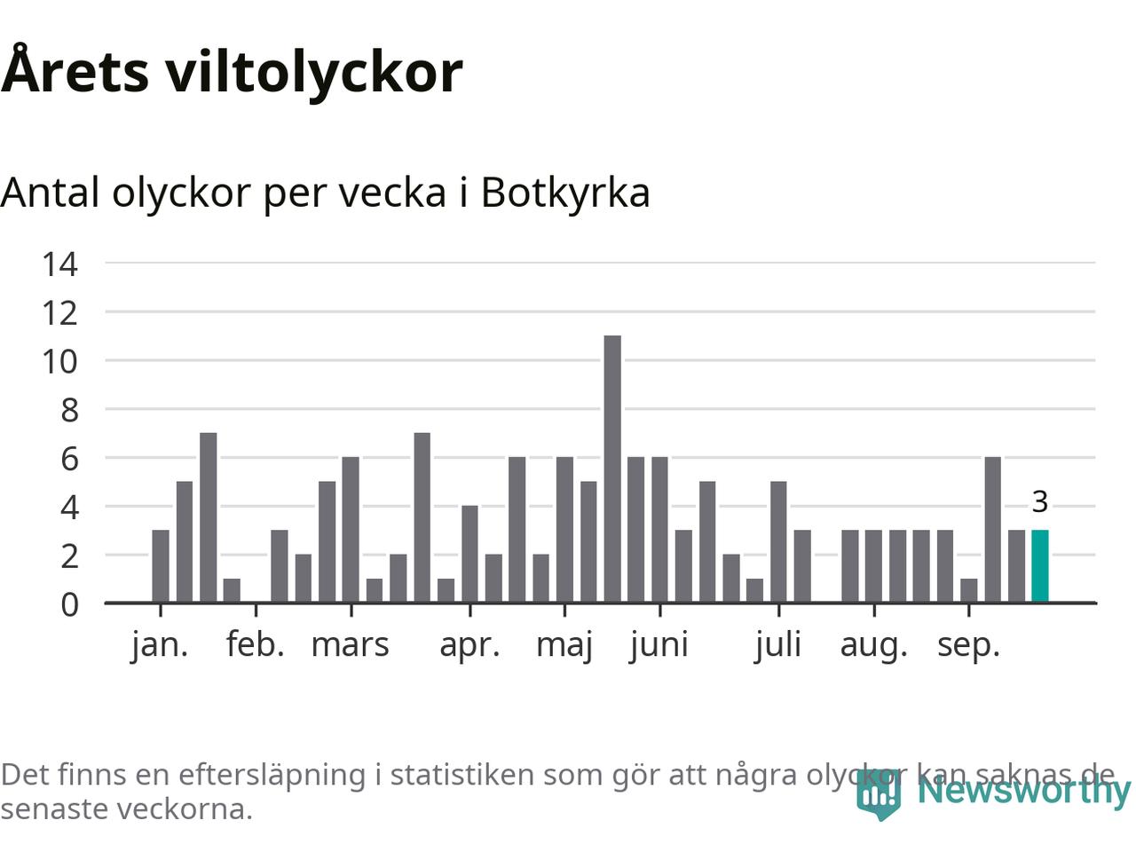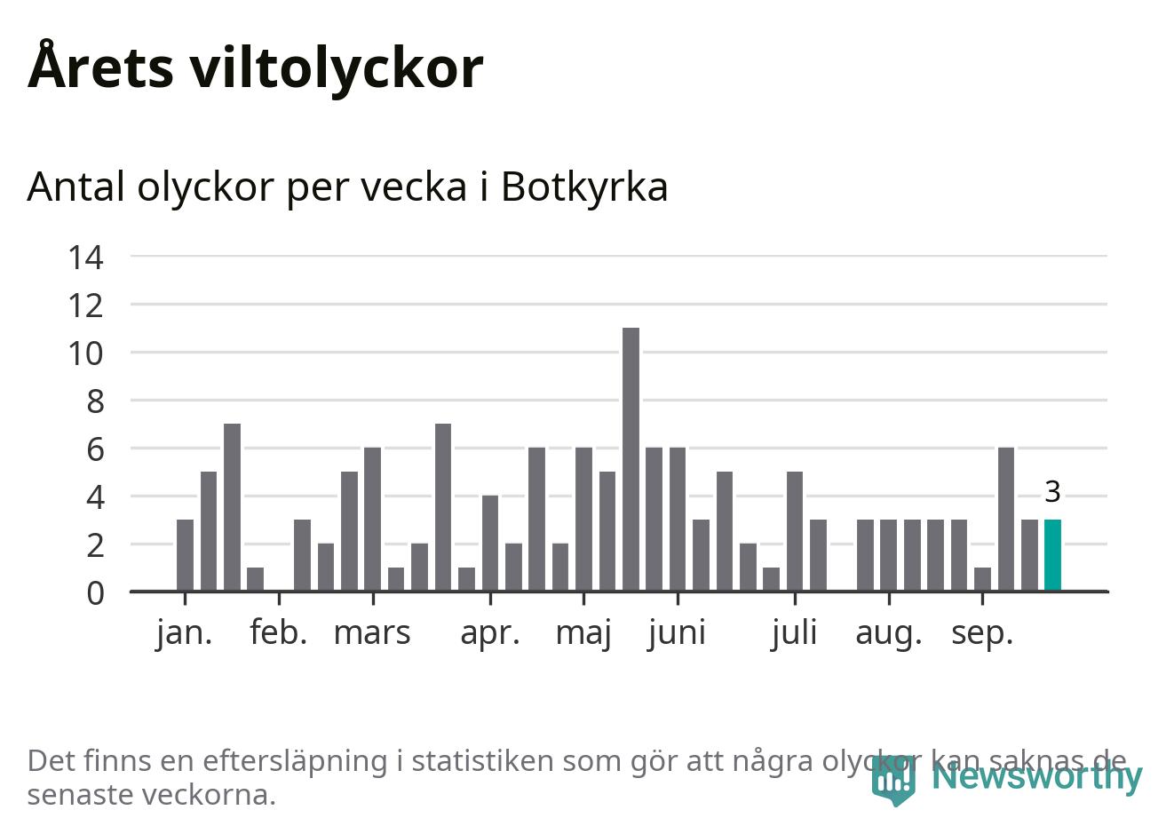 Hittills har tre viltolyckor rapporterats in i Botkyrka kommun från vecka 39. Se listan här.