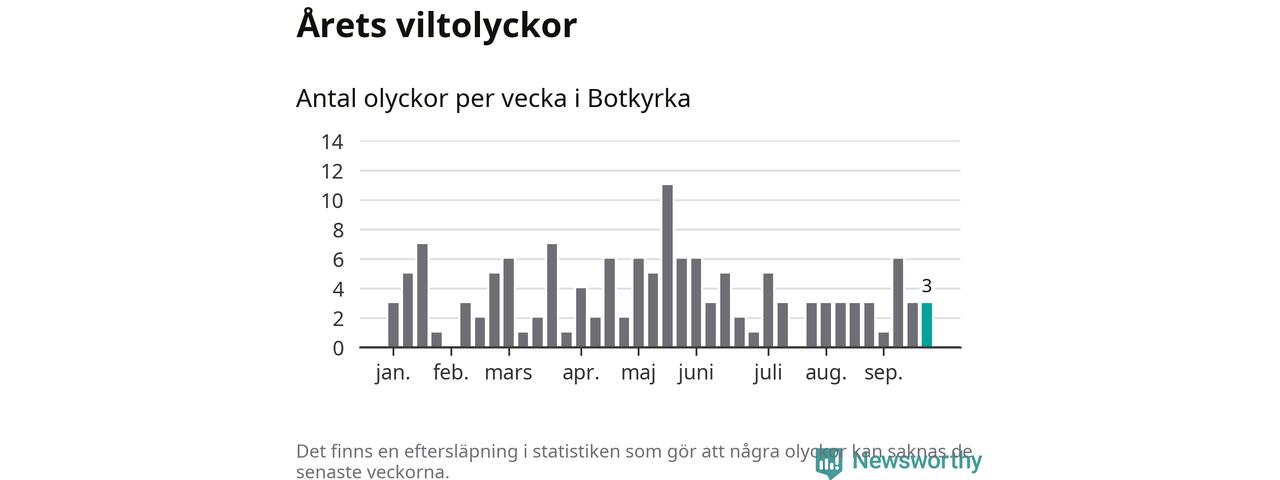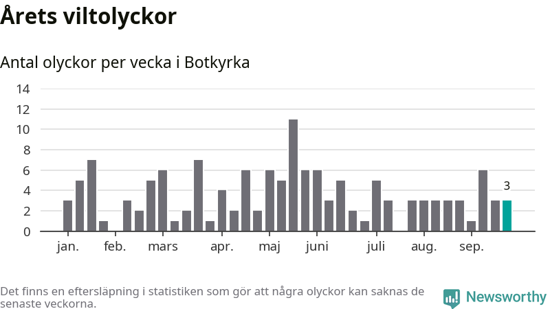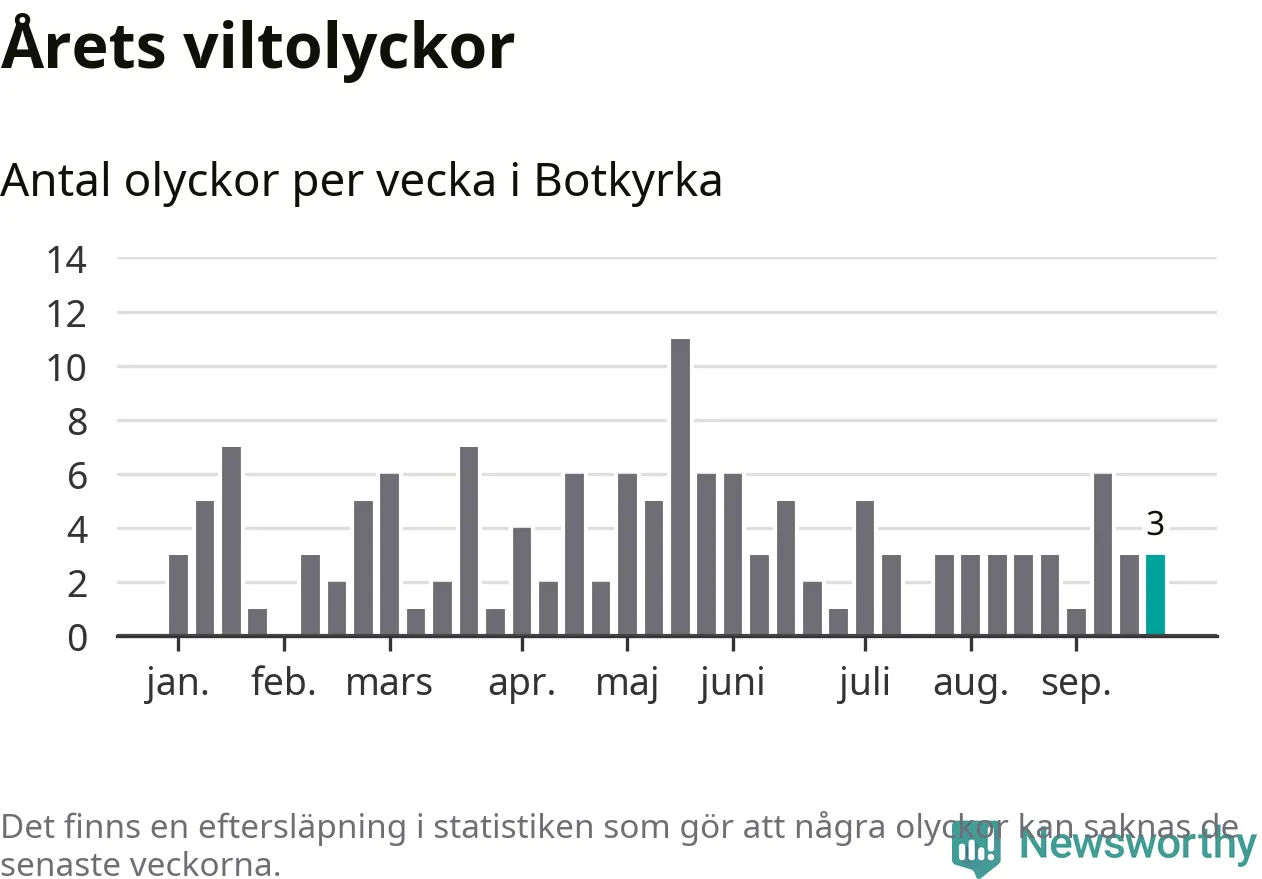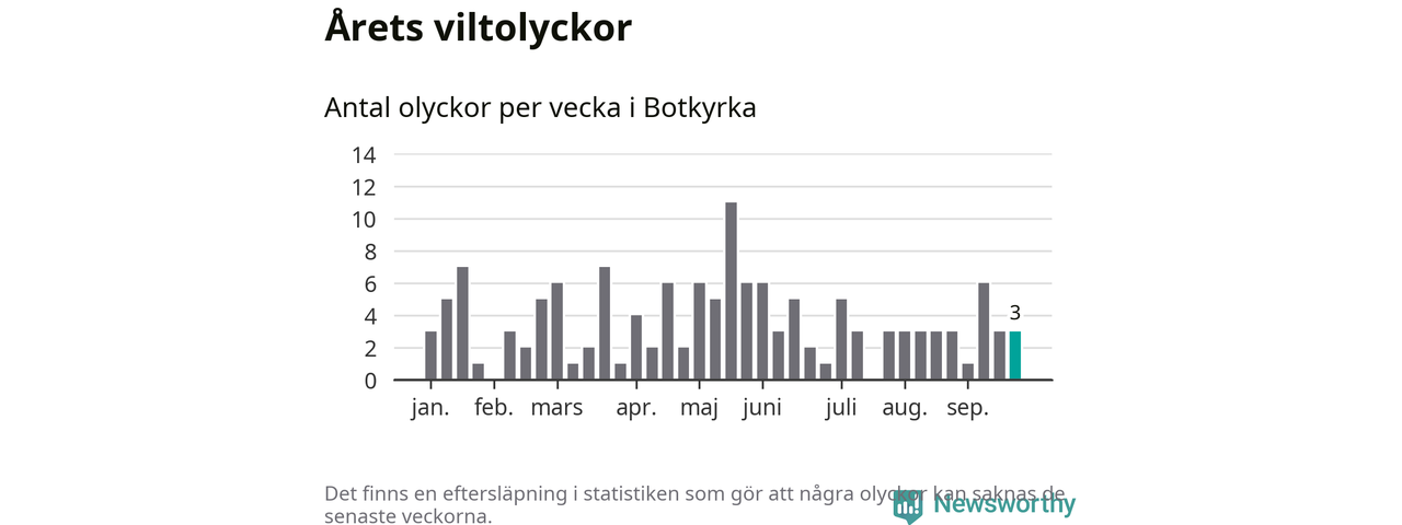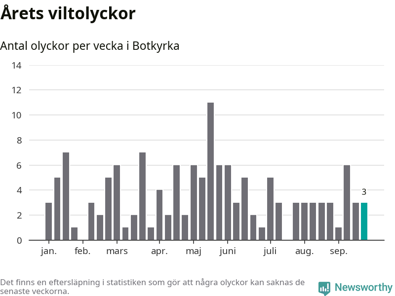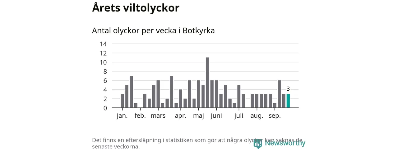 Hittills har tre viltolyckor rapporterats in i Botkyrka kommun från vecka 39. Se listan här.