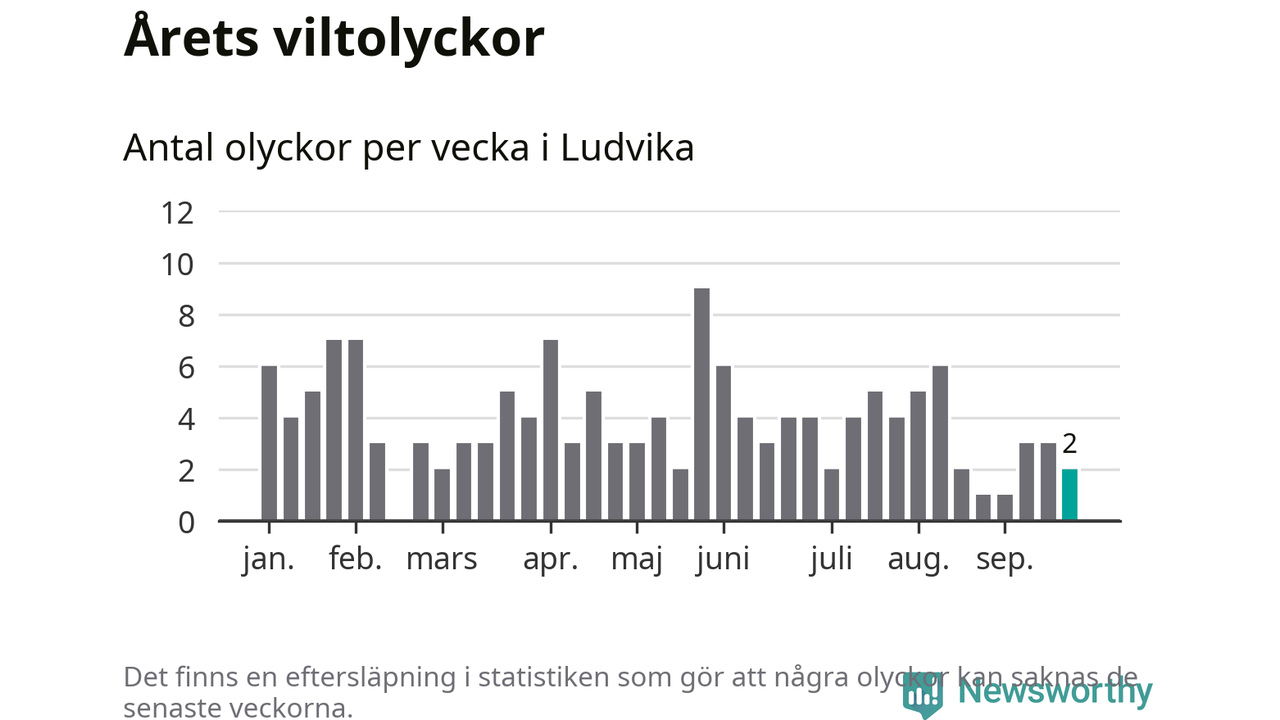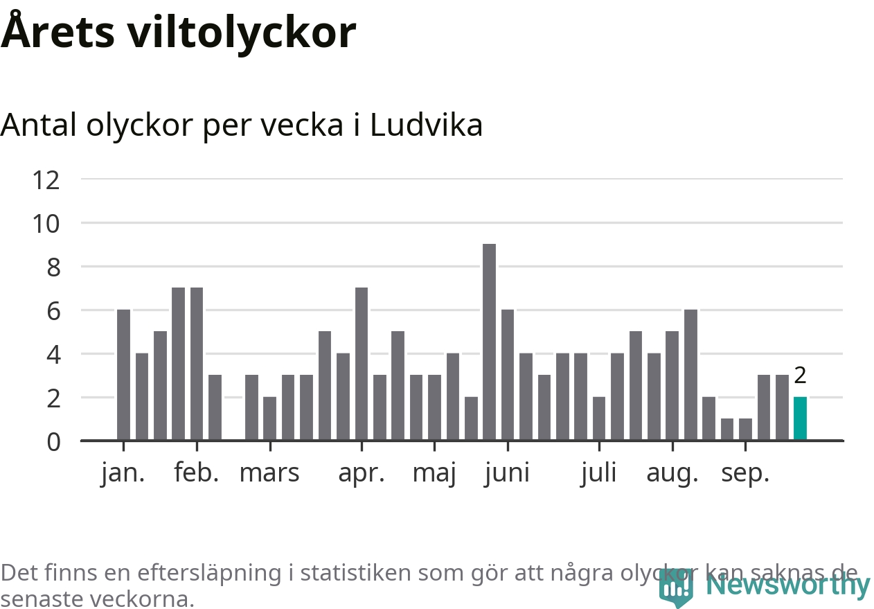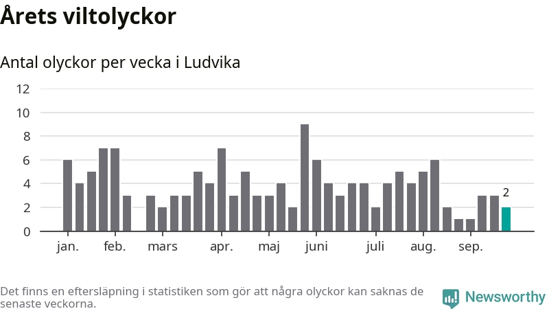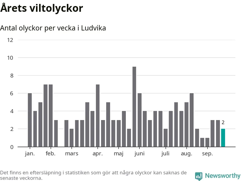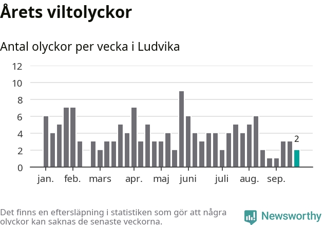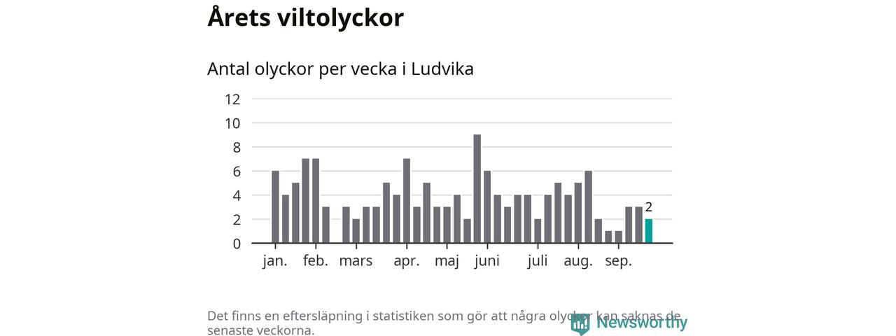 Hittills har två viltolyckor rapporterats in i Ludvika kommun från vecka 39. Se listan här.