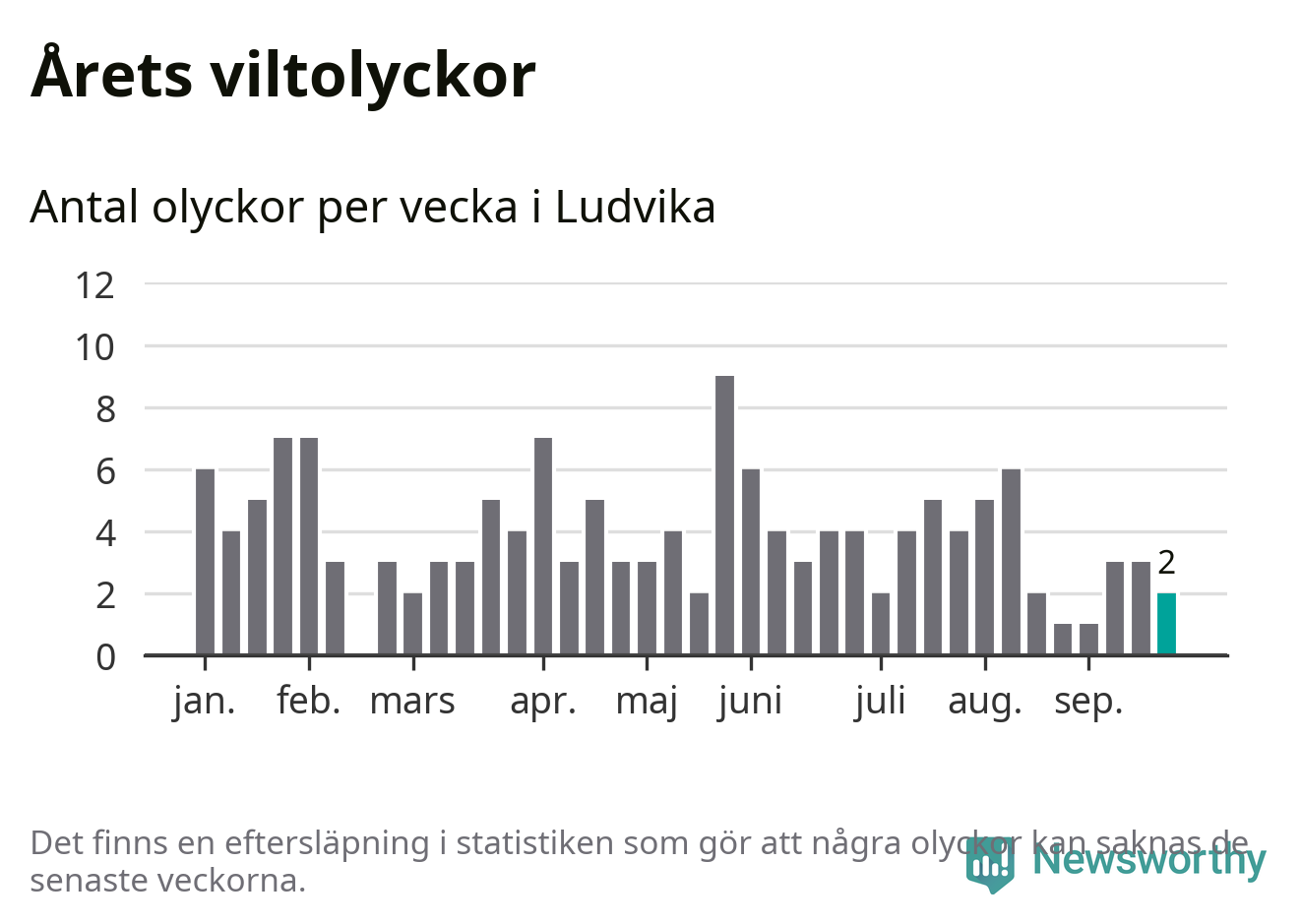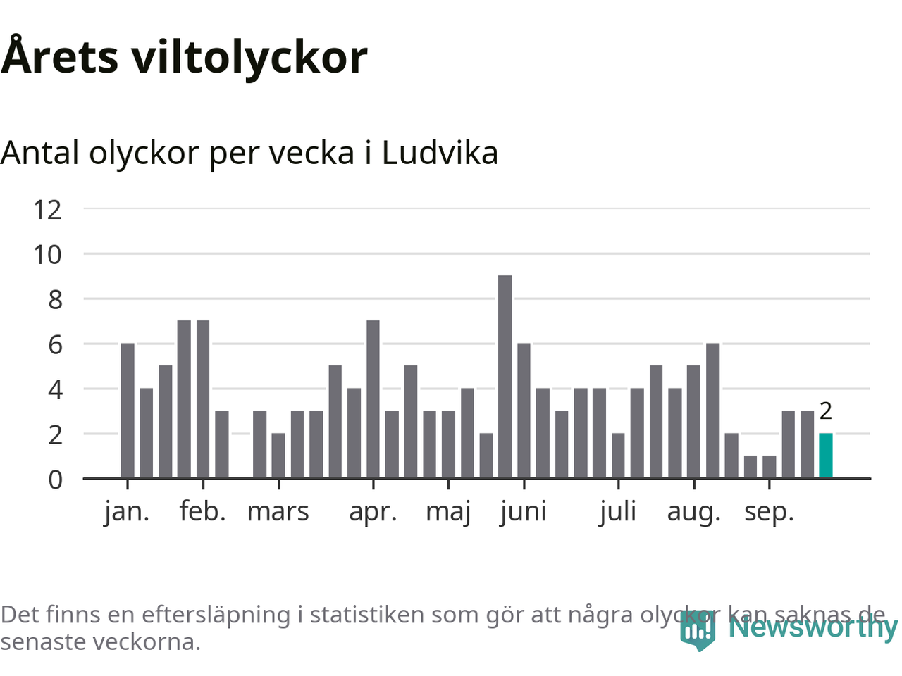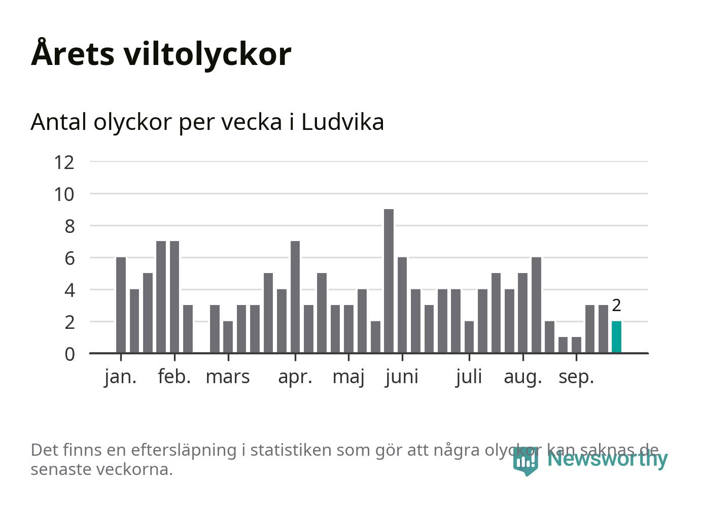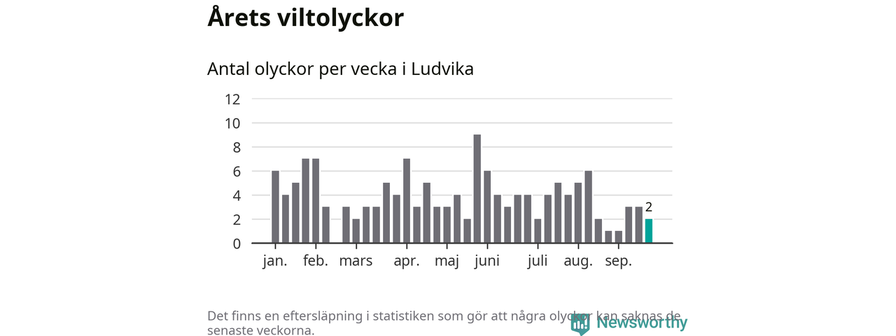 Hittills har två viltolyckor rapporterats in i Ludvika kommun från vecka 39. Se listan här.