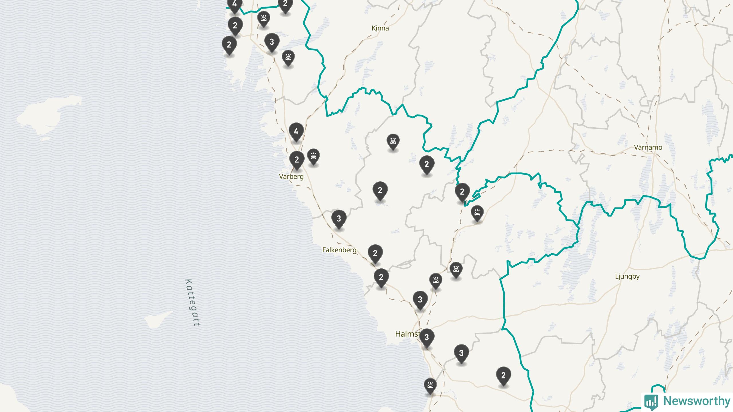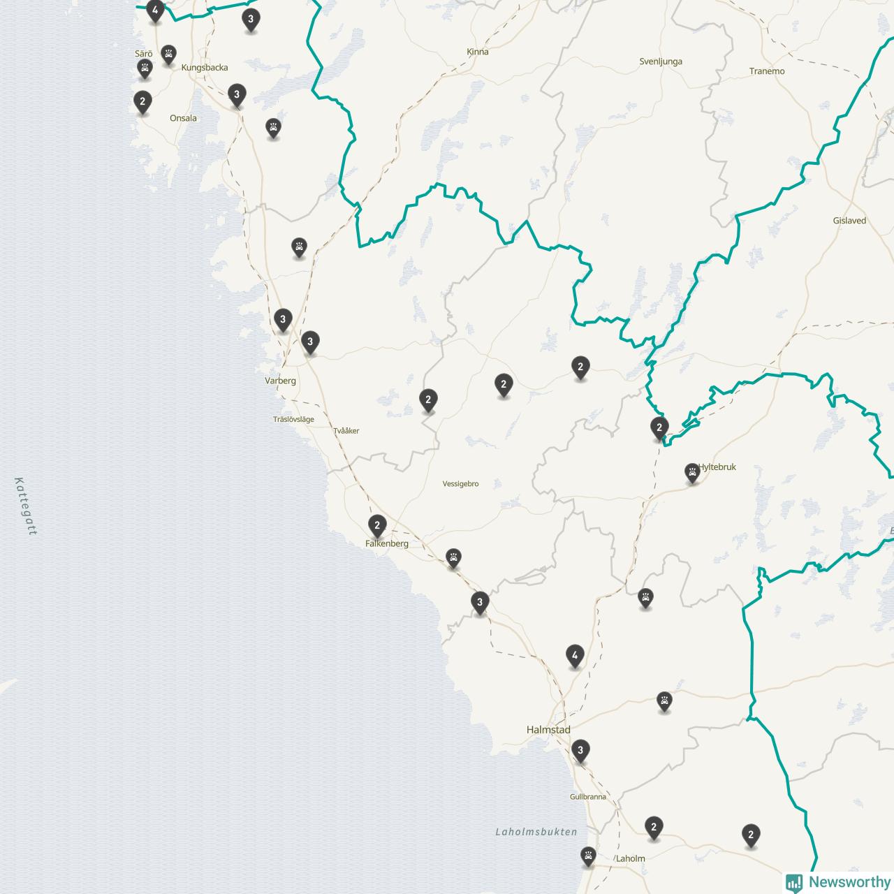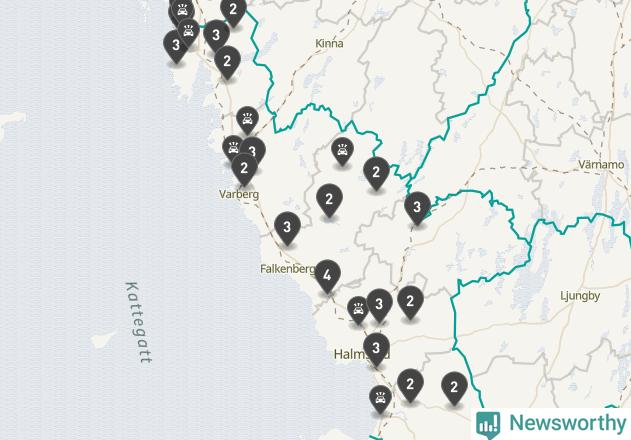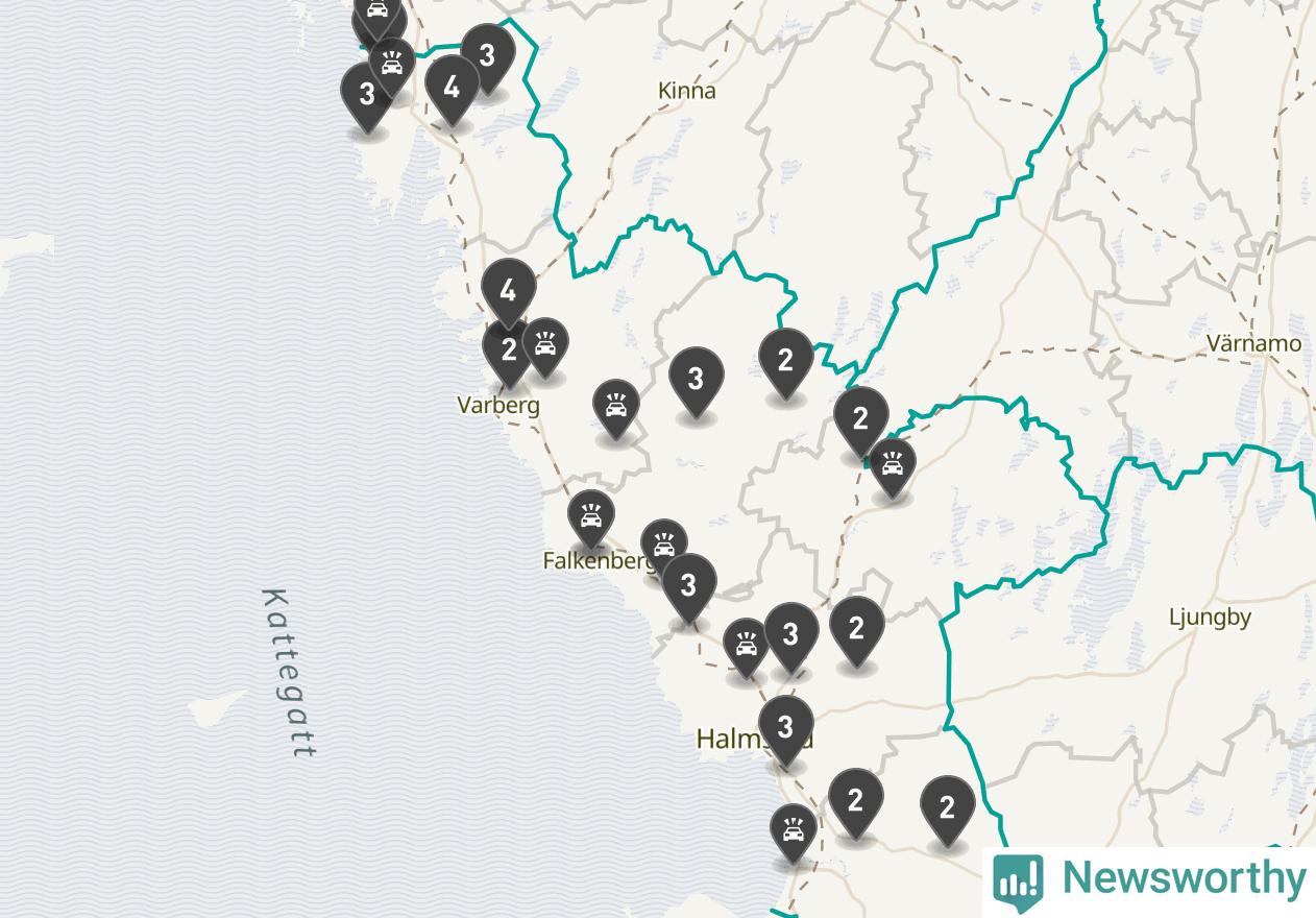 Karta över viltolyckor i Hallands län