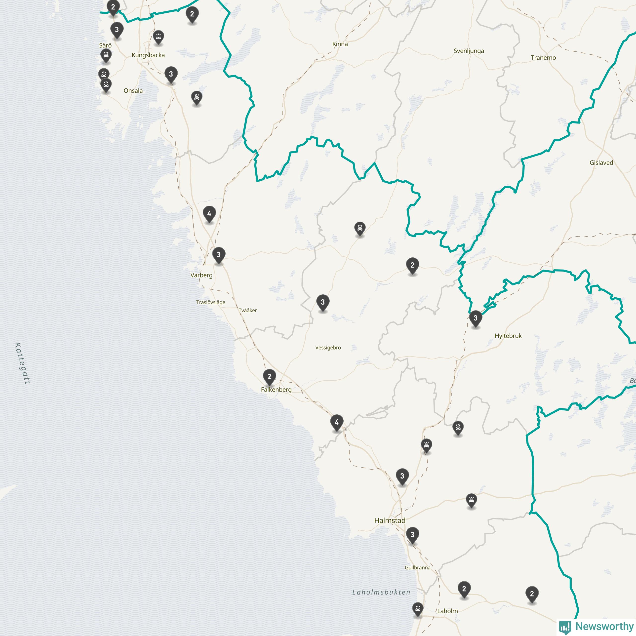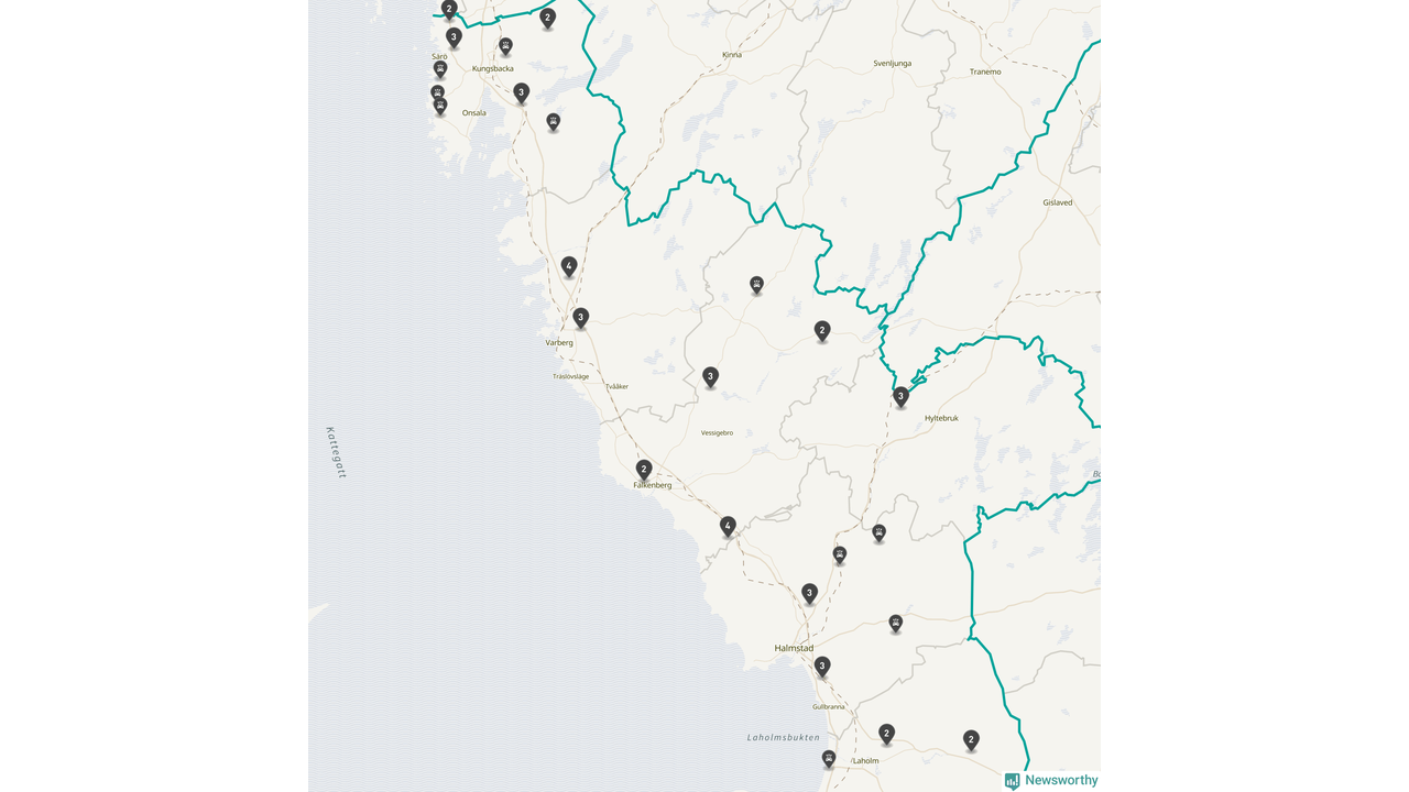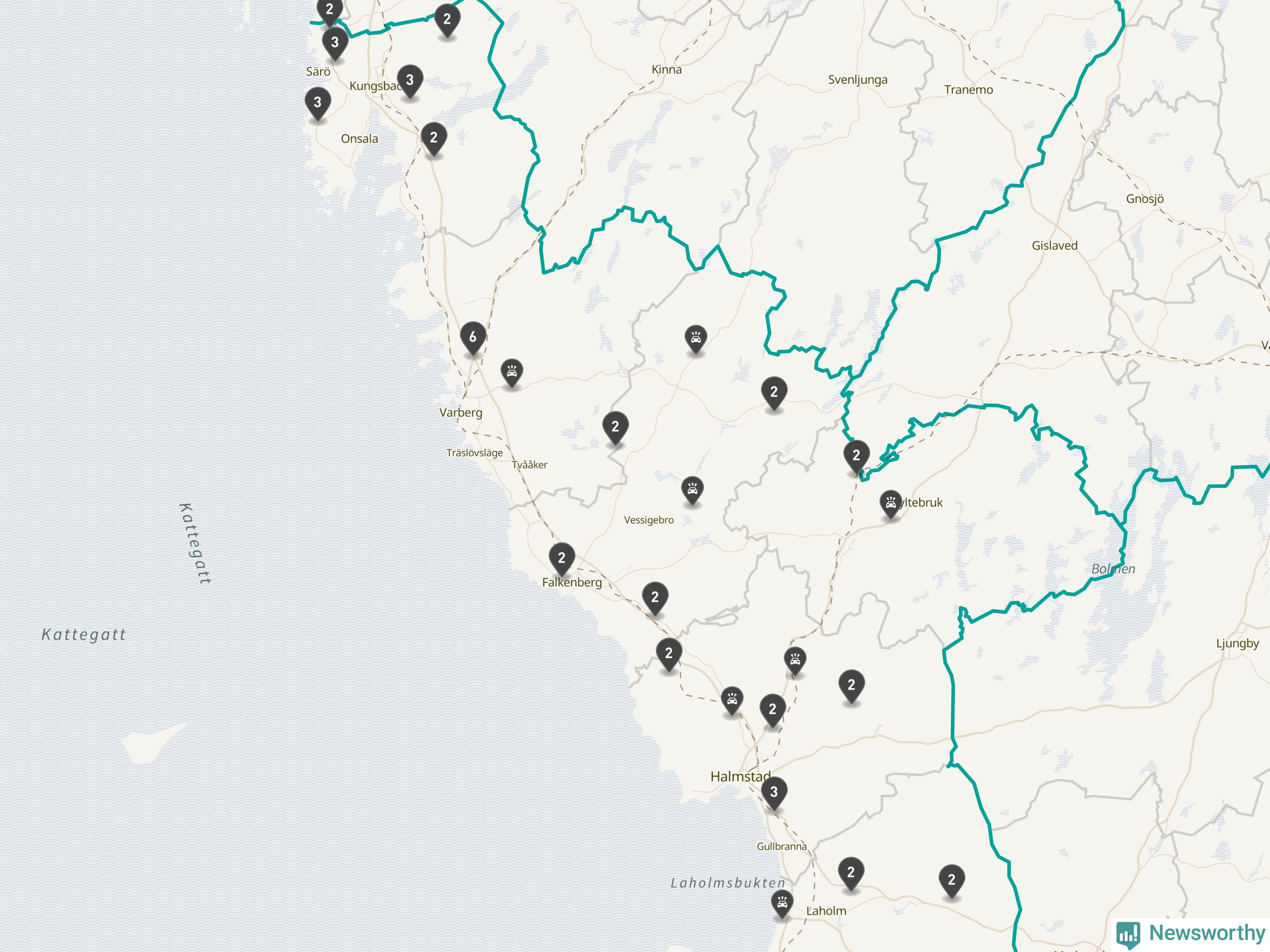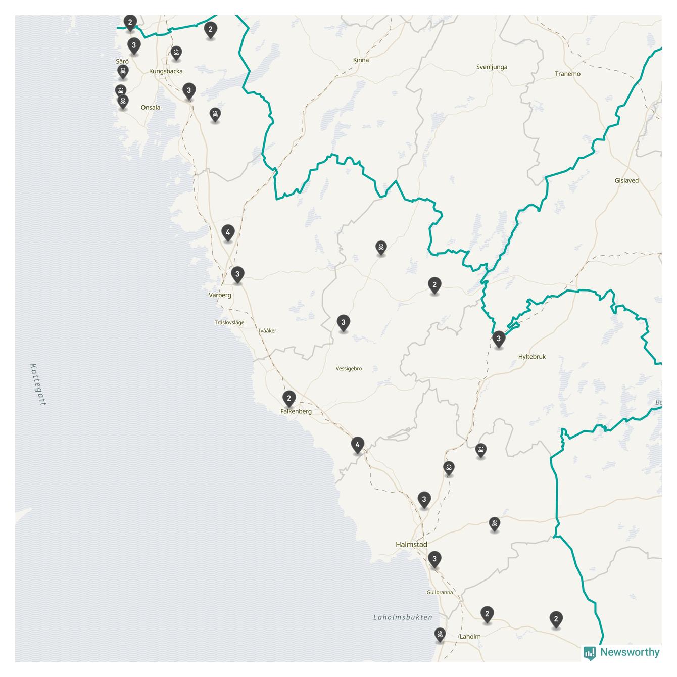 Karta över viltolyckor i Hallands län