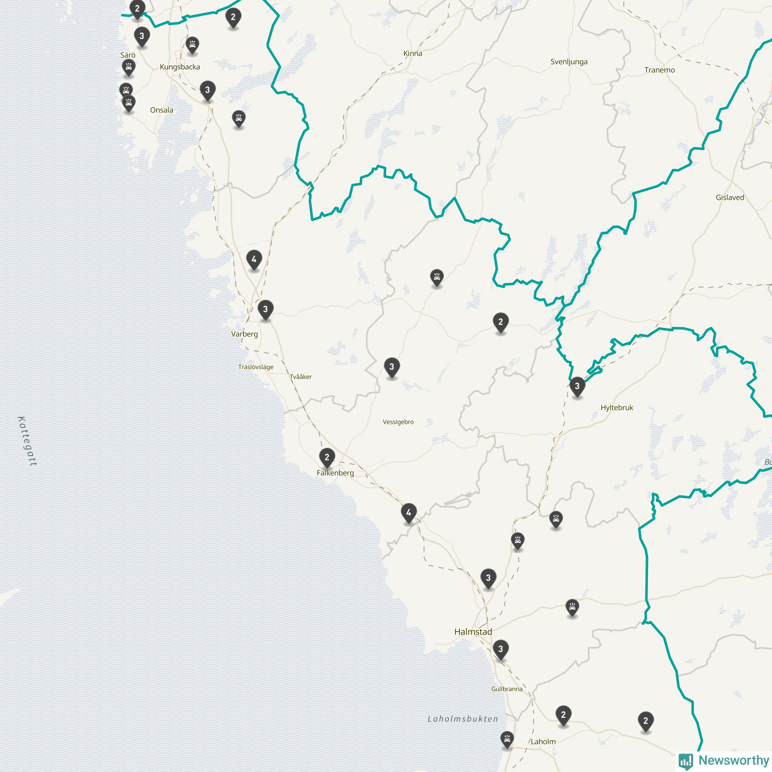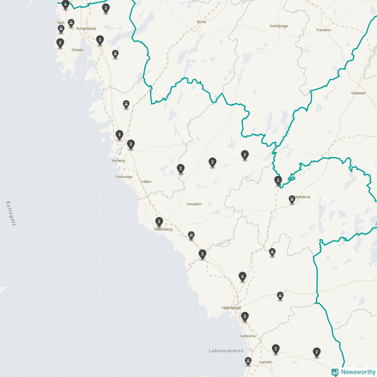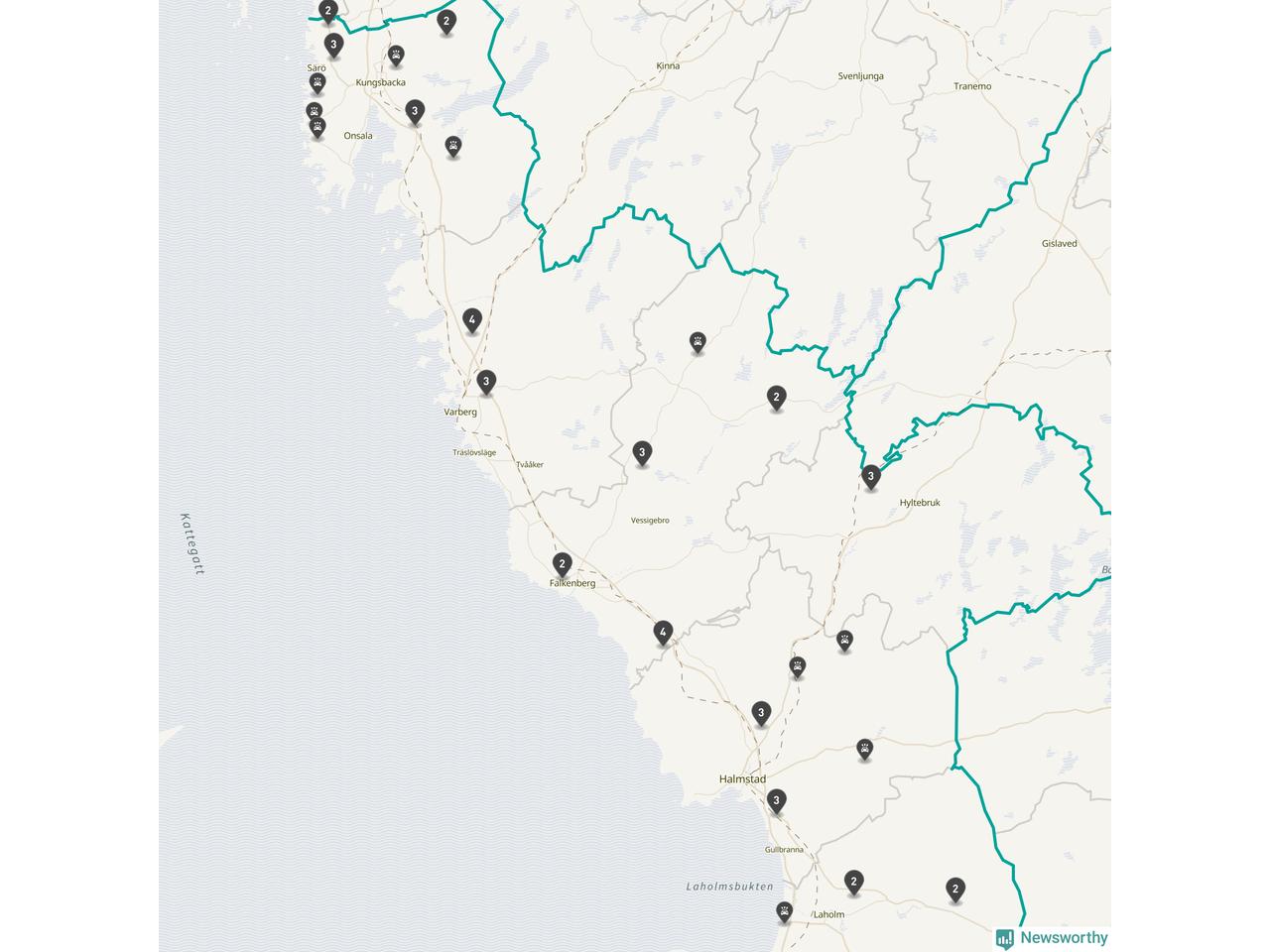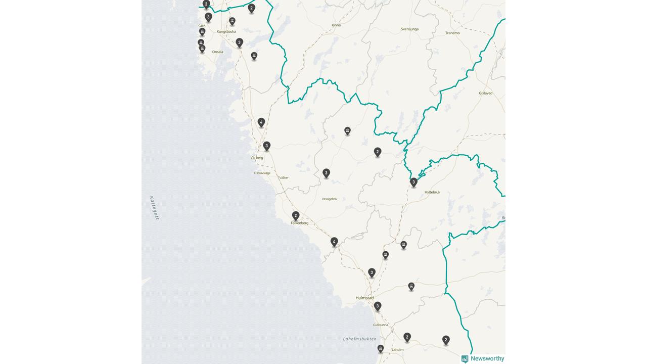 Karta över viltolyckor i Hallands län