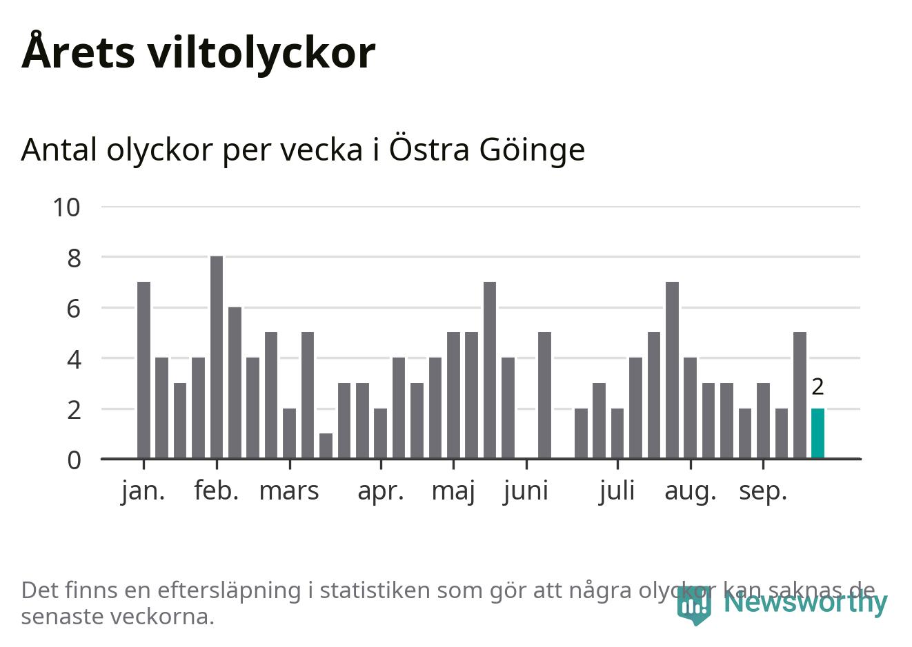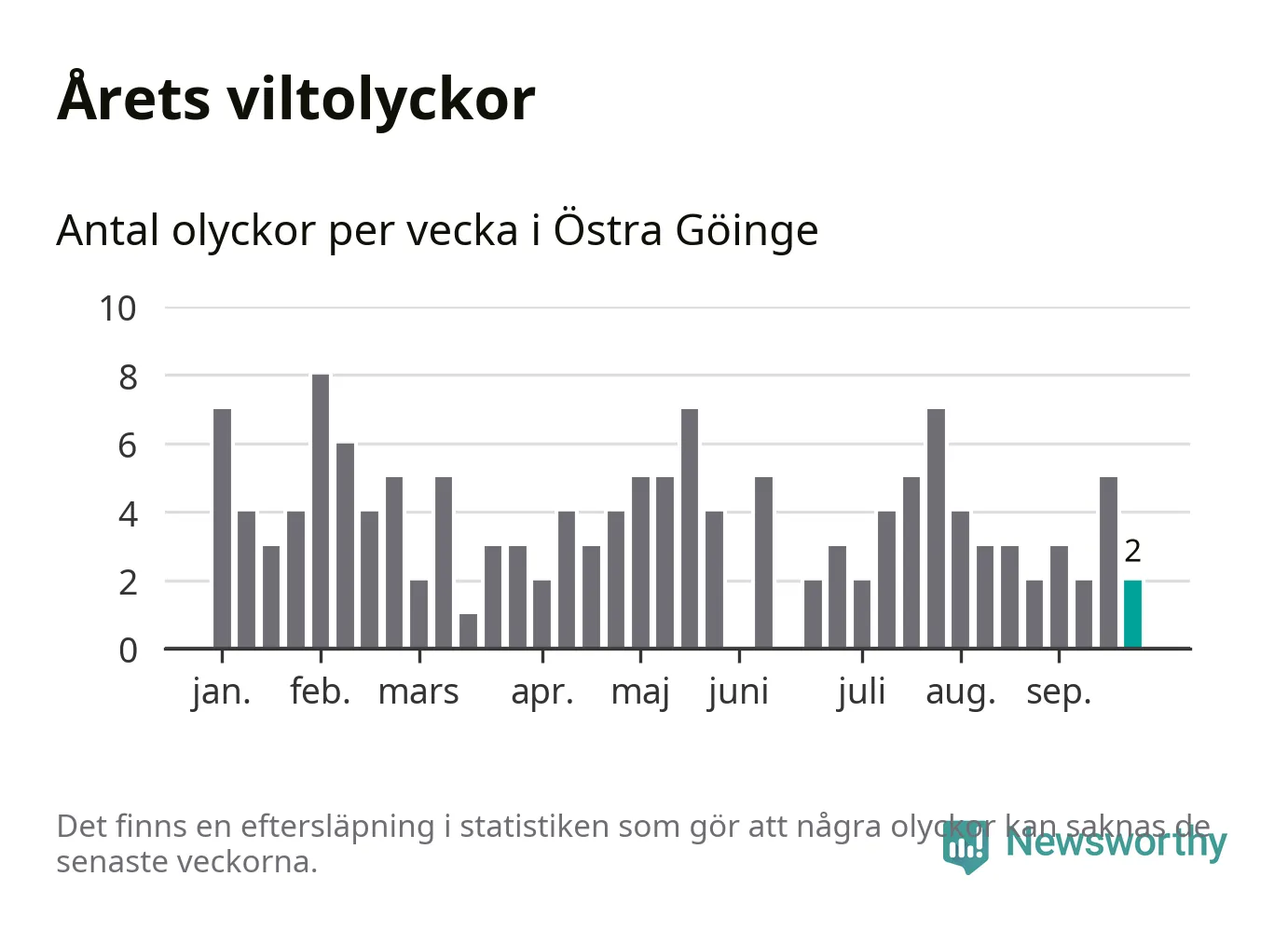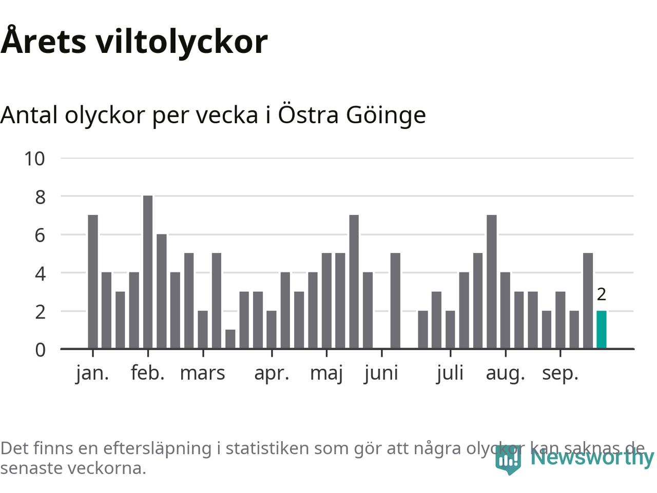 Hittills har två viltolyckor rapporterats in i Östra Göinge kommun från vecka 39. Se listan här.