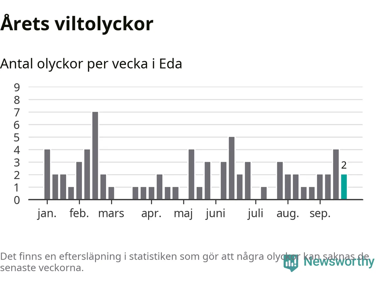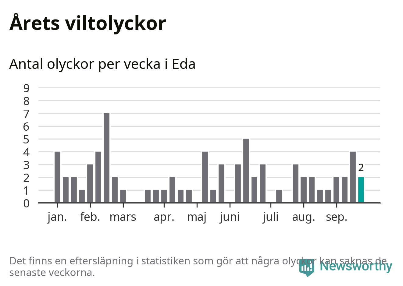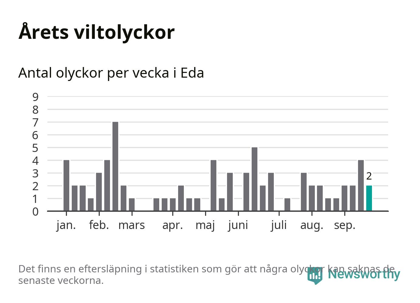 Hittills har två viltolyckor rapporterats in i Eda kommun från vecka 39. Se listan här.