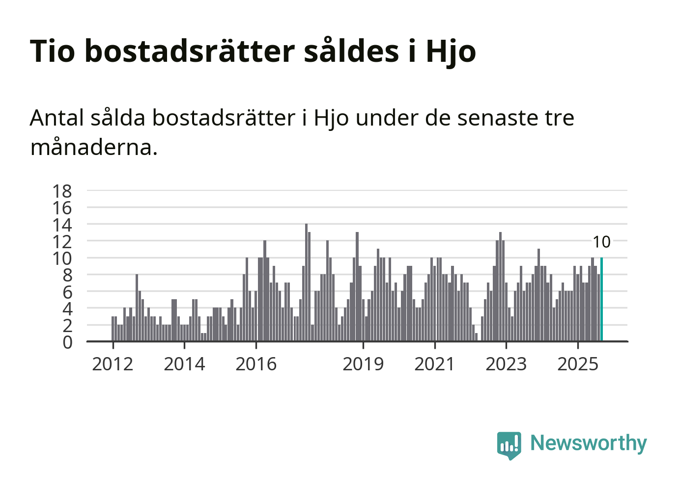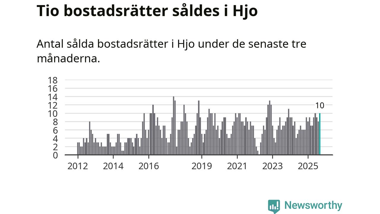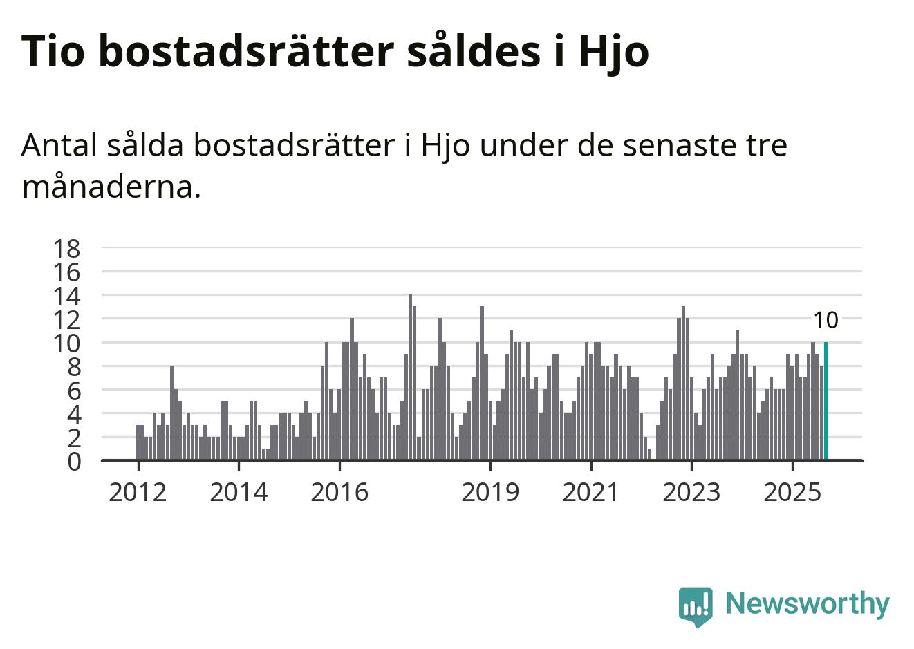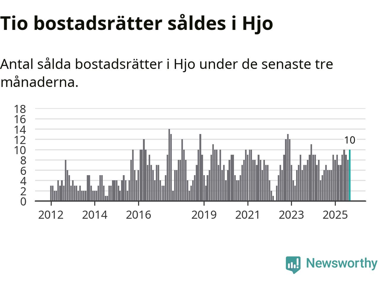 Mellan juli och september gjordes sammanlagt tio affärer med bostadsrätter i Hjo kommun. Det kan jämföras med sex vid motsvarande tid i fjol.
