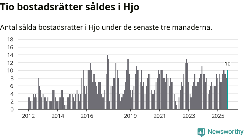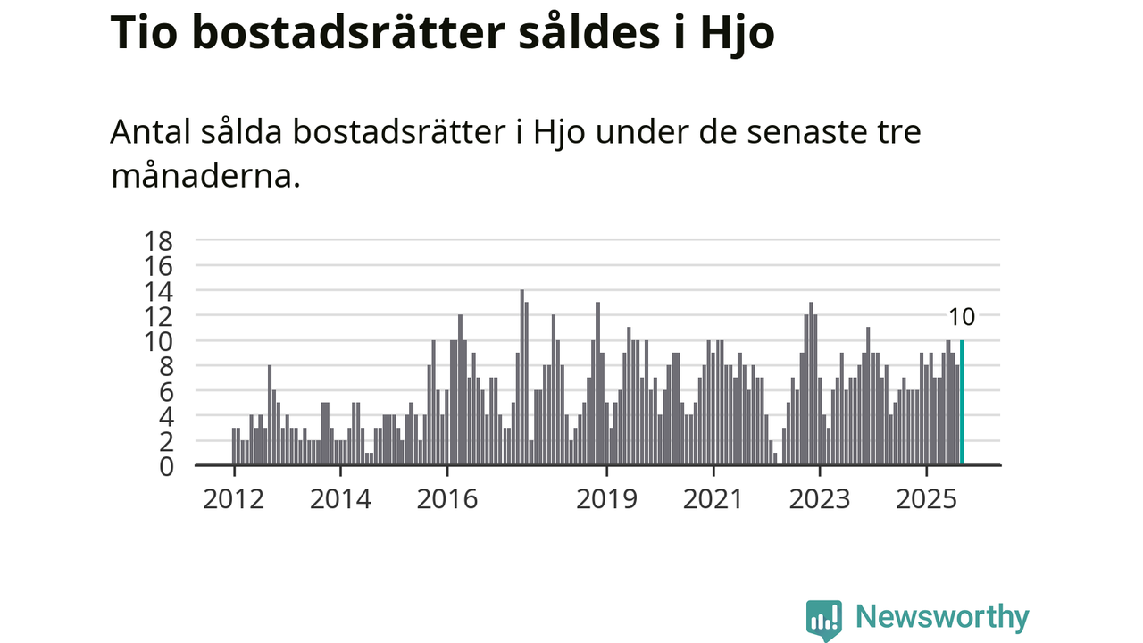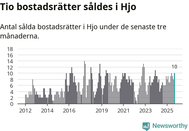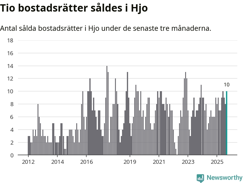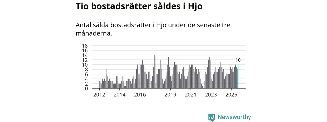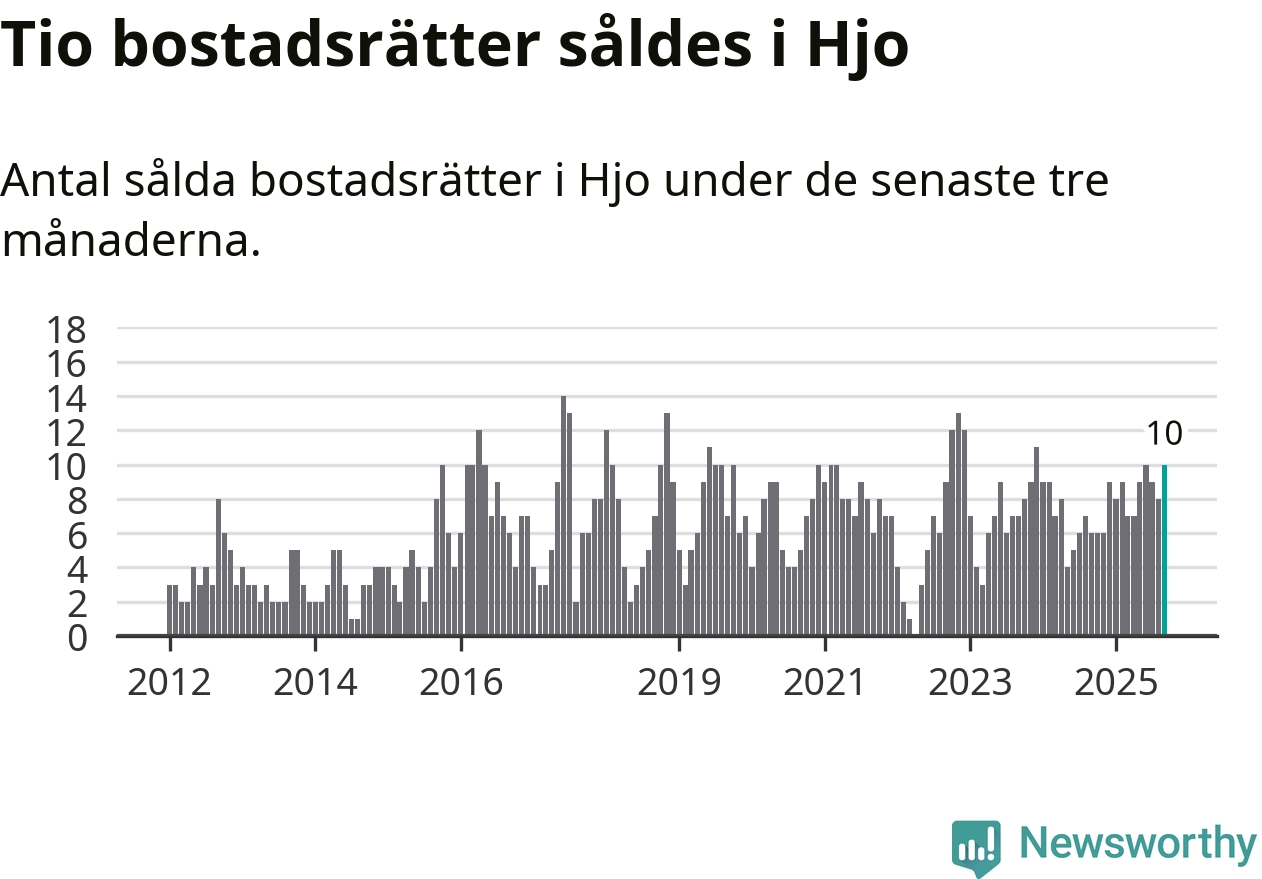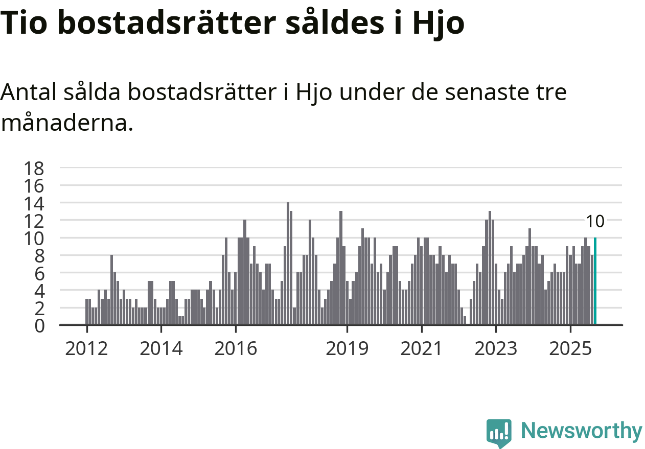 Mellan juli och september gjordes sammanlagt tio affärer med bostadsrätter i Hjo kommun. Det kan jämföras med sex vid motsvarande tid i fjol.