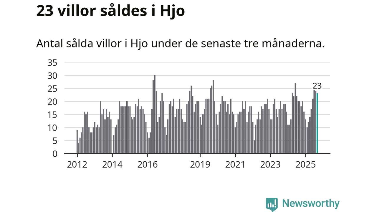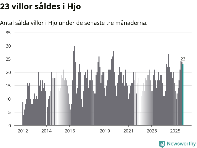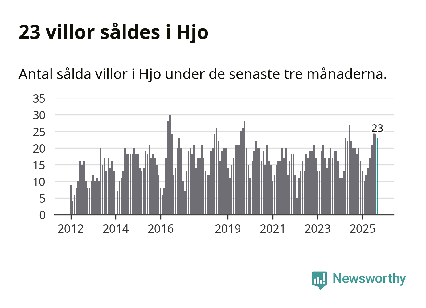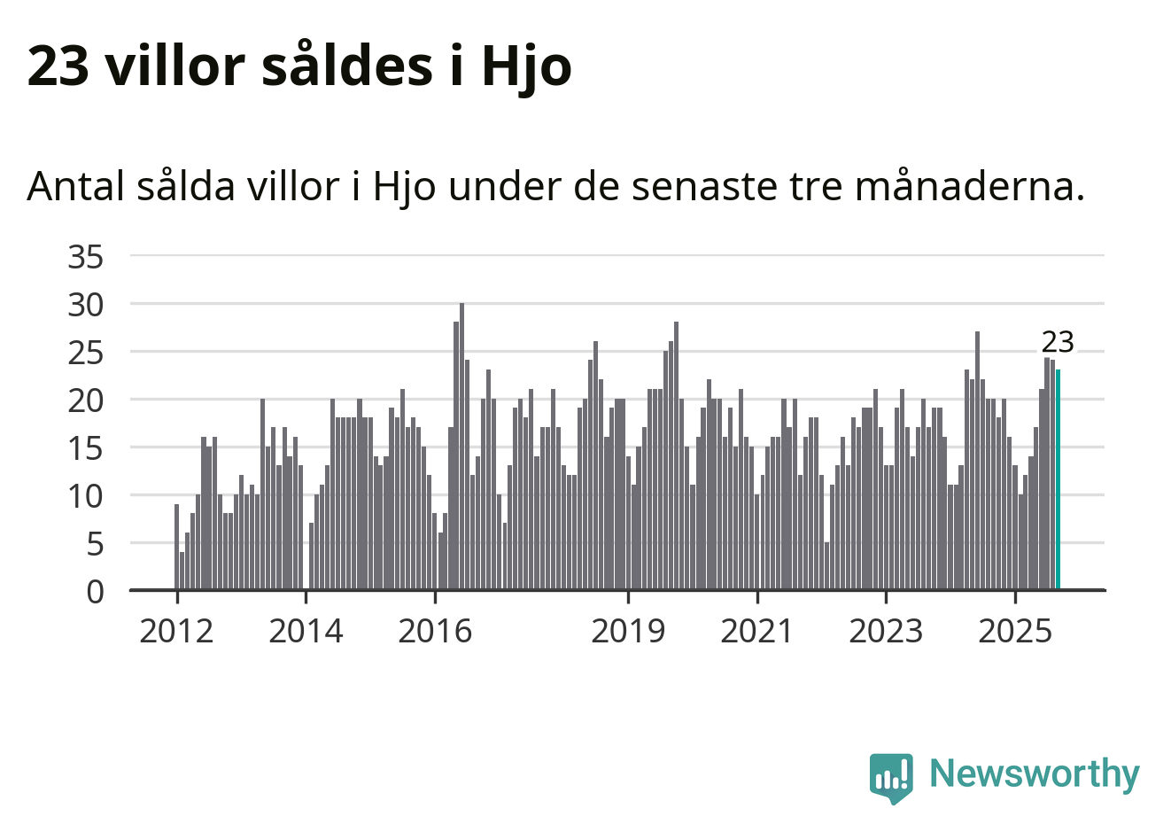 Mellan juli och september gjordes sammanlagt 23 affärer med villor i Hjo kommun. Det kan jämföras med 20 vid motsvarande tid i fjol.