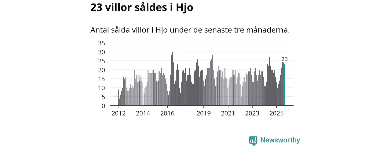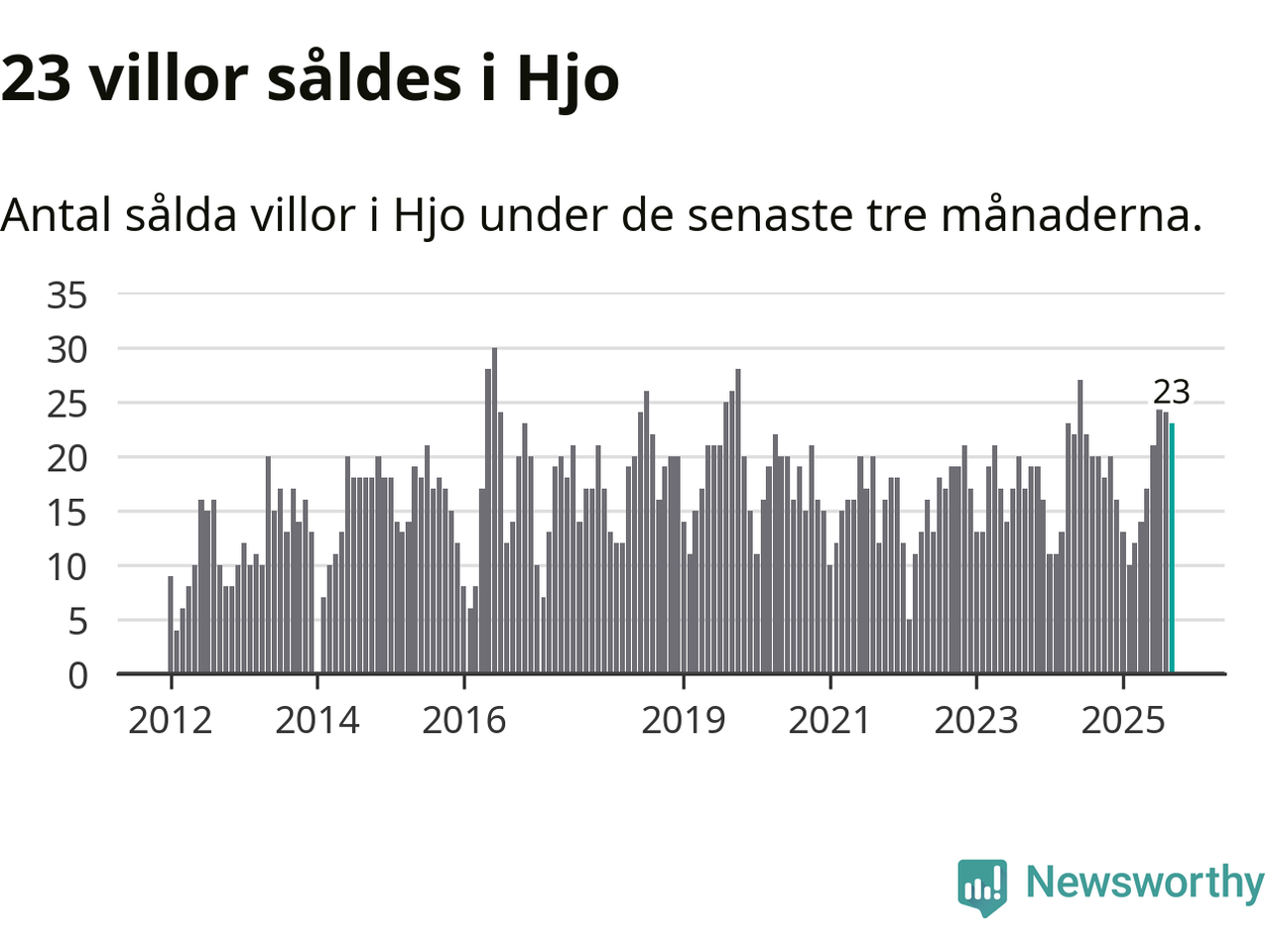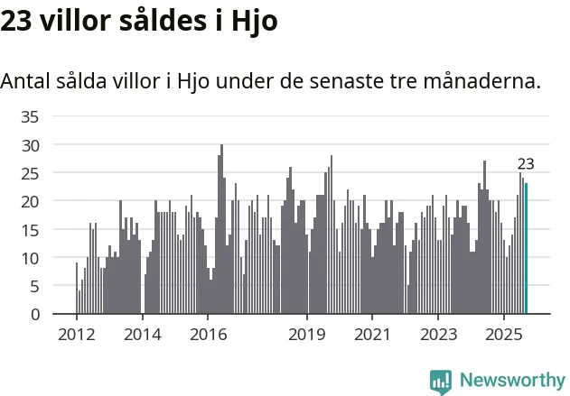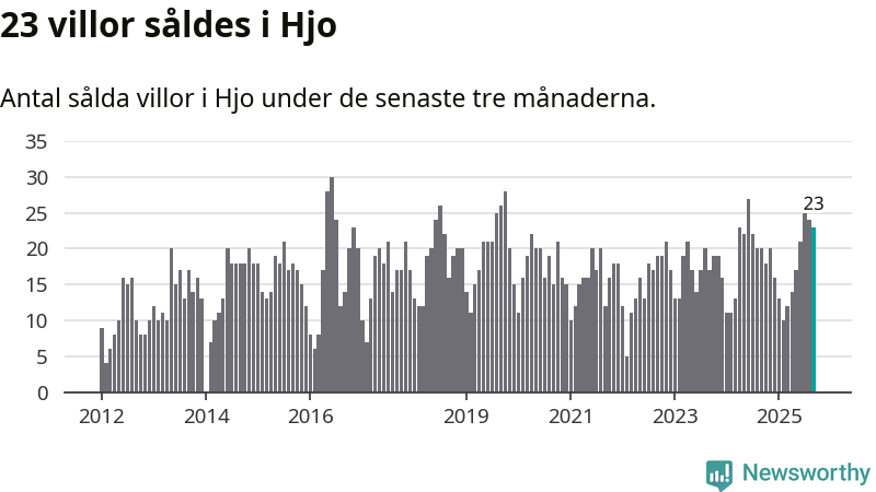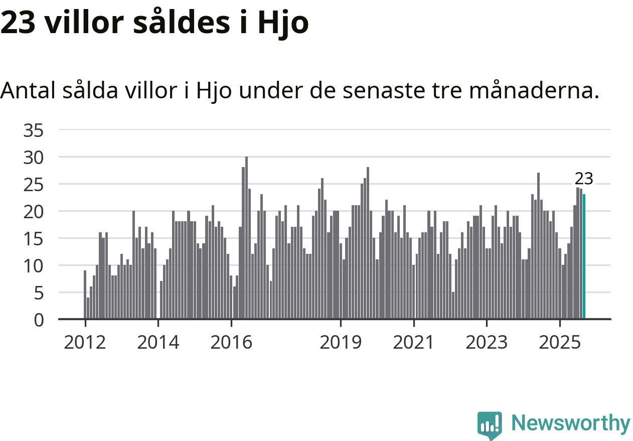Mellan juli och september gjordes sammanlagt 23 affärer med villor i Hjo kommun. Det kan jämföras med 20 vid motsvarande tid i fjol.